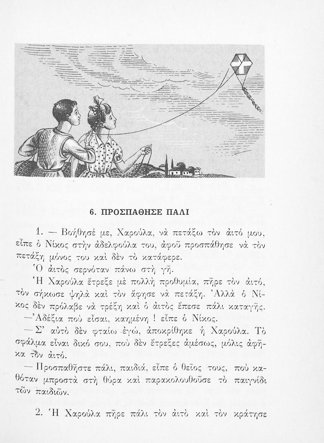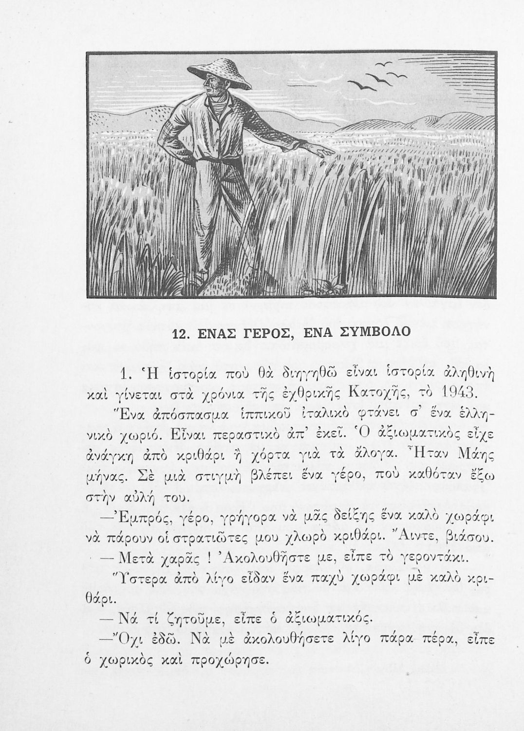 Αναγνωστικό Δ΄ Δημοτικού που περιέχει πεζά και ποιήματα εμπνευσμένα από την ελληνική ιστορία και μυθολογία, την κοινωνική ζωή και την ελληνική φύση.