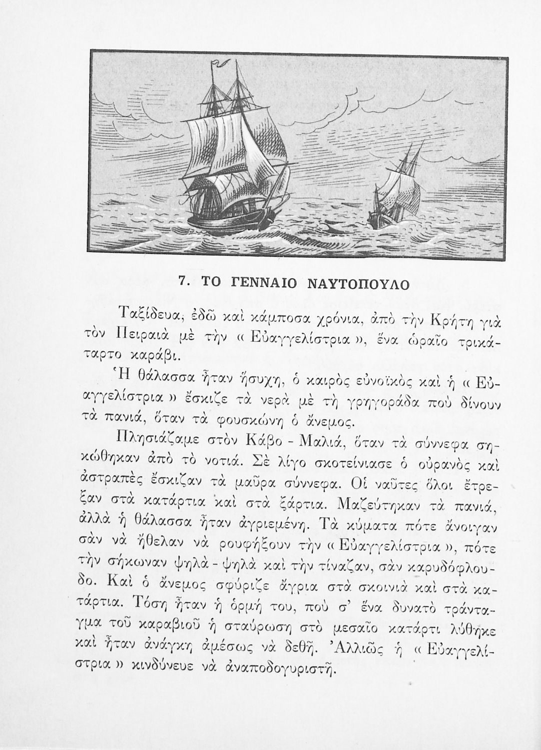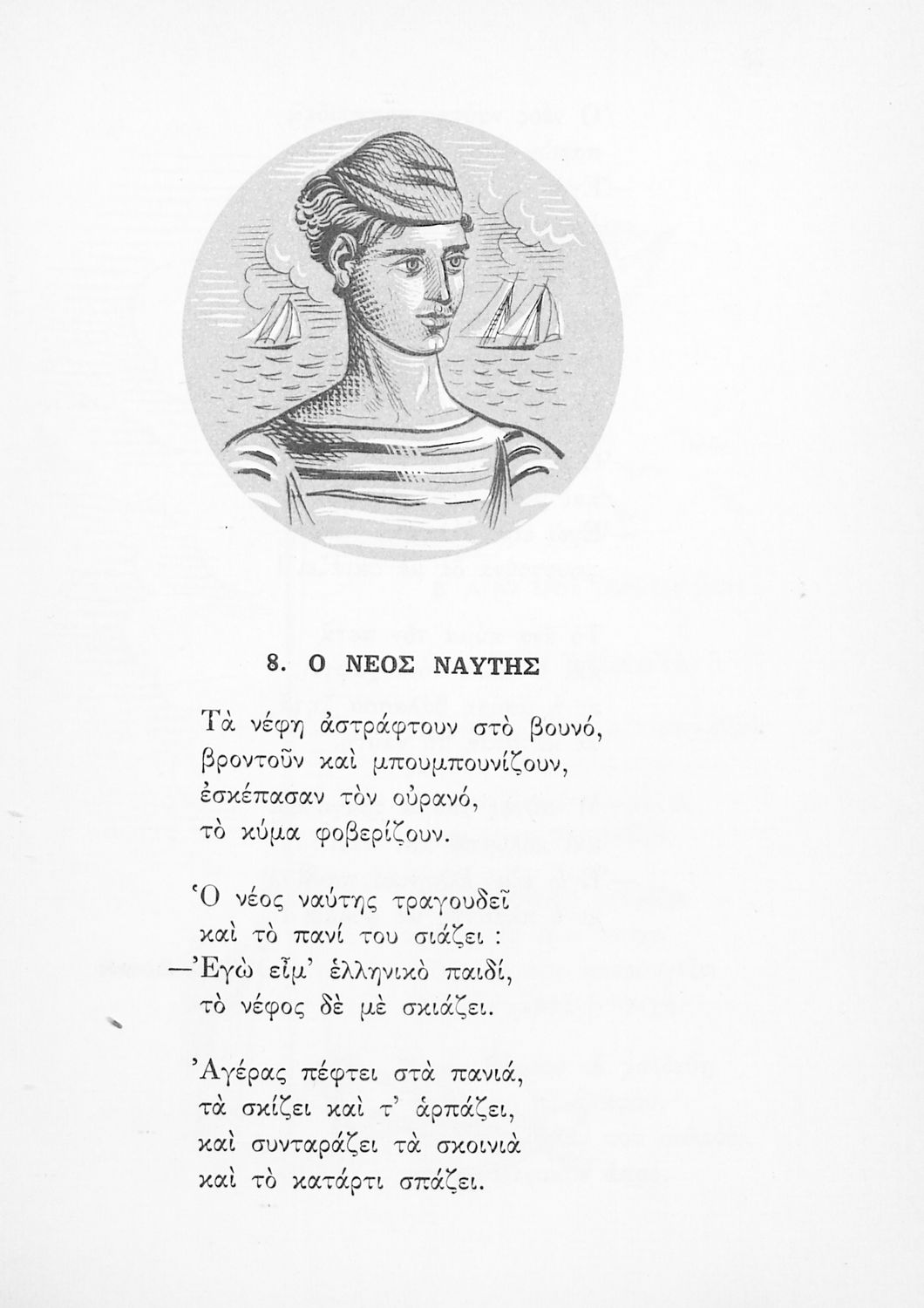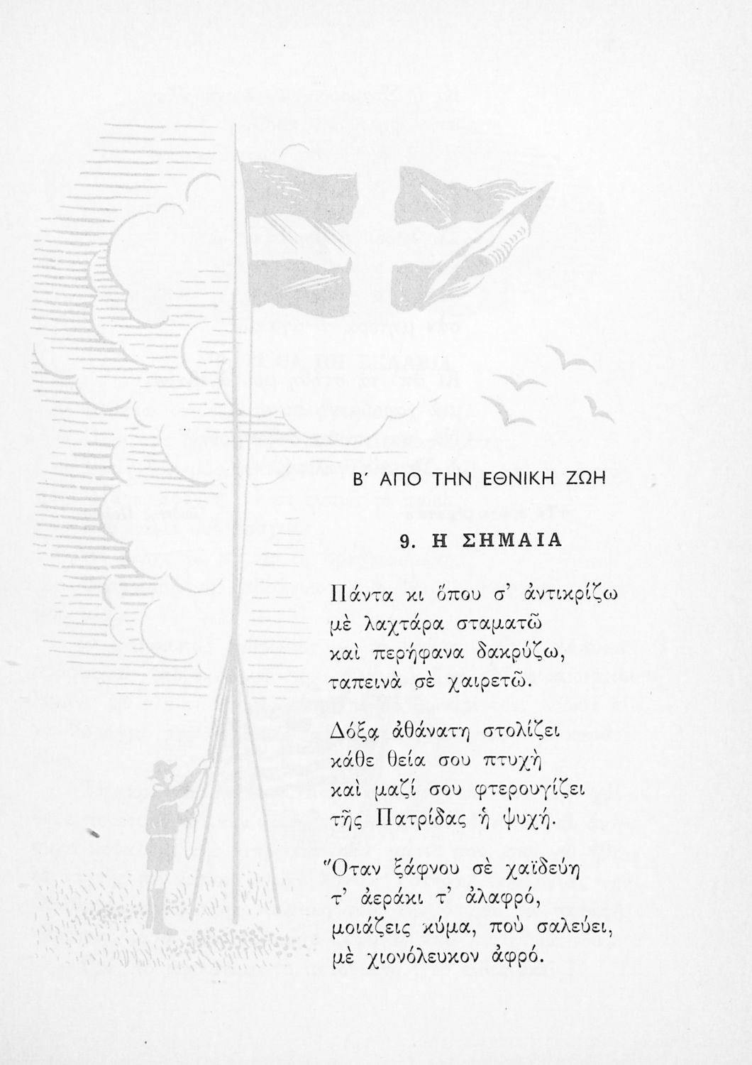 Αναγνωστικό για την Δ΄ τάξη του Δημοτικού. Περιλαμβάνει ένα κείμενο στο οποίο παρεμβάλλονται ποιήματα δημοτικά και Ελλήνων ποιητών.