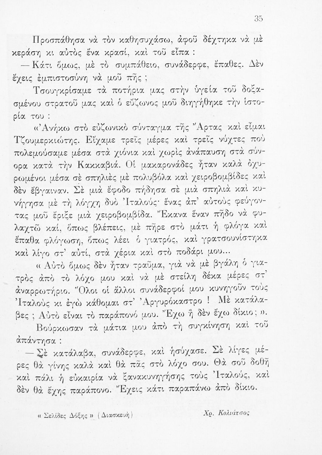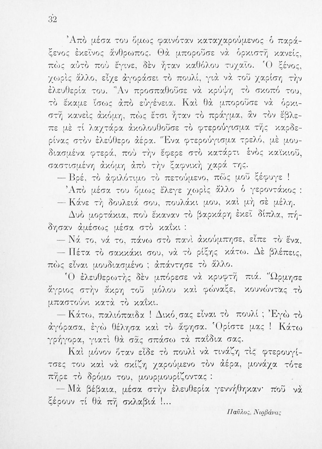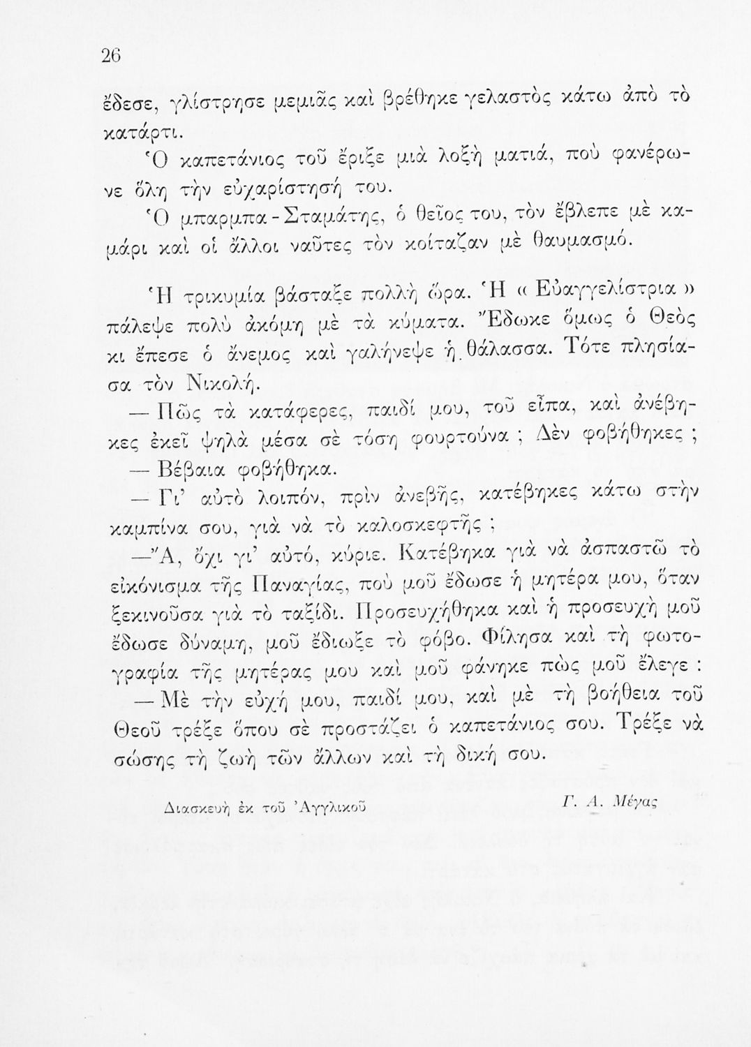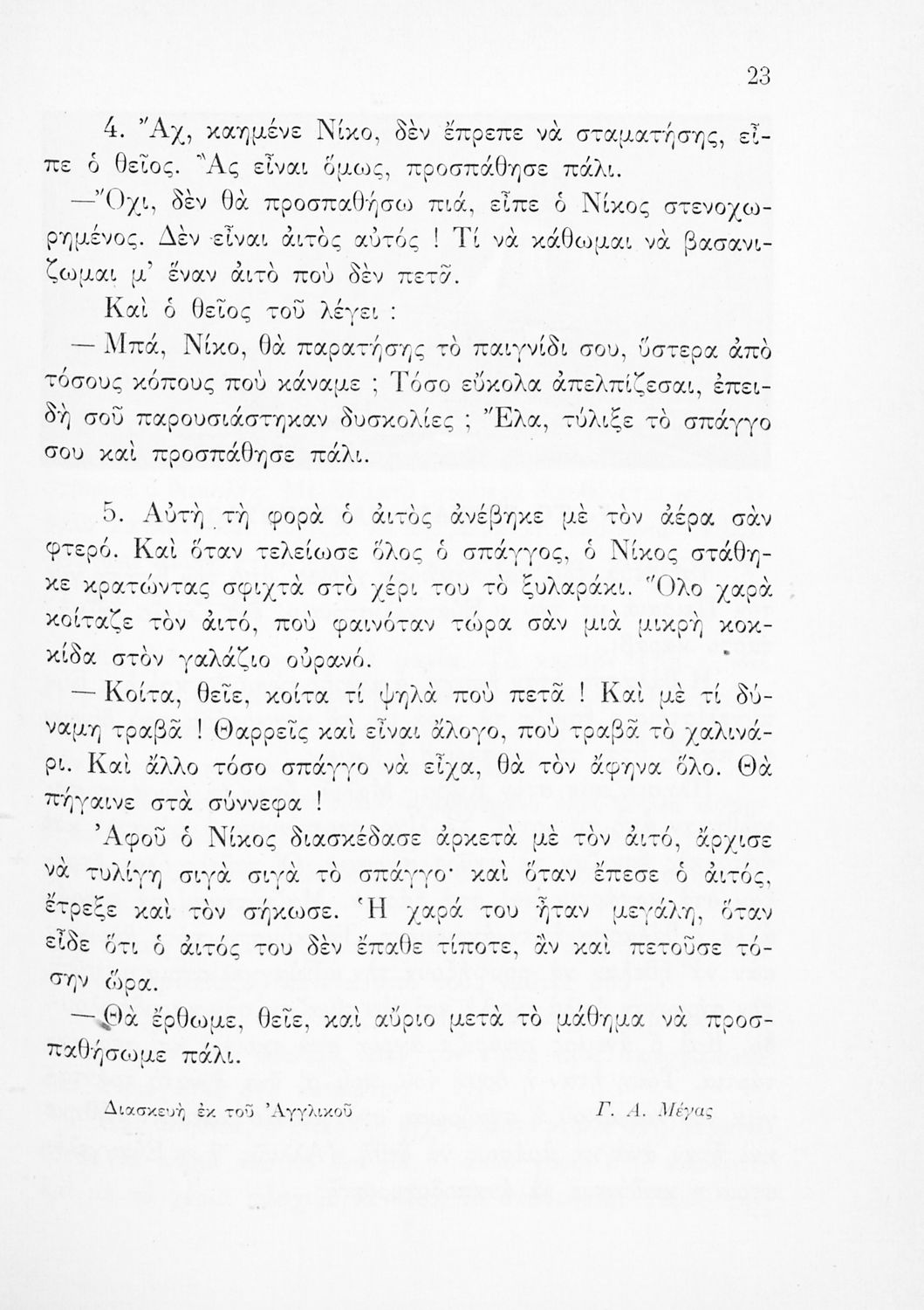 Αναγνωστικό Δ΄ Δημοτικού που περιέχει πεζά και ποιήματα με περιεχόμενο διδακτικό και ηθικοπλαστικό εμπνευσμένα από την ελληνική ιστορία και μυθολογία, και την αγροτική και κοινωνική ζωή.