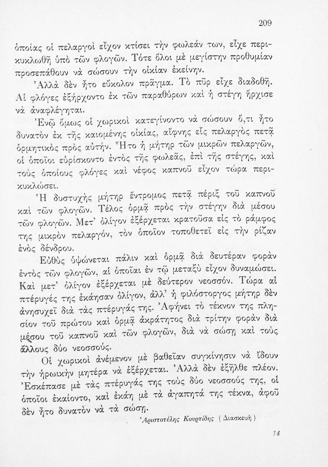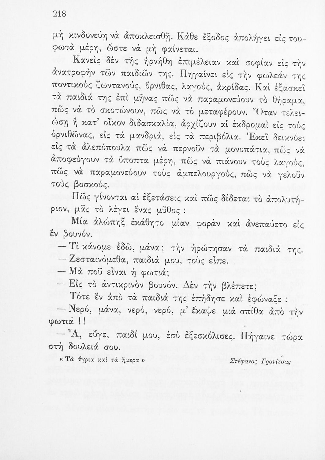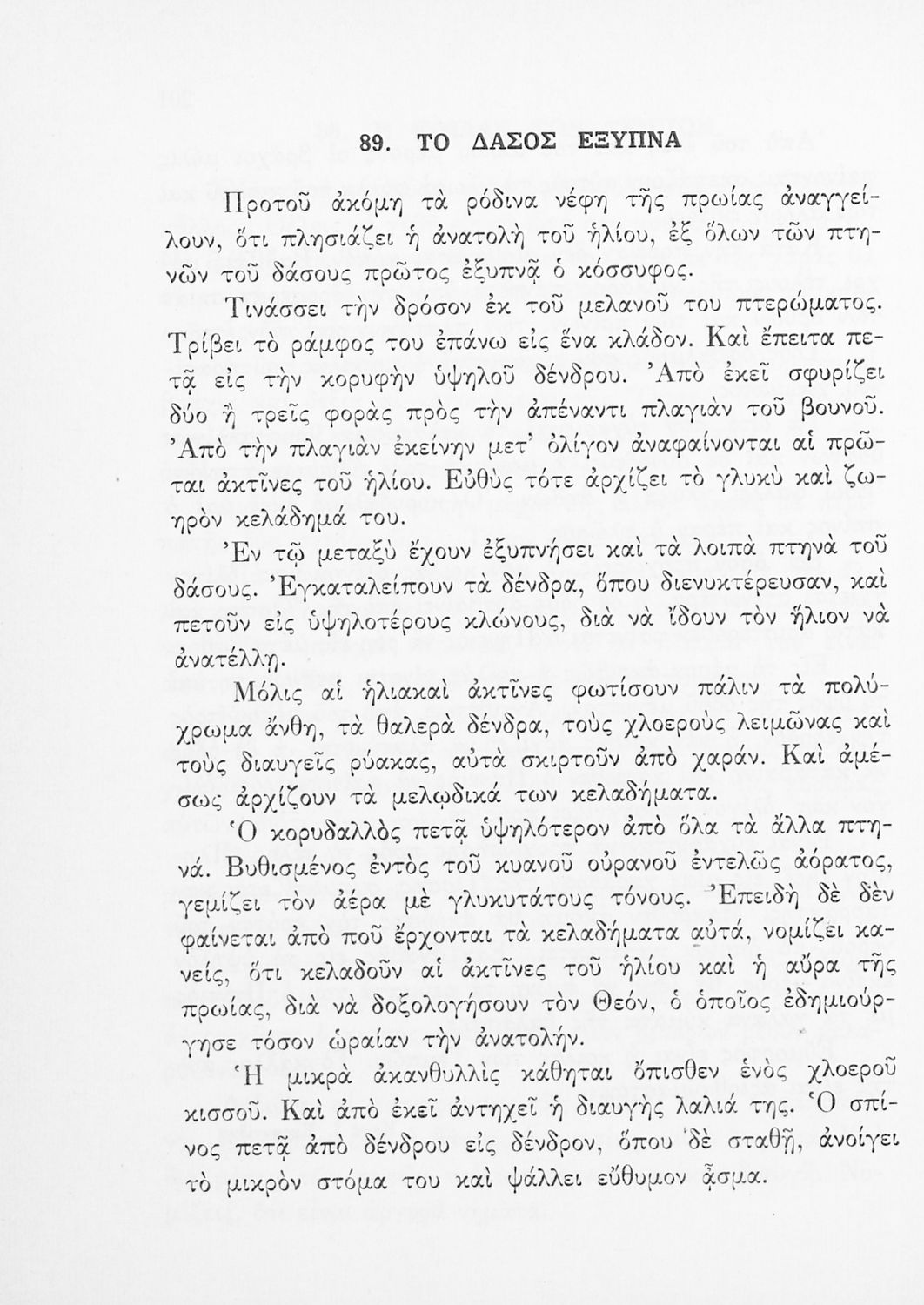 Αναγνωστικό Δ΄ Δημοτικού που περιέχει πεζά και ποιήματα με περιεχόμενο διδακτικό και ηθικοπλαστικό εμπνευσμένα από την ελληνική ιστορία και μυθολογία, και την αγροτική και κοινωνική ζωή.
