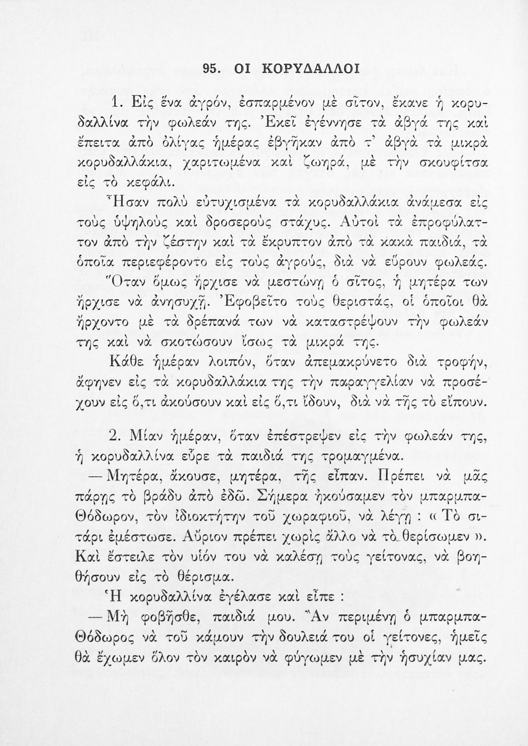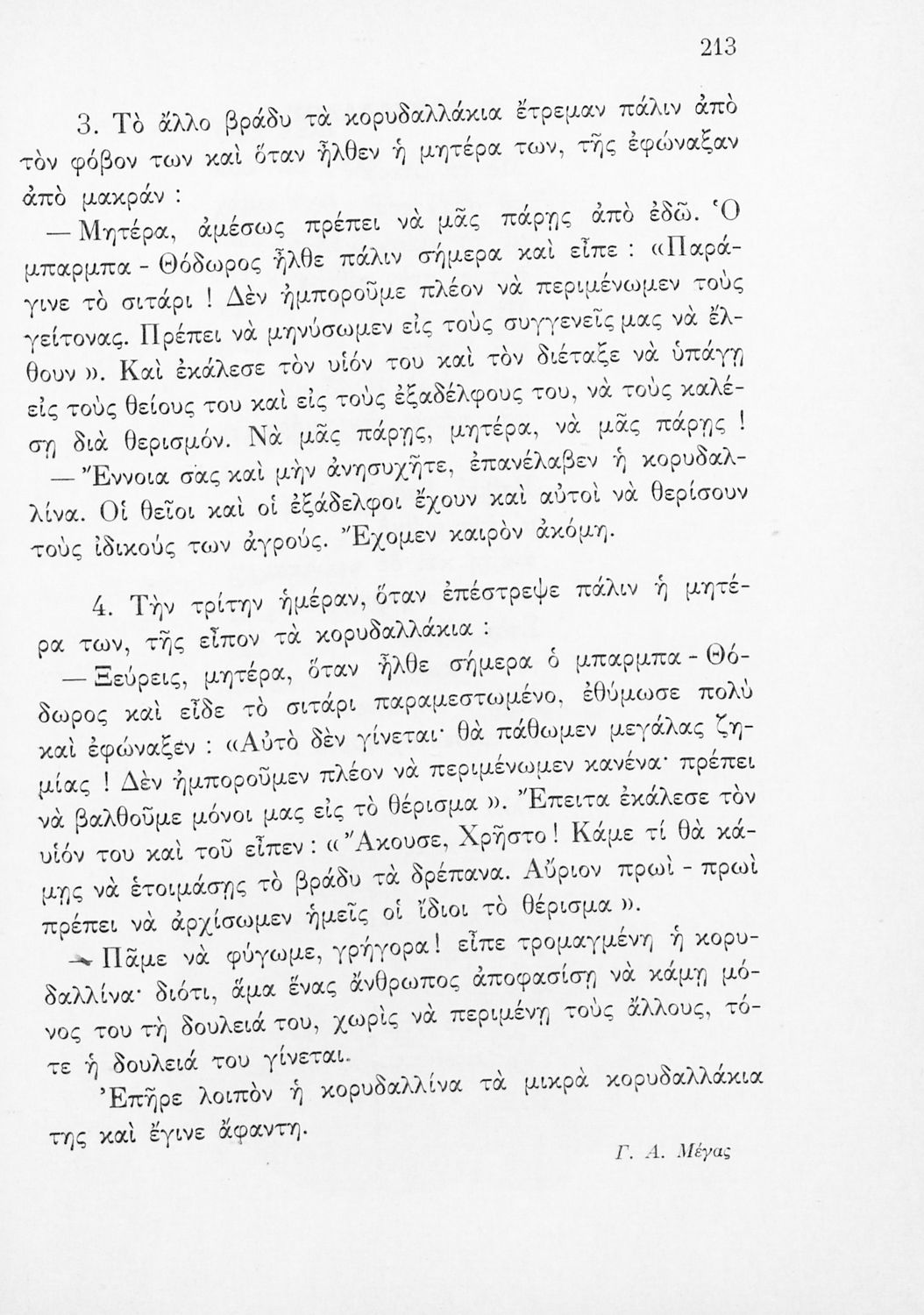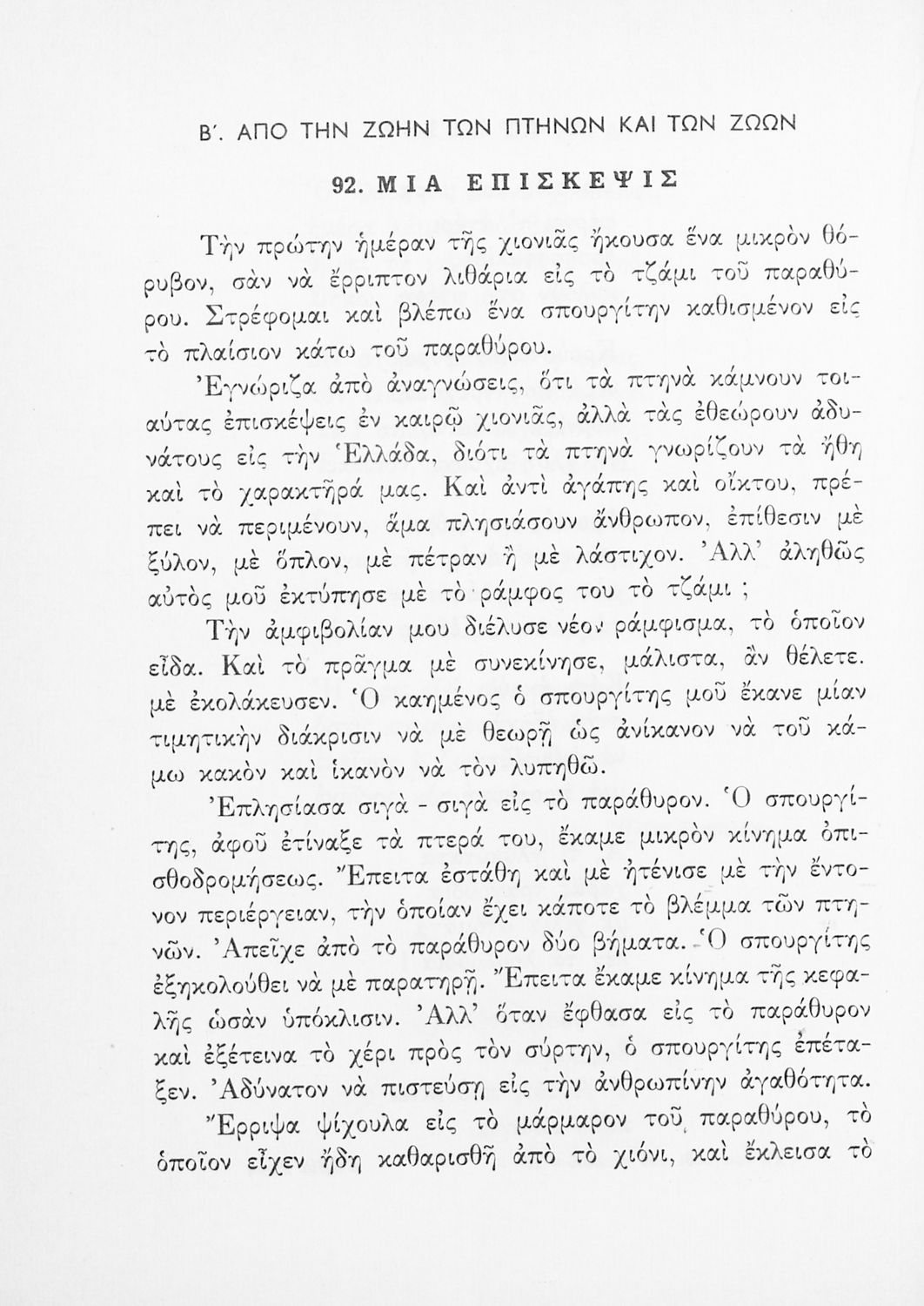Αναγνωστικό Δ΄ Δημοτικού που περιέχει πεζά και ποιήματα με περιεχόμενο διδακτικό και ηθικοπλαστικό εμπνευσμένα από την ελληνική ιστορία και μυθολογία, και την αγροτική και κοινωνική ζωή.