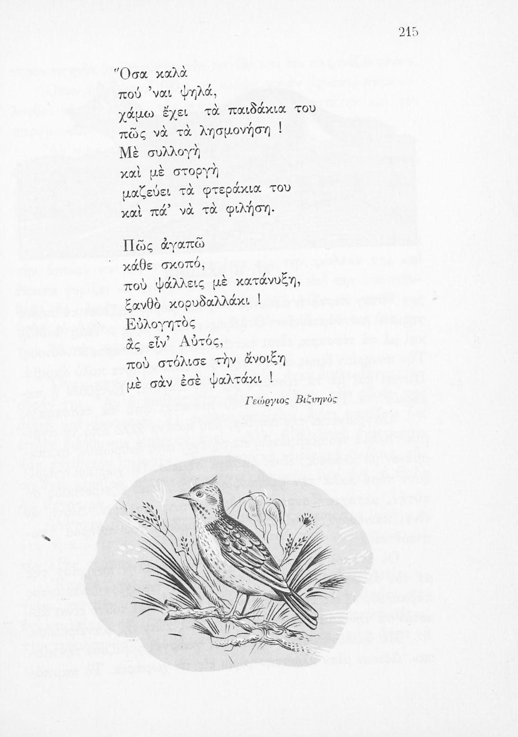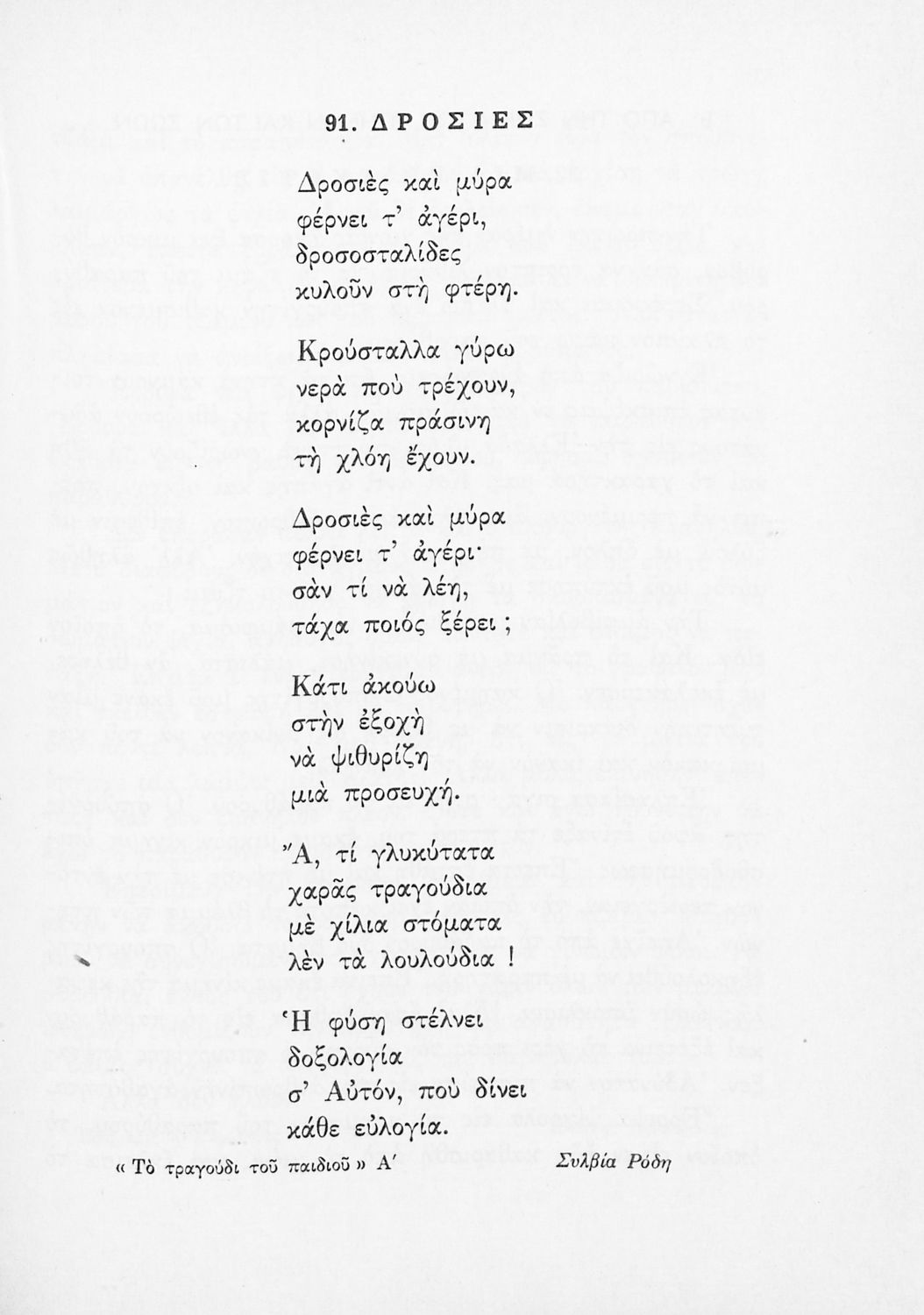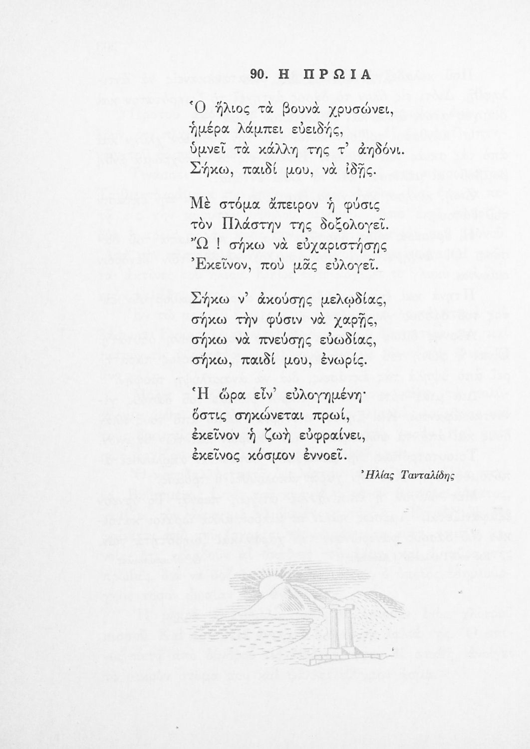 Αναγνωστικό για την Δ΄ τάξη του Δημοτικού. Περιλαμβάνει ένα κείμενο στο οποίο παρεμβάλλονται ποιήματα δημοτικά και Ελλήνων ποιητών.