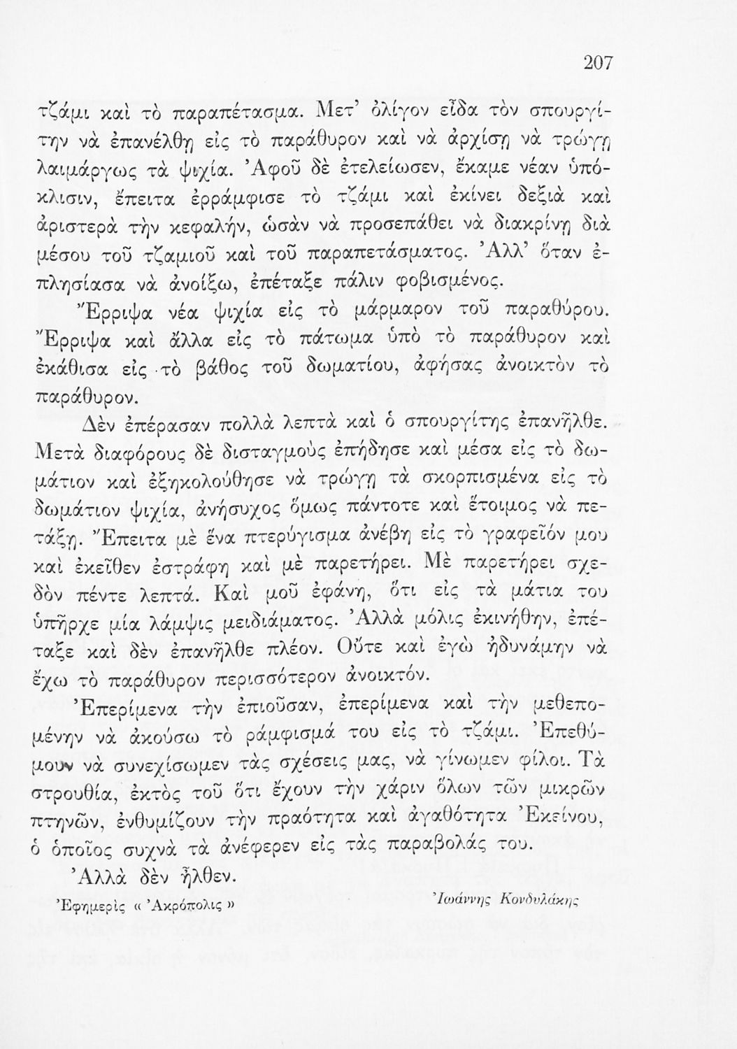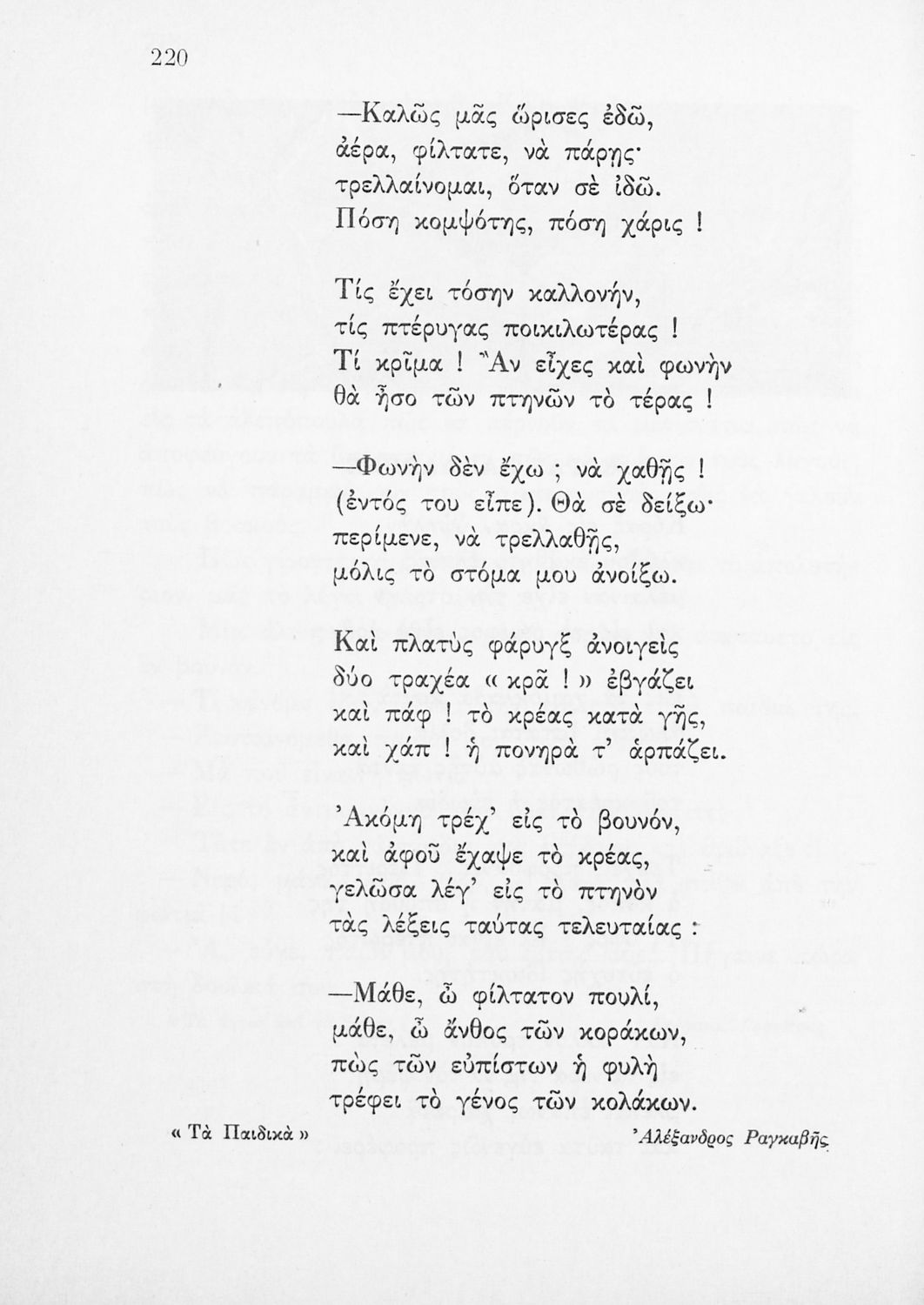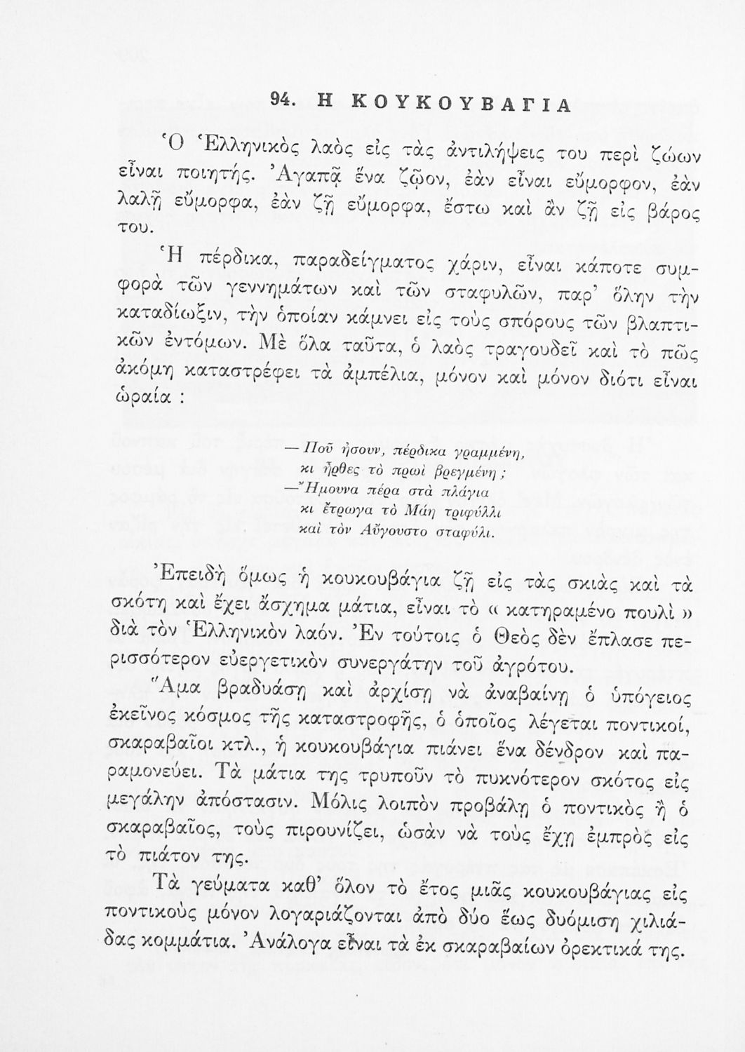Αναγνωστικό για την Δ΄ τάξη του Δημοτικού. Περιλαμβάνει ένα κείμενο στο οποίο παρεμβάλλονται ποιήματα δημοτικά και Ελλήνων ποιητών.