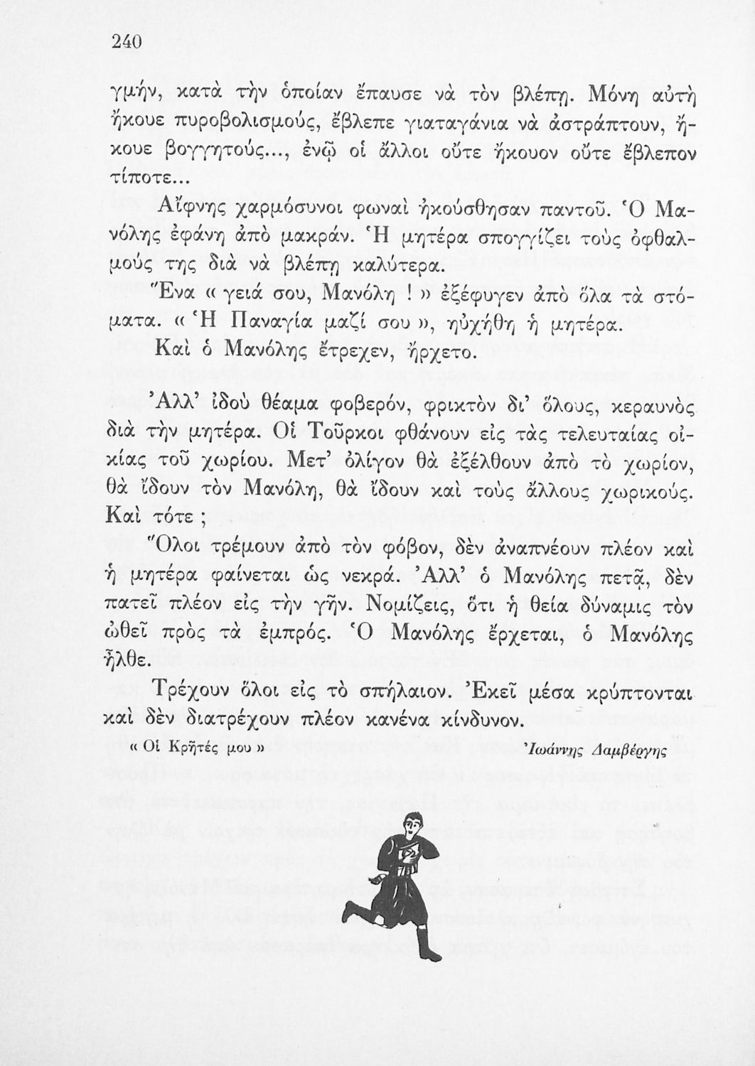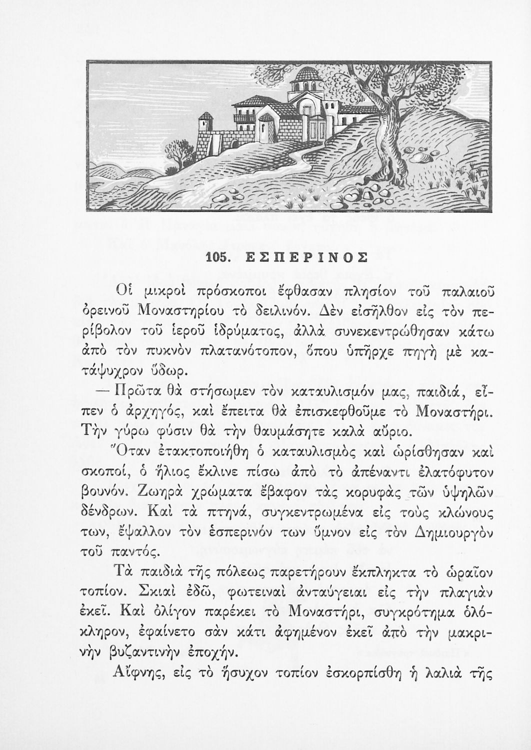 Αναγνωστικό Δ΄ Δημοτικού που περιέχει πεζά και ποιήματα με περιεχόμενο διδακτικό και ηθικοπλαστικό εμπνευσμένα από την ελληνική ιστορία και μυθολογία, και την αγροτική και κοινωνική ζωή.