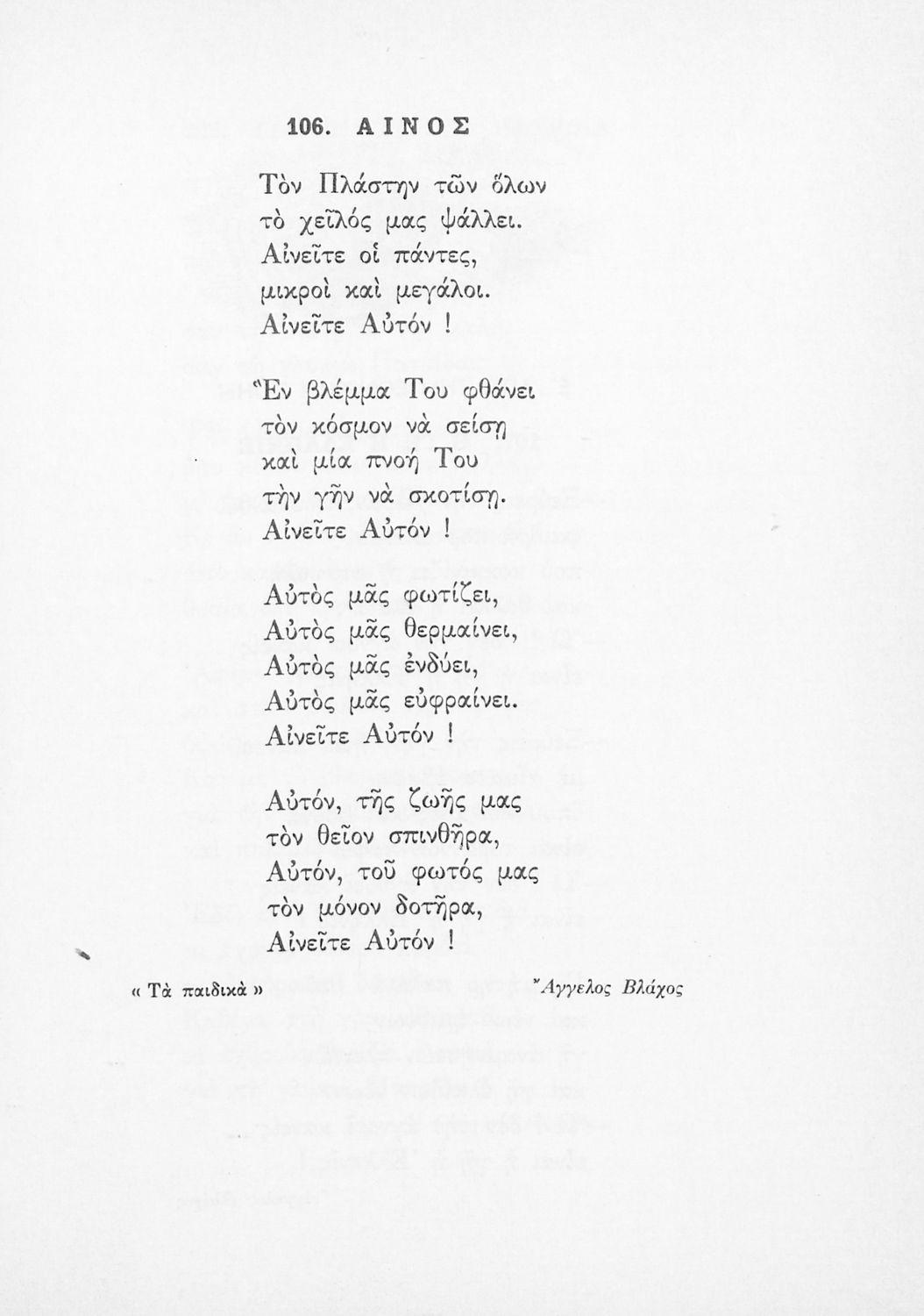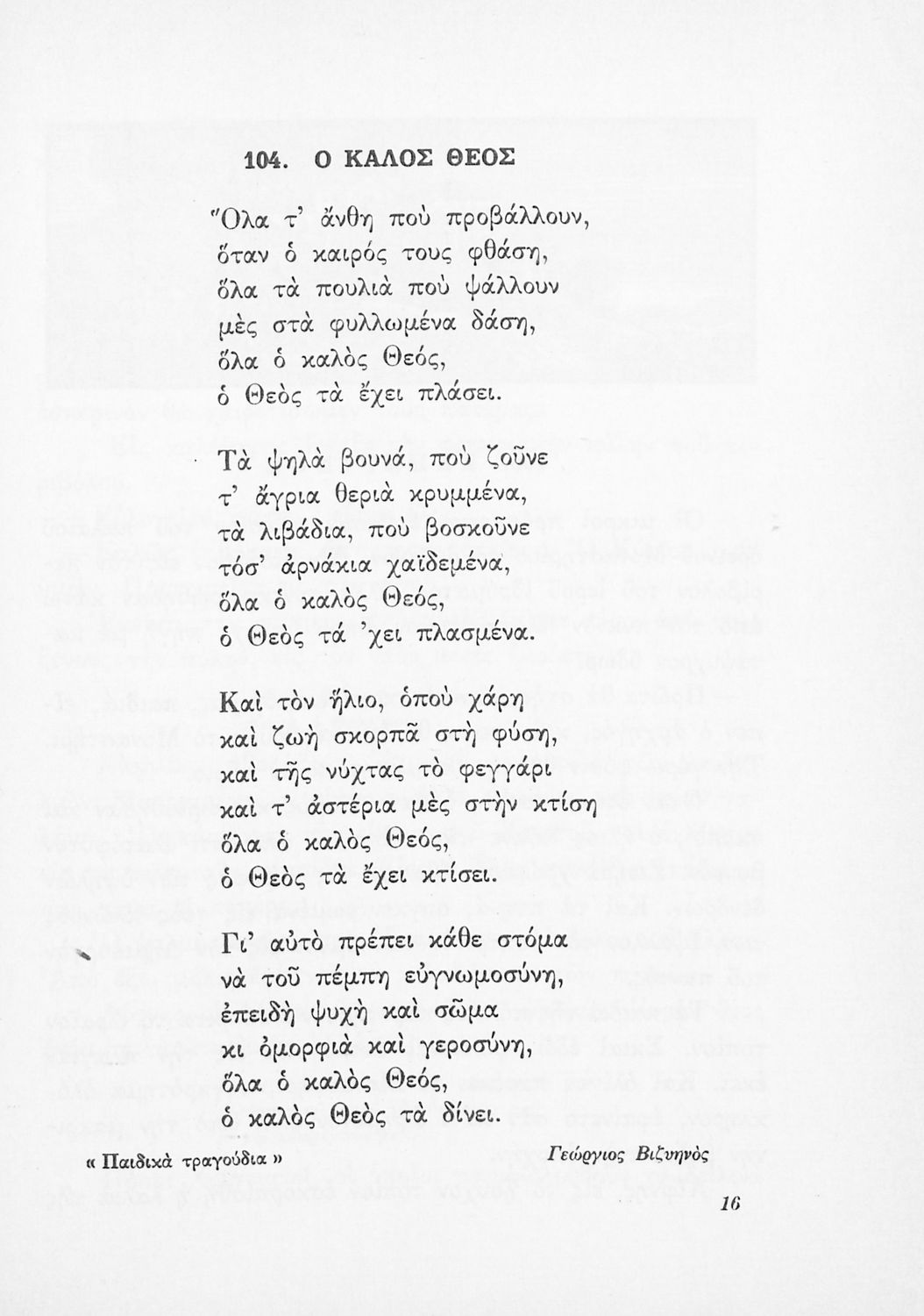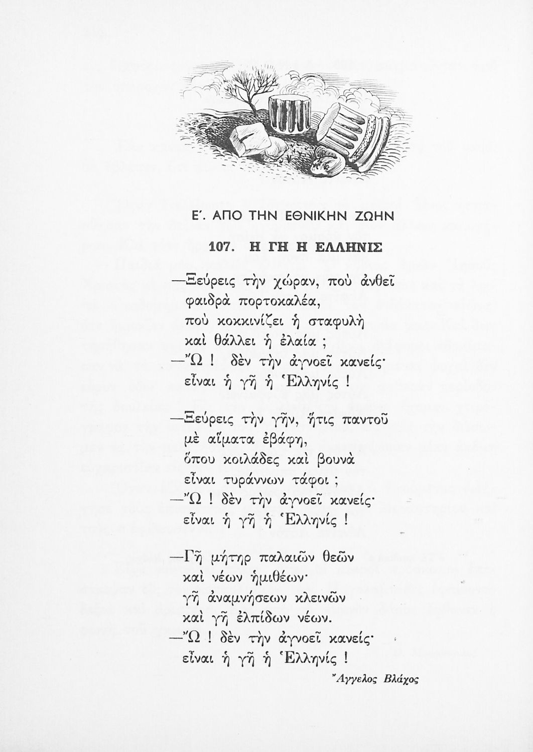 Αναγνωστικό για την Δ΄ τάξη του Δημοτικού. Περιλαμβάνει ένα κείμενο στο οποίο παρεμβάλλονται ποιήματα δημοτικά και Ελλήνων ποιητών.