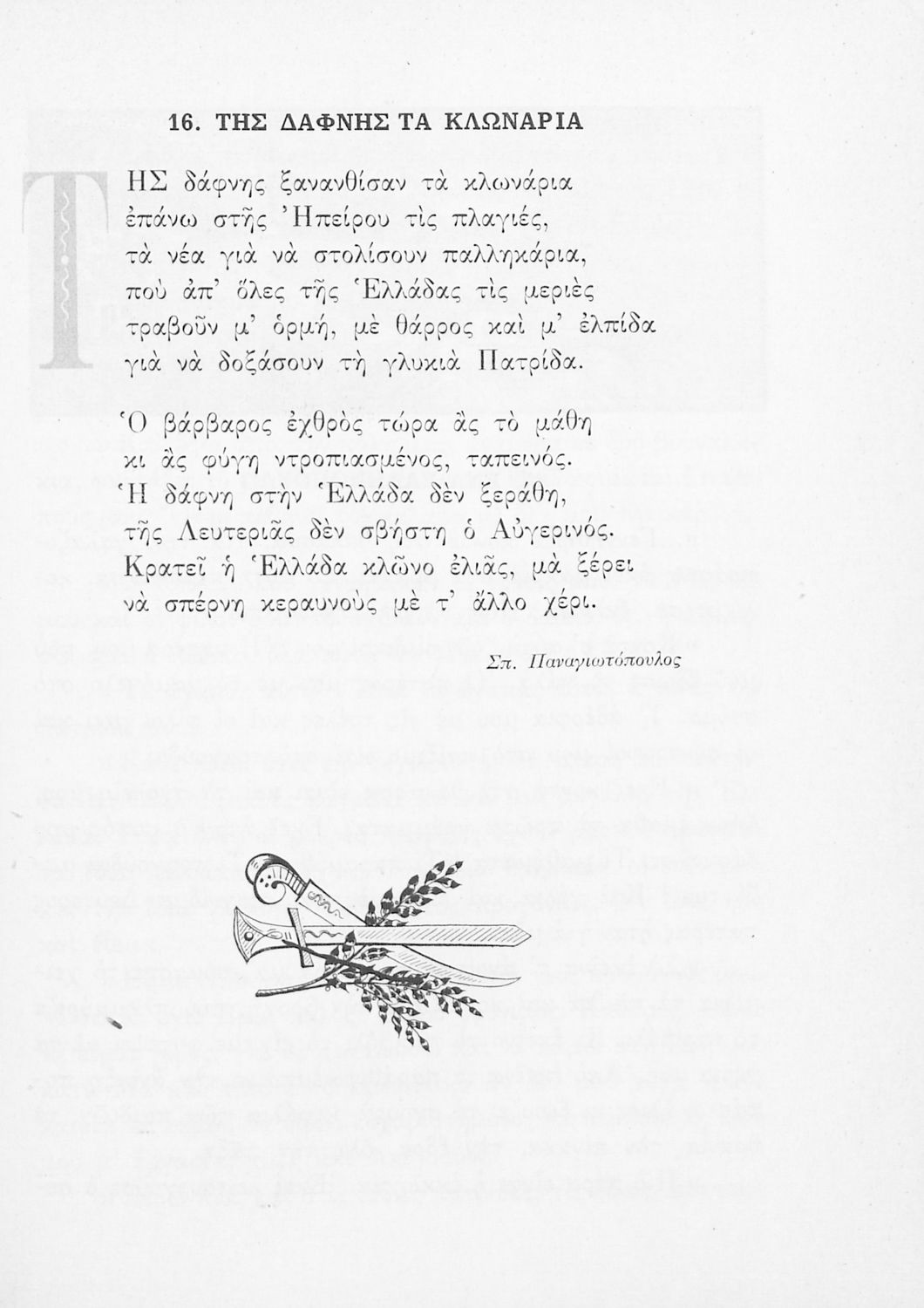 Αναγνωστικό για την Δ΄ τάξη του Δημοτικού. Περιλαμβάνει ένα κείμενο στο οποίο παρεμβάλλονται ποιήματα δημοτικά και Ελλήνων ποιητών.