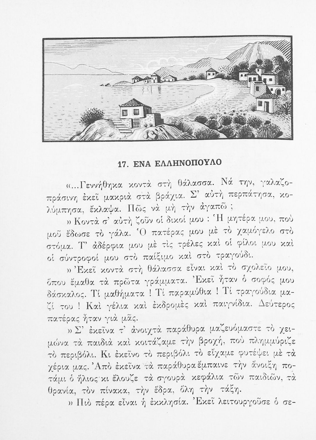 Αναγνωστικό Δ΄ Δημοτικού που περιέχει πεζά και ποιήματα εμπνευσμένα από την ελληνική ιστορία και μυθολογία, την κοινωνική ζωή και την ελληνική φύση.