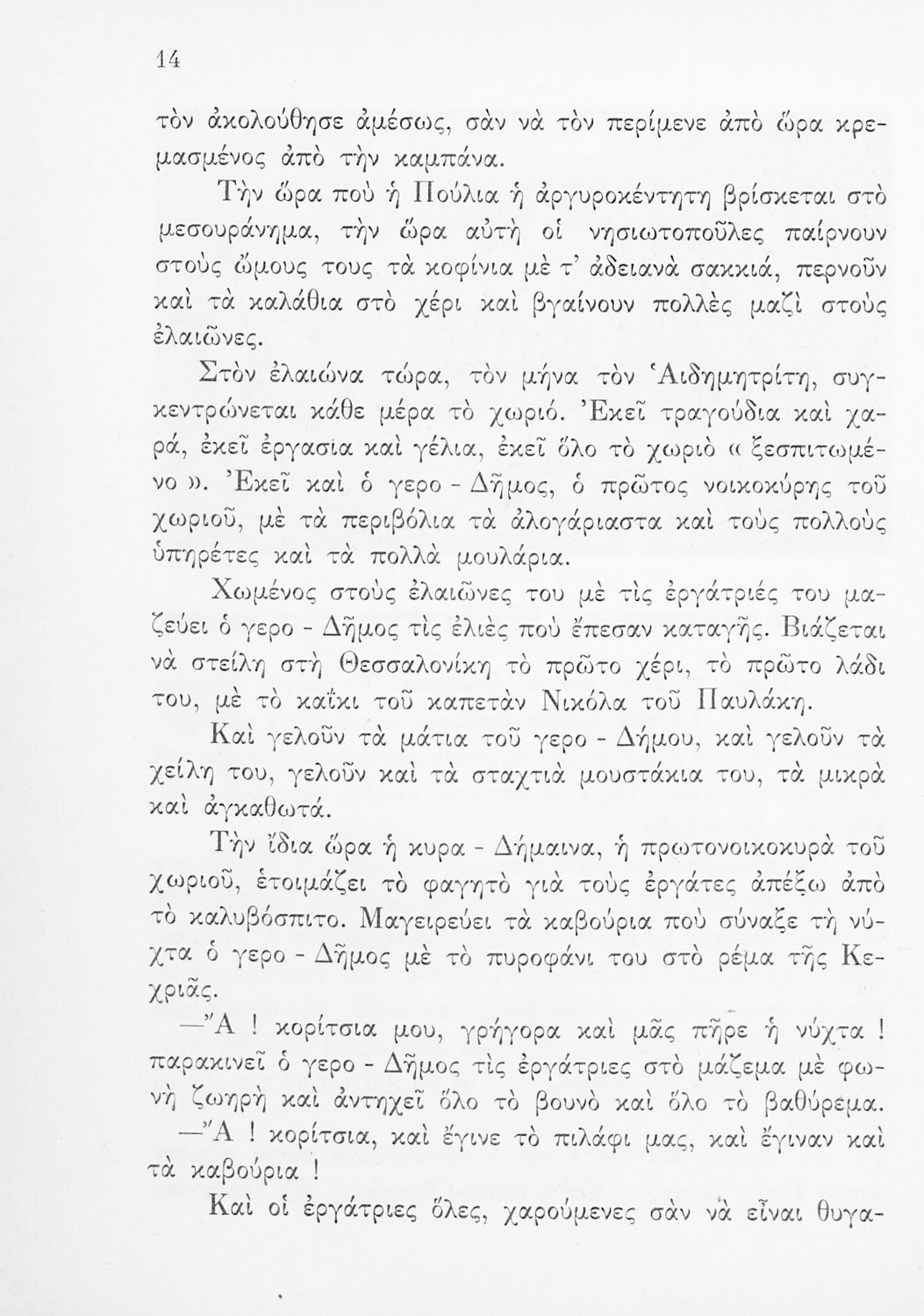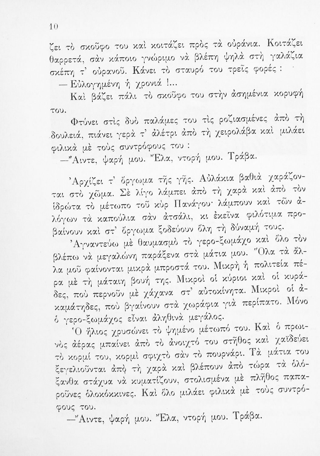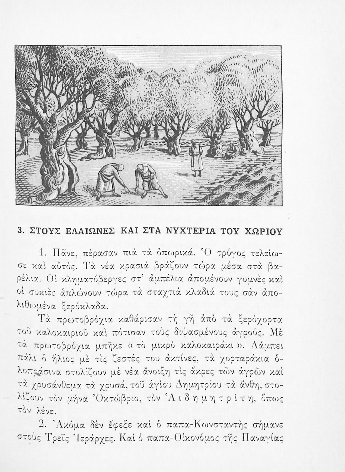 Αναγνωστικό Δ΄ Δημοτικού που περιέχει πεζά και ποιήματα με περιεχόμενο διδακτικό και ηθικοπλαστικό εμπνευσμένα από την ελληνική ιστορία και μυθολογία, και την αγροτική και κοινωνική ζωή.