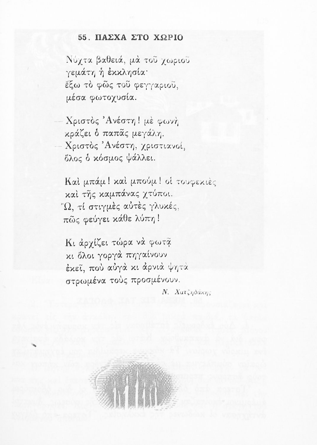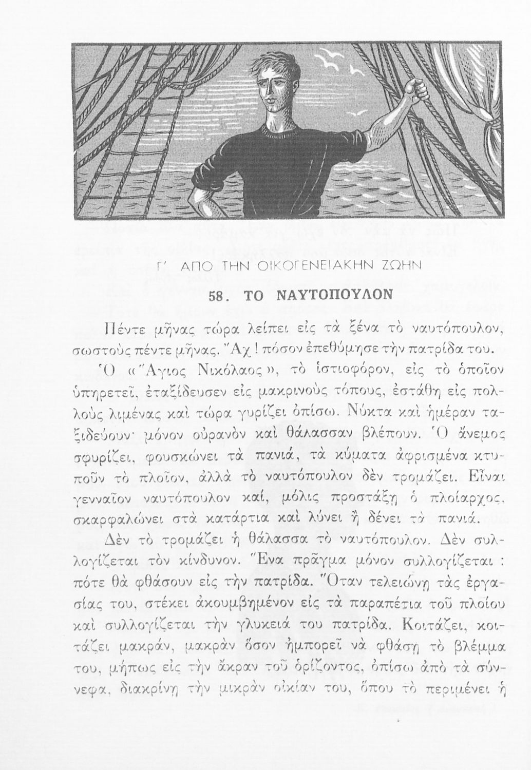 Αναγνωστικό για την Δ΄ τάξη του Δημοτικού. Περιλαμβάνει ένα κείμενο στο οποίο παρεμβάλλονται ποιήματα δημοτικά και Ελλήνων ποιητών.
