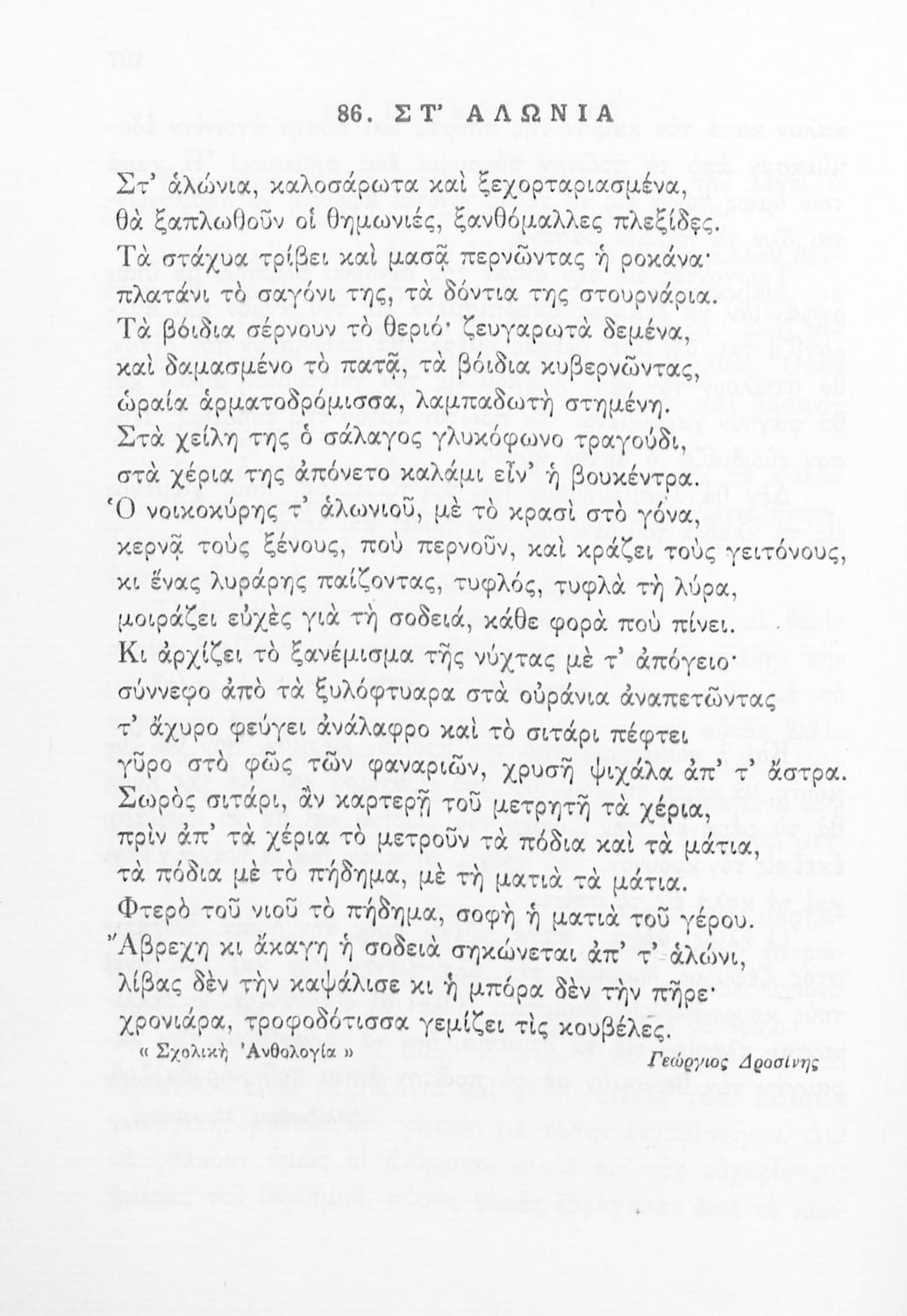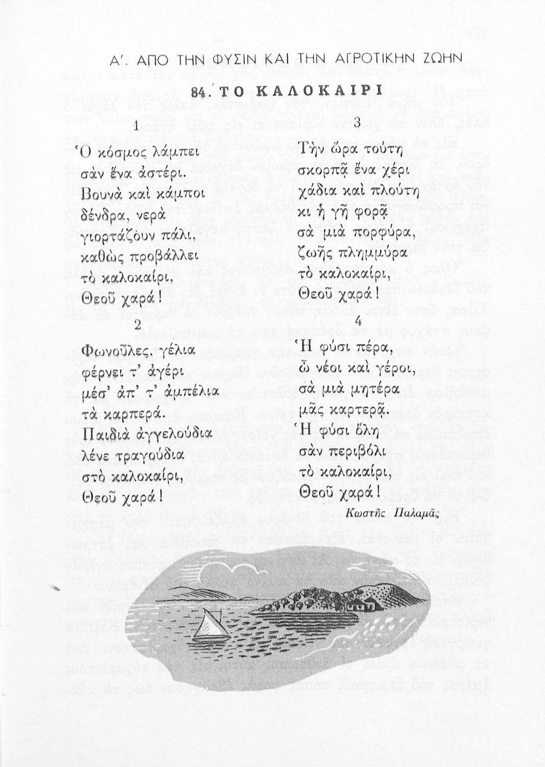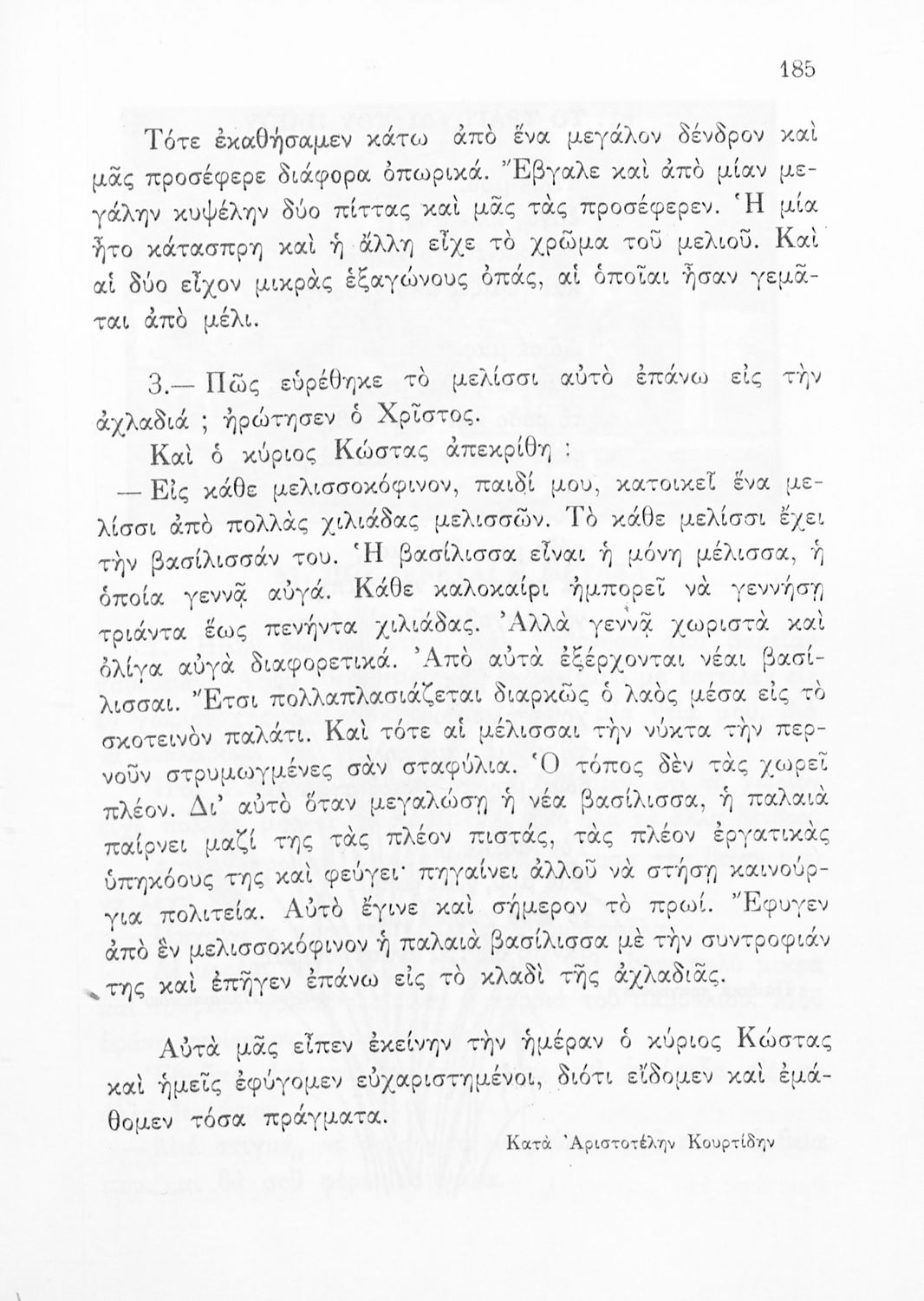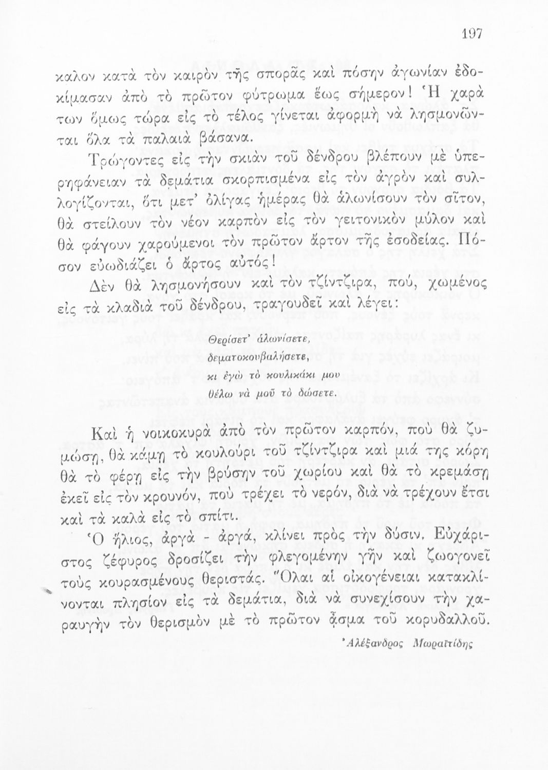 Αναγνωστικό Δ΄ Δημοτικού που περιέχει πεζά και ποιήματα με περιεχόμενο διδακτικό και ηθικοπλαστικό εμπνευσμένα από την ελληνική ιστορία και μυθολογία, και την αγροτική και κοινωνική ζωή.