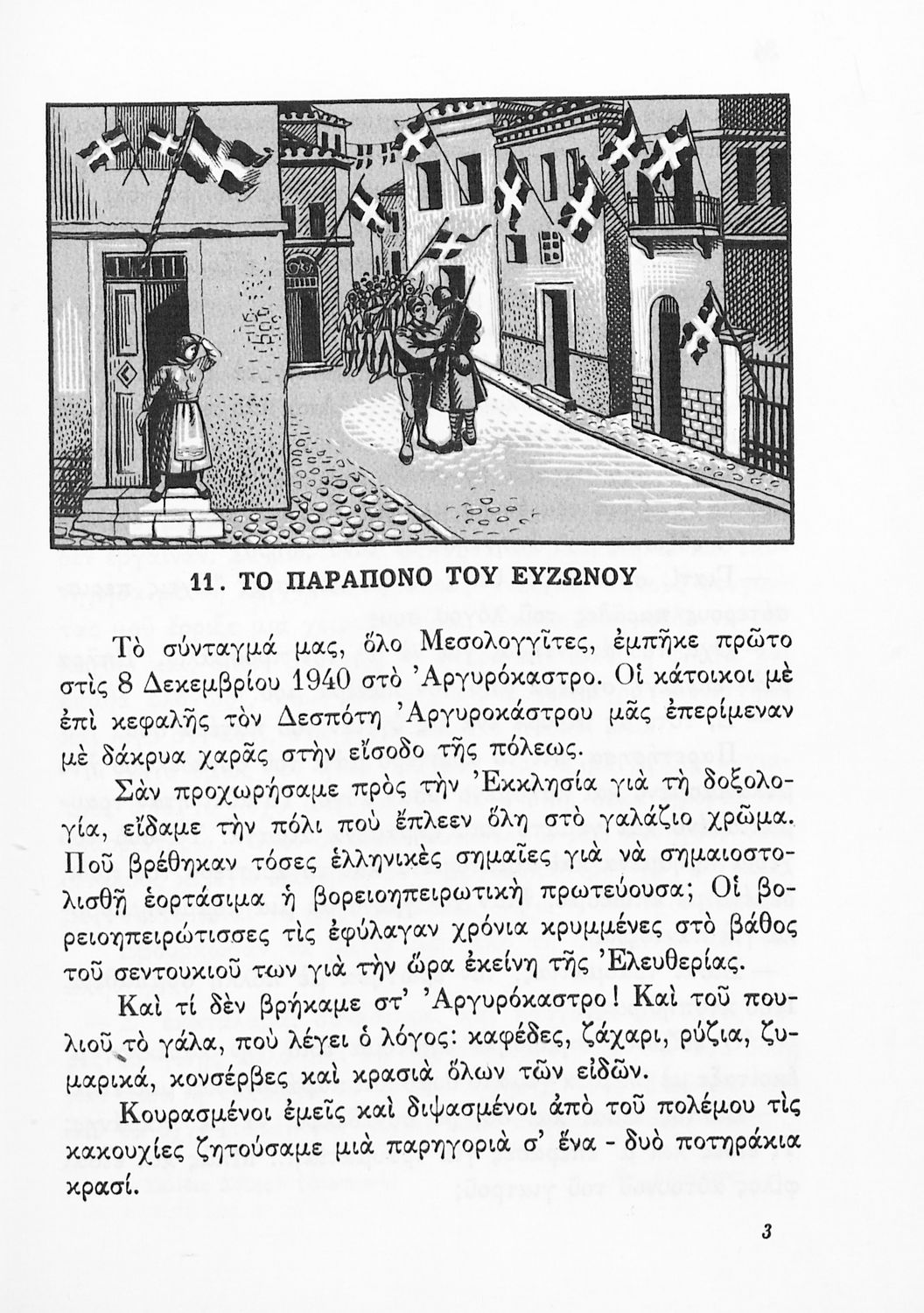 Αναγνωστικό Δ΄ Δημοτικού που περιέχει πεζά και ποιήματα εμπνευσμένα από την ελληνική ιστορία και μυθολογία, την κοινωνική ζωή και την ελληνική φύση.