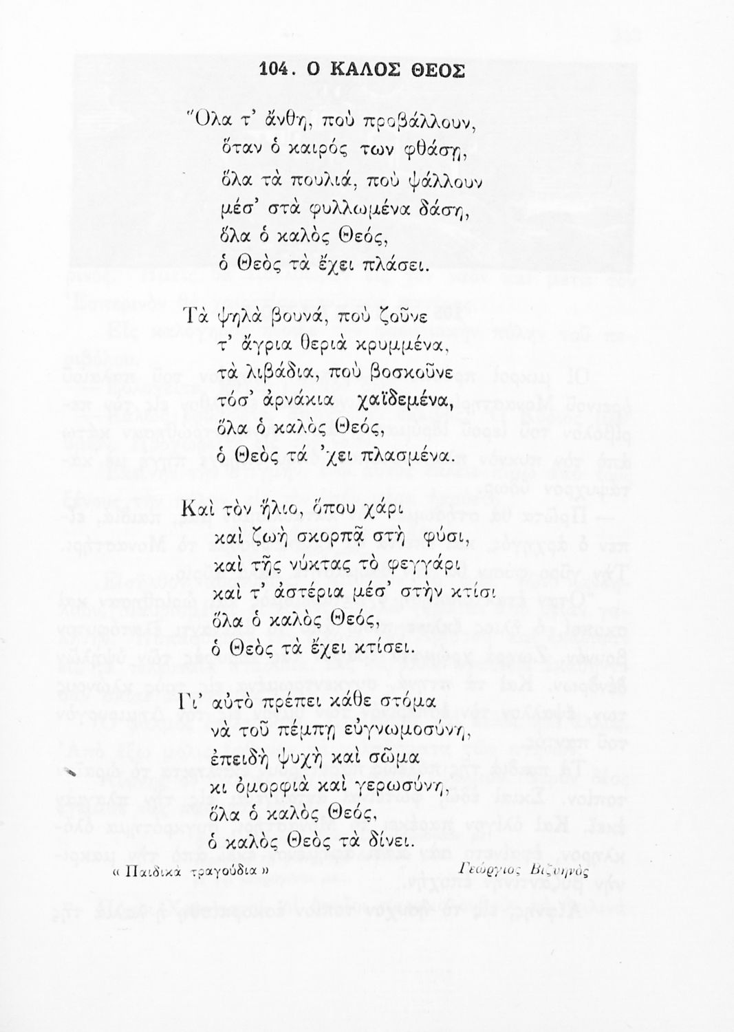 Αναγνωστικό για την Δ΄ τάξη του Δημοτικού. Περιλαμβάνει ένα κείμενο στο οποίο παρεμβάλλονται ποιήματα δημοτικά και Ελλήνων ποιητών.