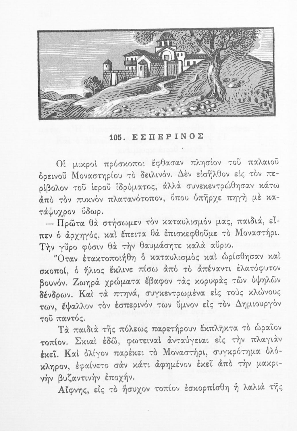 Αναγνωστικό Δ΄ Δημοτικού που περιέχει πεζά και ποιήματα με περιεχόμενο διδακτικό και ηθικοπλαστικό εμπνευσμένα από την ελληνική ιστορία και μυθολογία, και την αγροτική και κοινωνική ζωή.