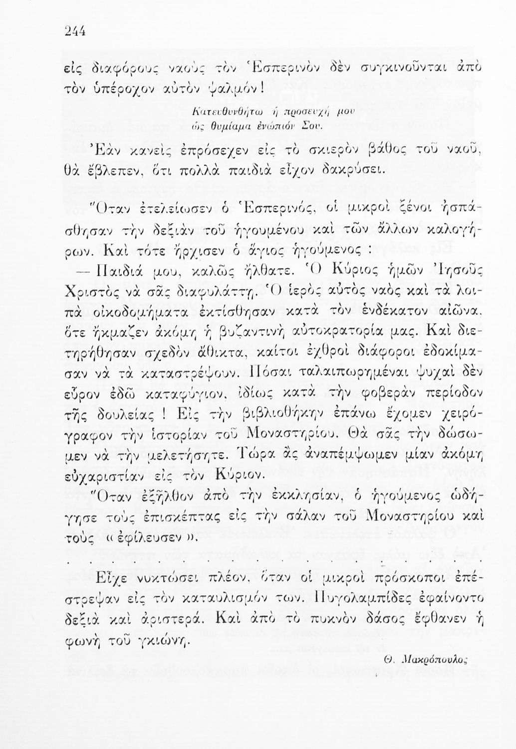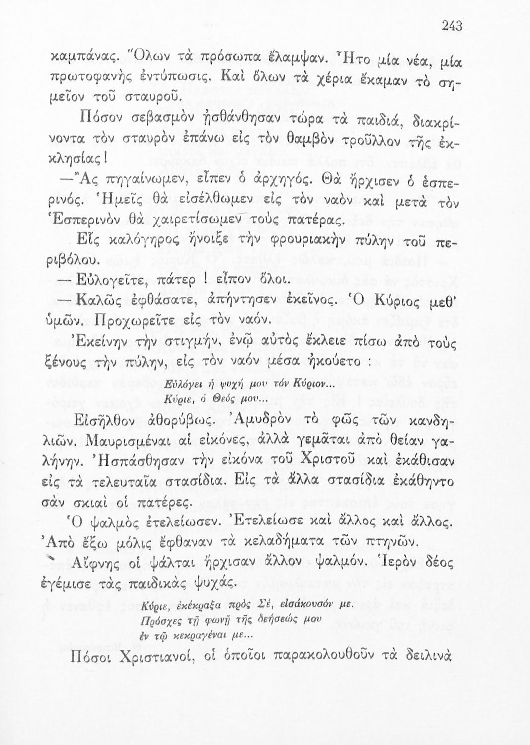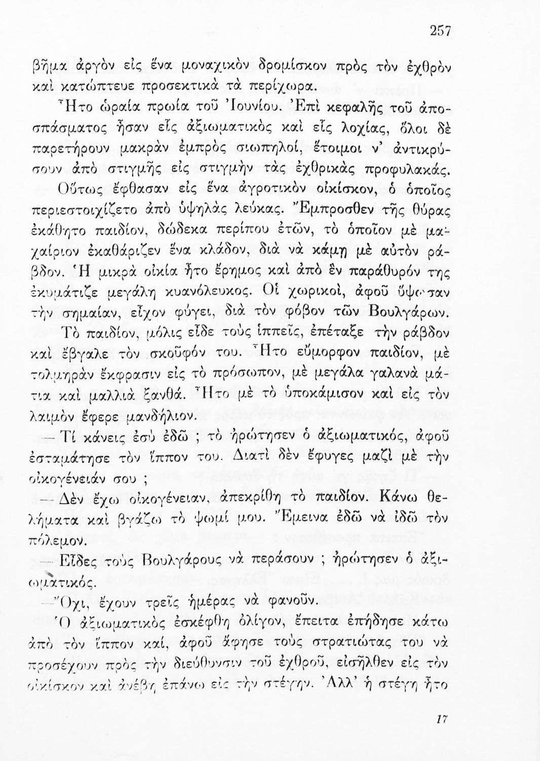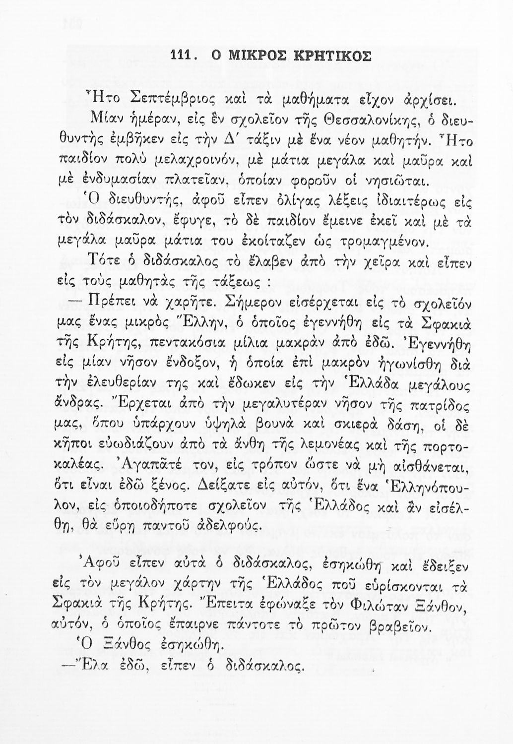 Αναγνωστικό Δ΄ Δημοτικού που περιέχει πεζά και ποιήματα με περιεχόμενο διδακτικό και ηθικοπλαστικό εμπνευσμένα από την ελληνική ιστορία και μυθολογία, και την αγροτική και κοινωνική ζωή.