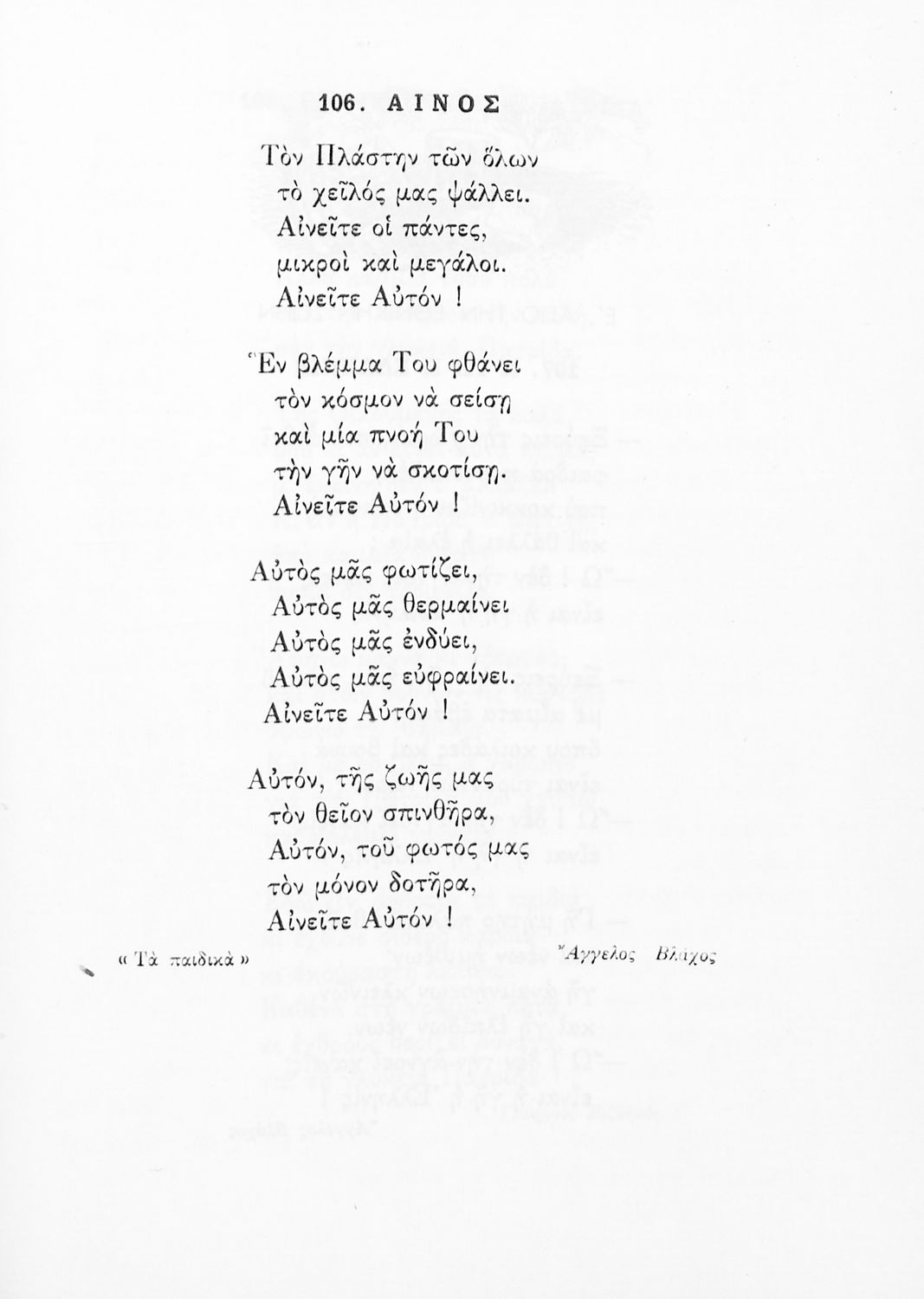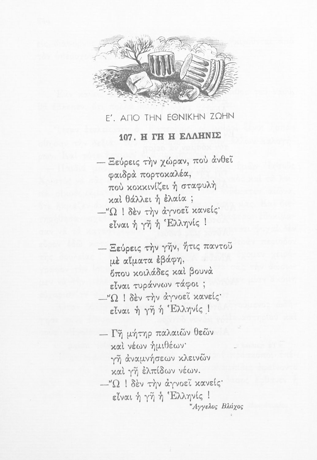 Αναγνωστικό για την Δ΄ τάξη του Δημοτικού. Περιλαμβάνει ένα κείμενο στο οποίο παρεμβάλλονται ποιήματα δημοτικά και Ελλήνων ποιητών.