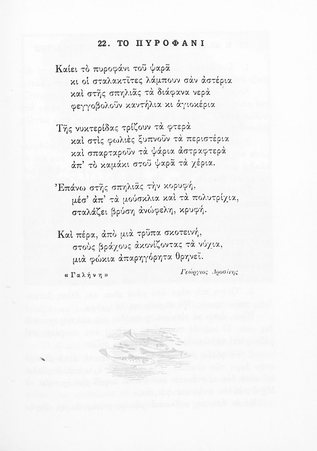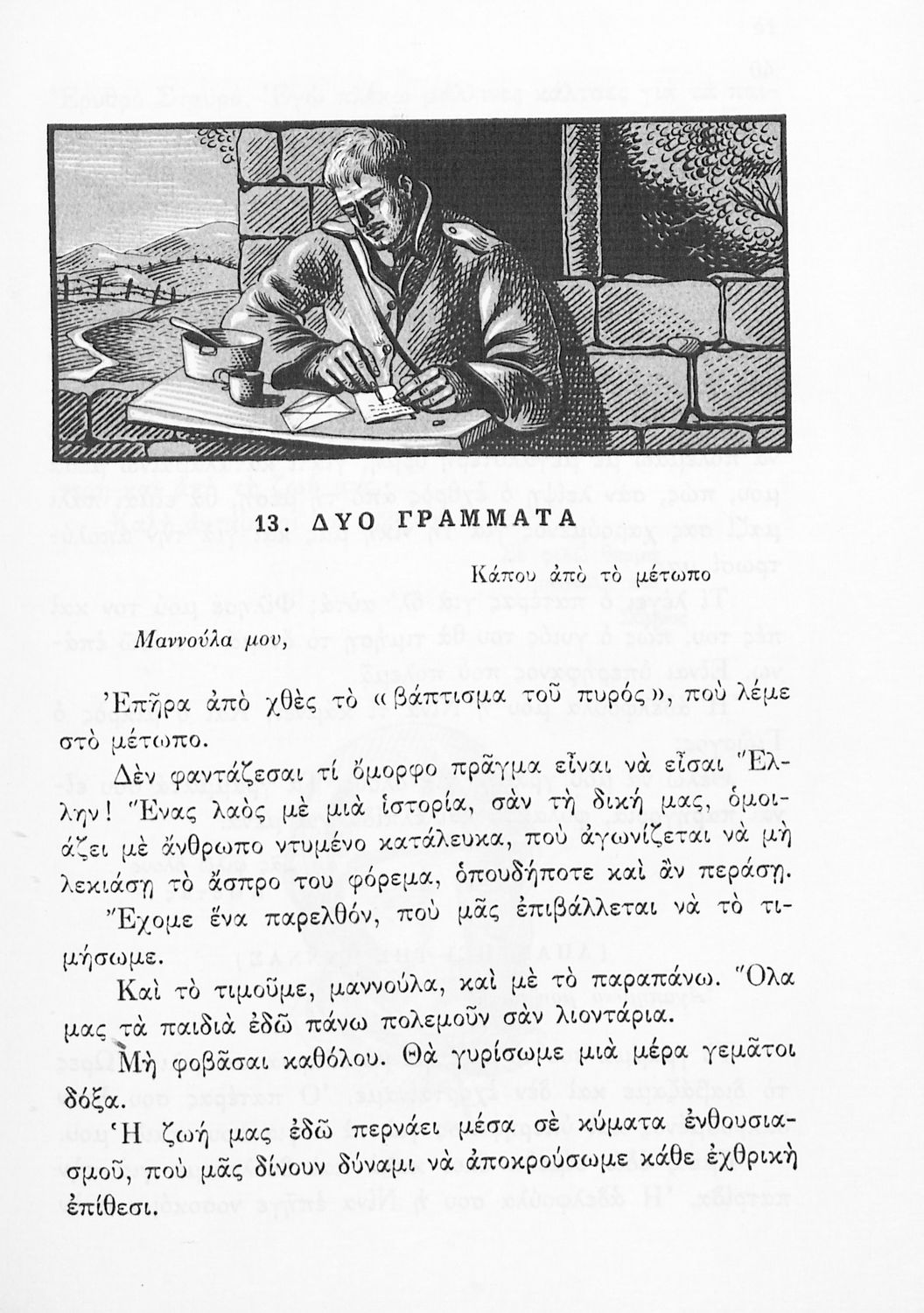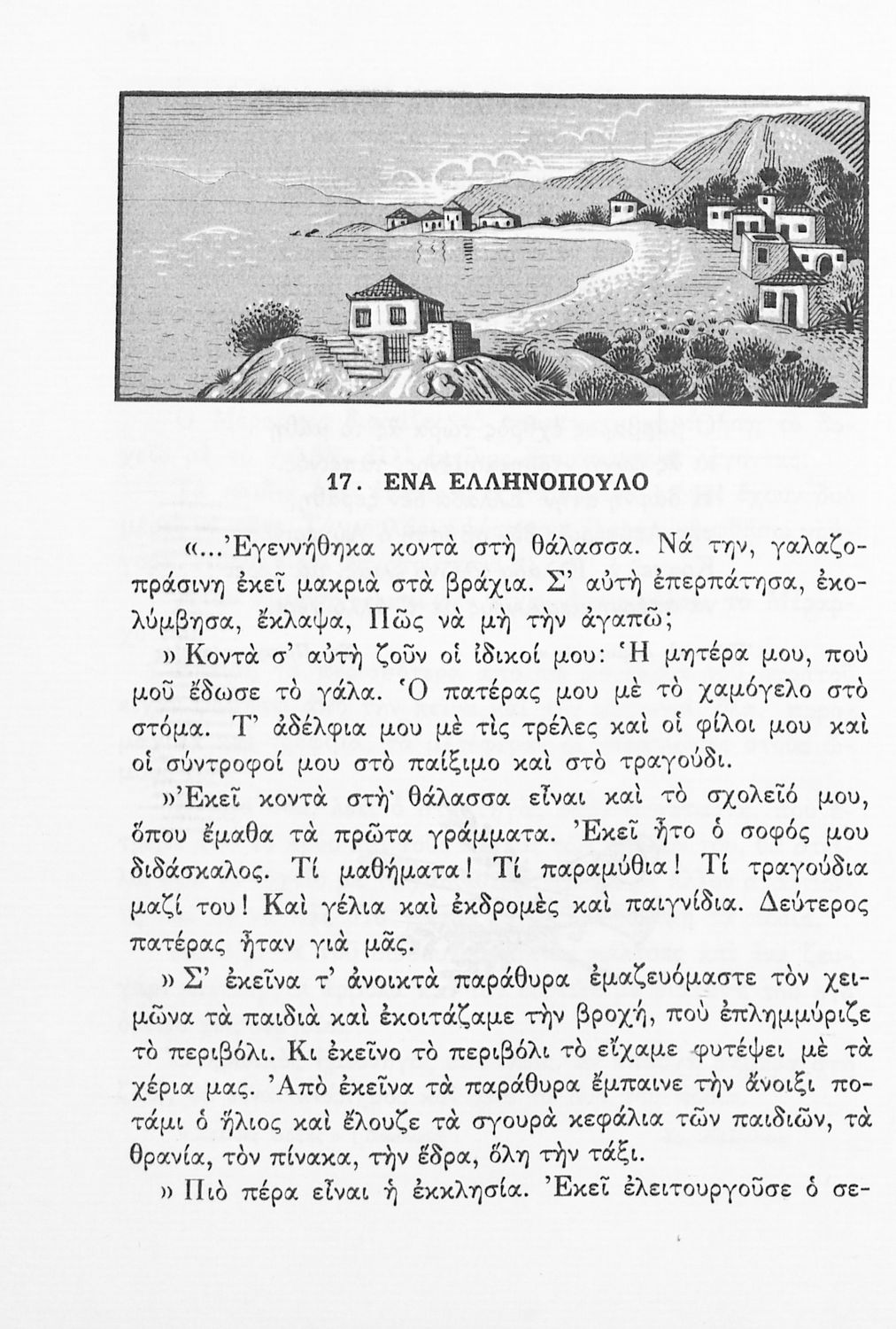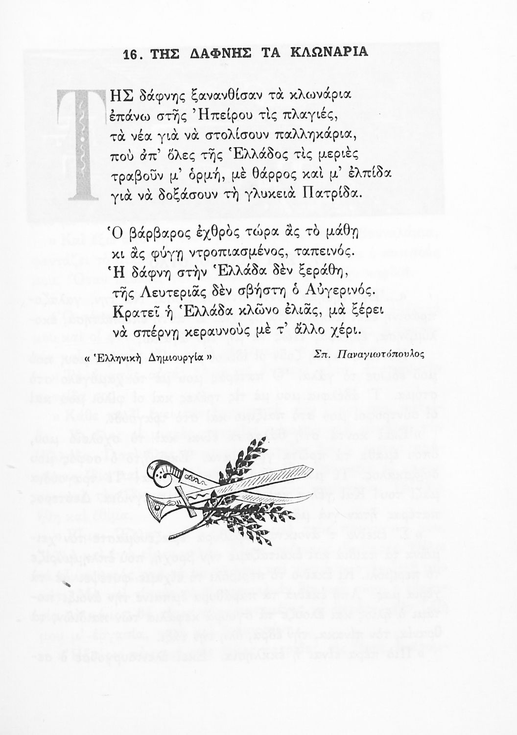 Αναγνωστικό Δ΄ Δημοτικού που περιέχει πεζά και ποιήματα με περιεχόμενο διδακτικό και ηθικοπλαστικό εμπνευσμένα από την ελληνική ιστορία και μυθολογία, και την αγροτική και κοινωνική ζωή.