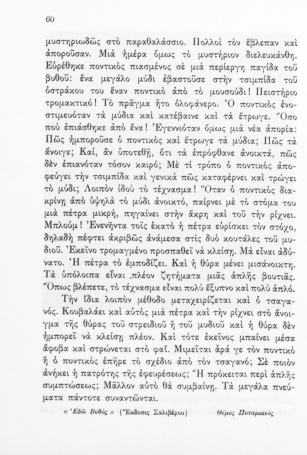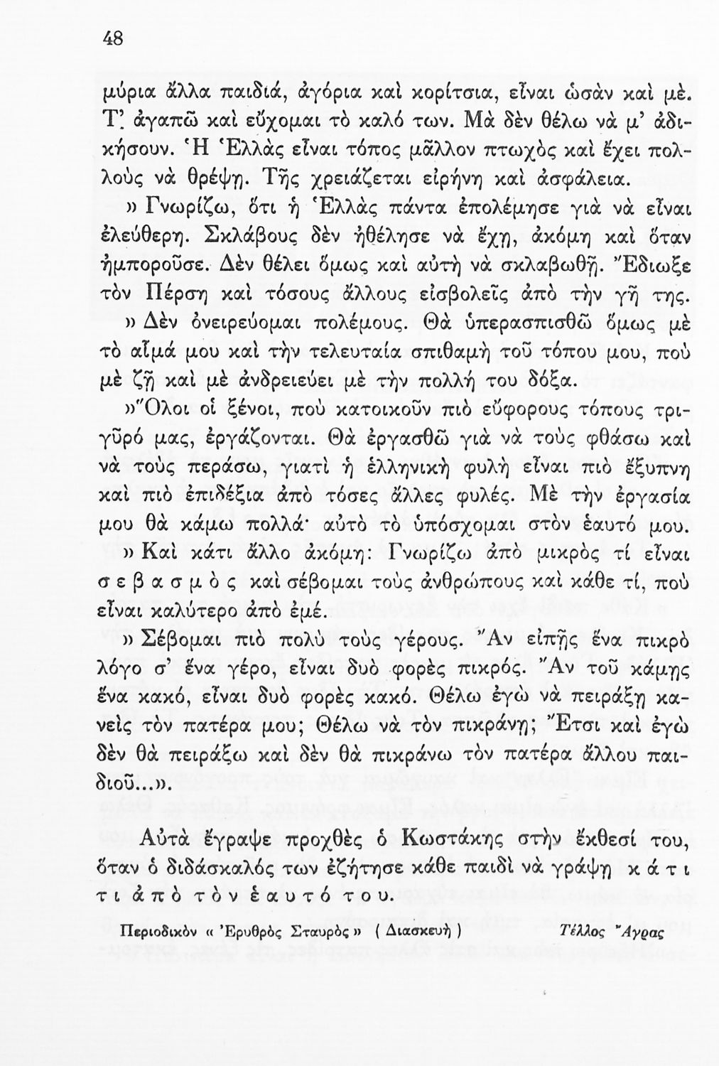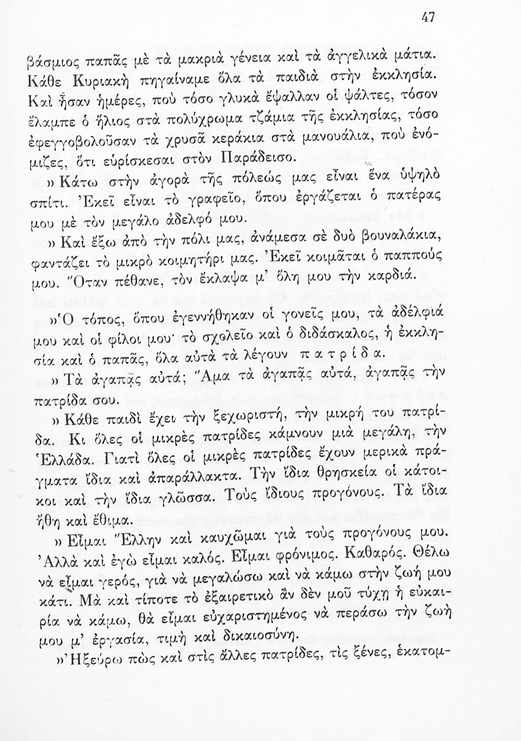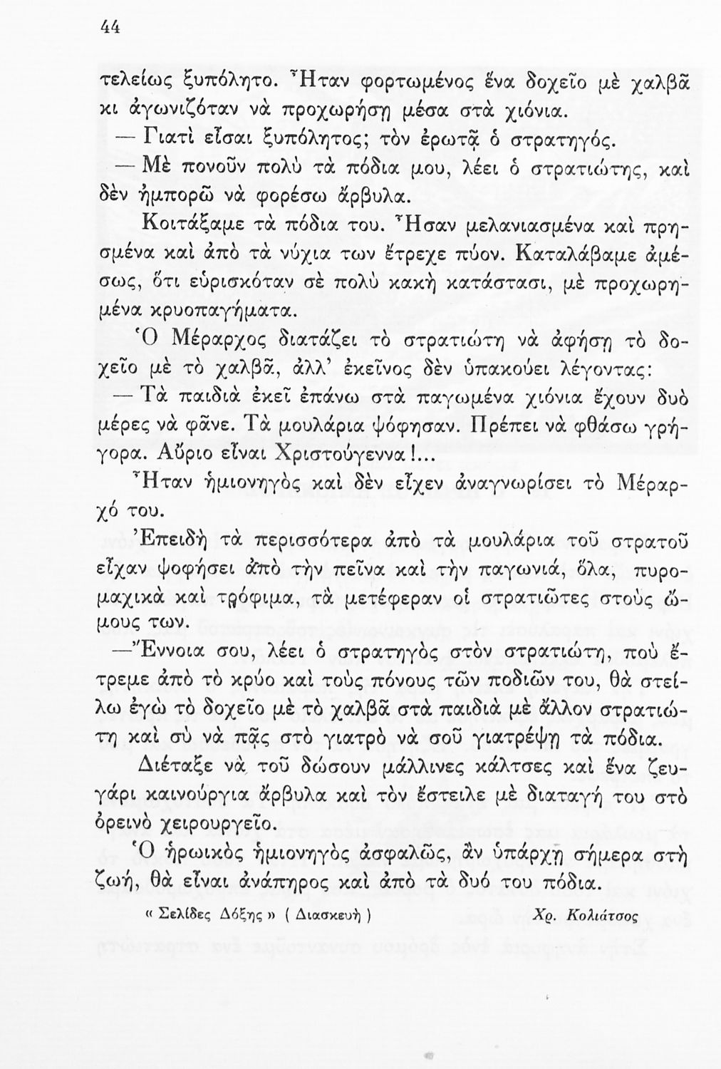 Αναγνωστικό Δ΄ Δημοτικού που περιέχει πεζά και ποιήματα με περιεχόμενο διδακτικό και ηθικοπλαστικό εμπνευσμένα από την ελληνική ιστορία και μυθολογία, και την αγροτική και κοινωνική ζωή.
