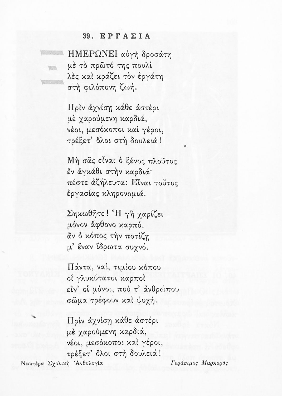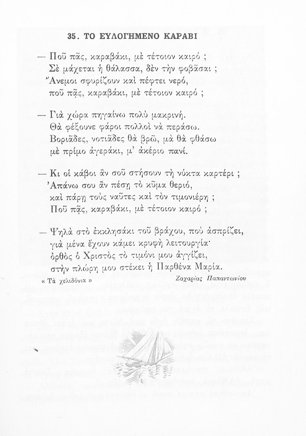 Αναγνωστικό για την Δ΄ τάξη του Δημοτικού. Περιλαμβάνει ένα κείμενο στο οποίο παρεμβάλλονται ποιήματα δημοτικά και Ελλήνων ποιητών.