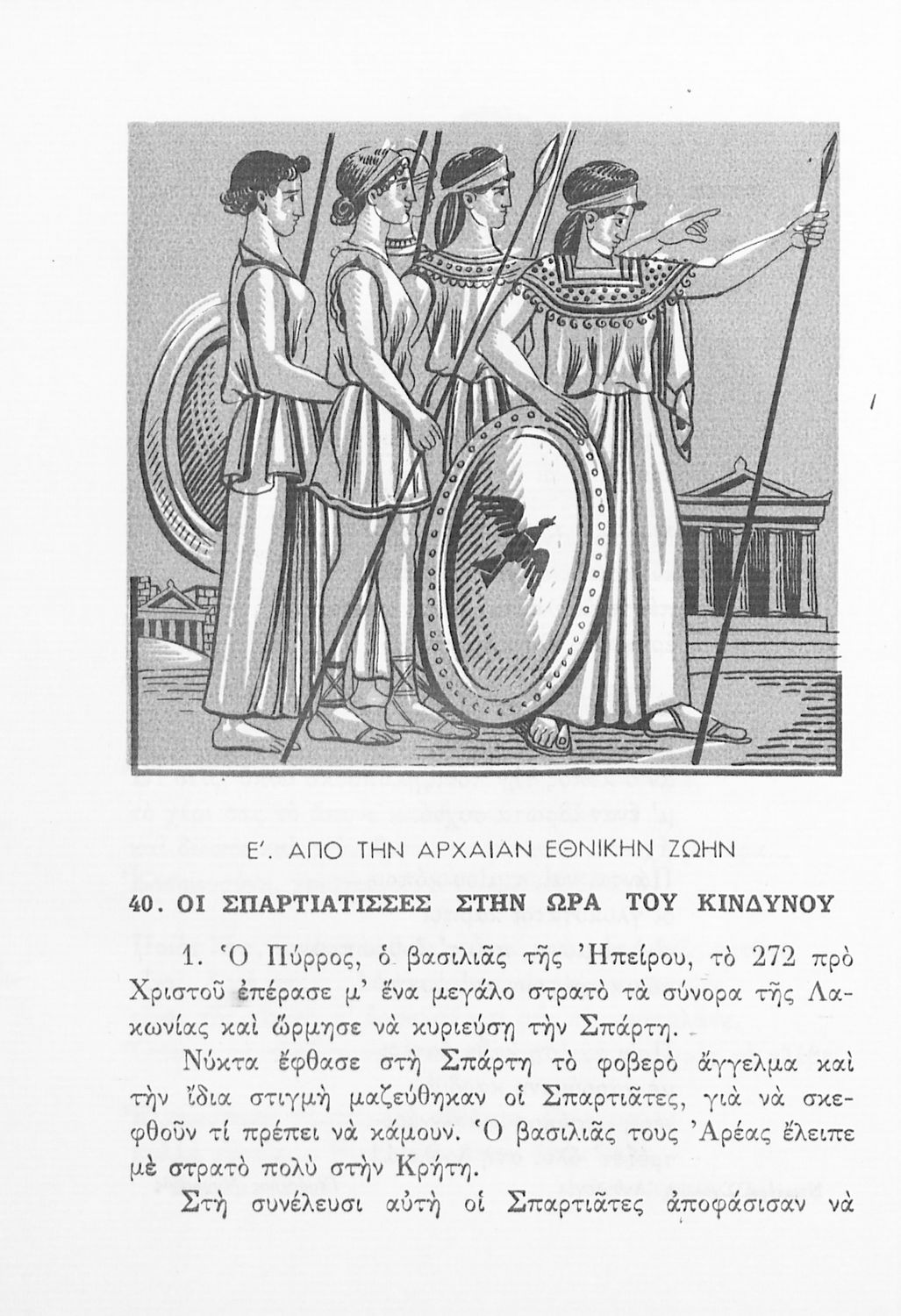 Αναγνωστικό Δ΄ Δημοτικού που περιέχει πεζά και ποιήματα εμπνευσμένα από την ελληνική ιστορία και μυθολογία, την κοινωνική ζωή και την ελληνική φύση.
