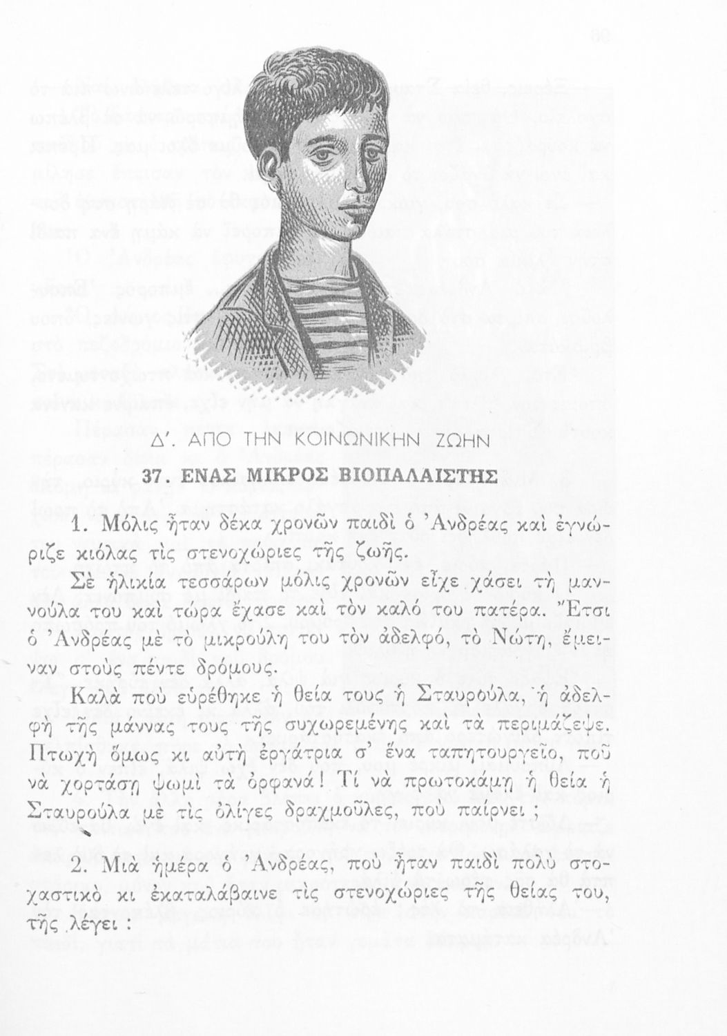 Αναγνωστικό Δ΄ Δημοτικού που περιέχει πεζά και ποιήματα με περιεχόμενο διδακτικό και ηθικοπλαστικό εμπνευσμένα από την ελληνική ιστορία και μυθολογία, και την αγροτική και κοινωνική ζωή.