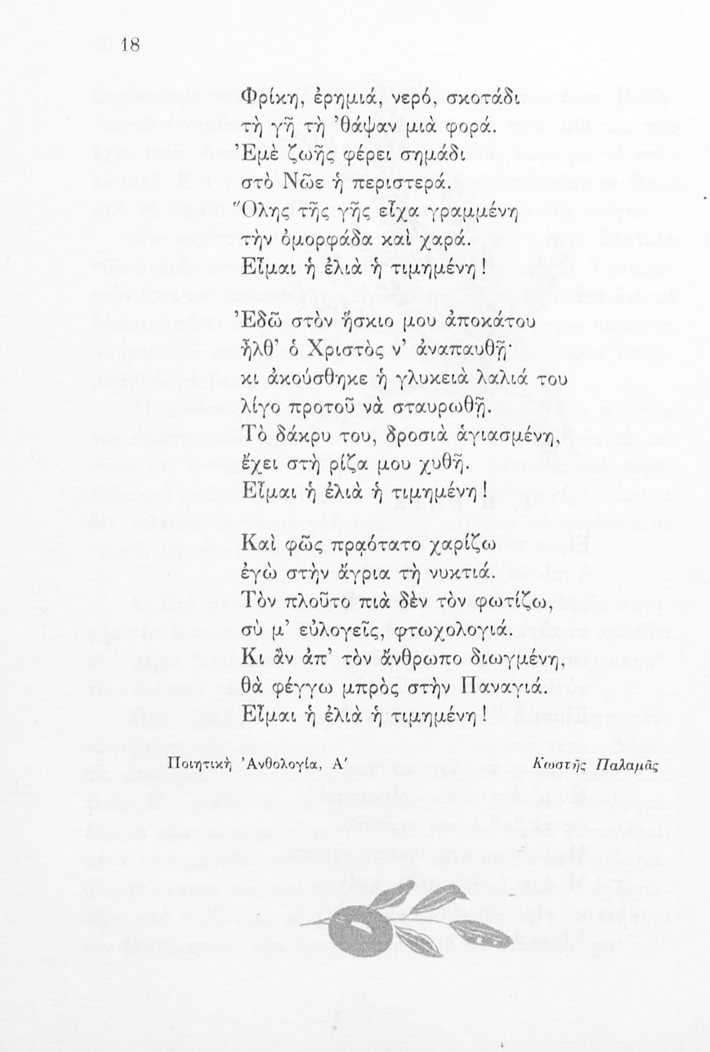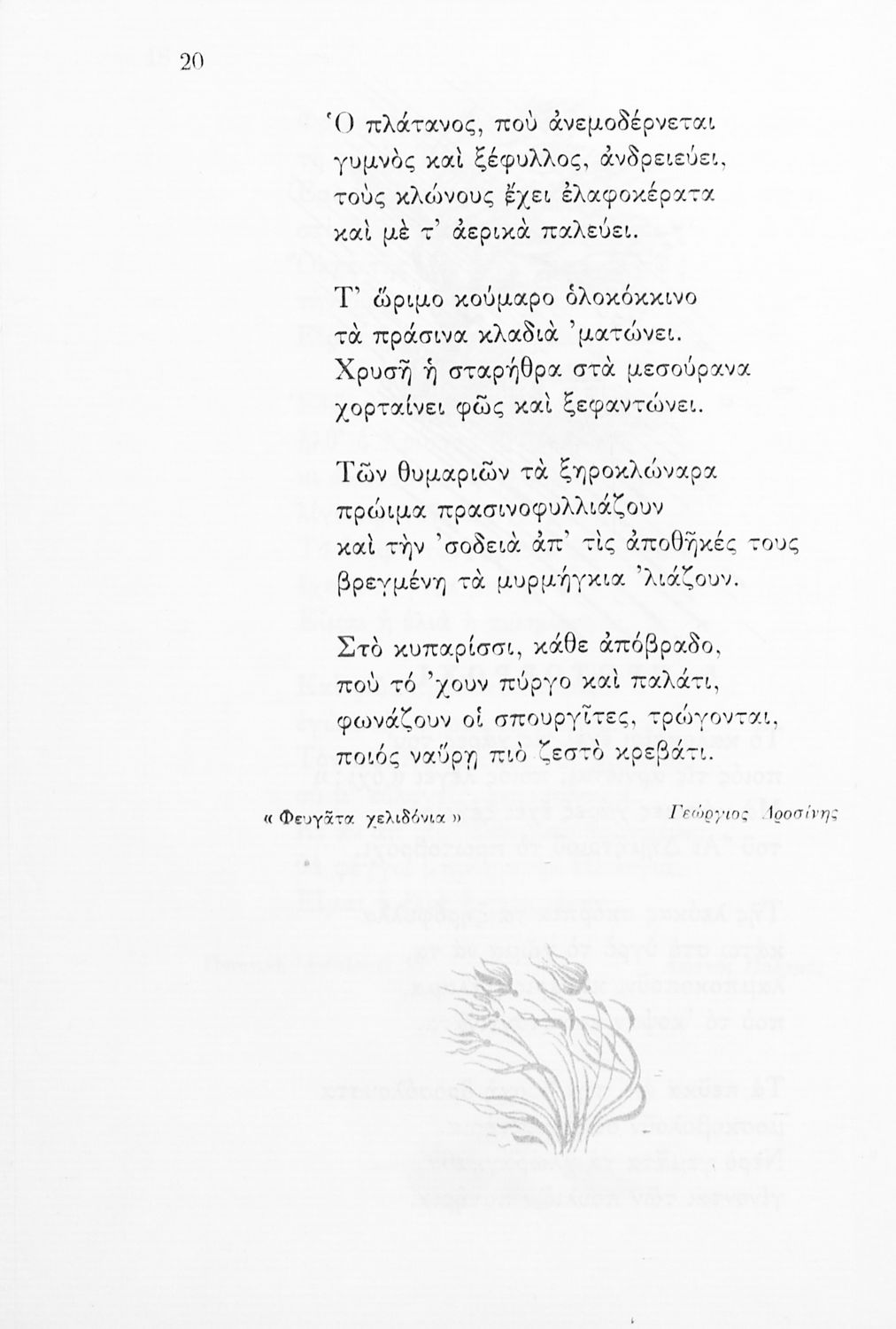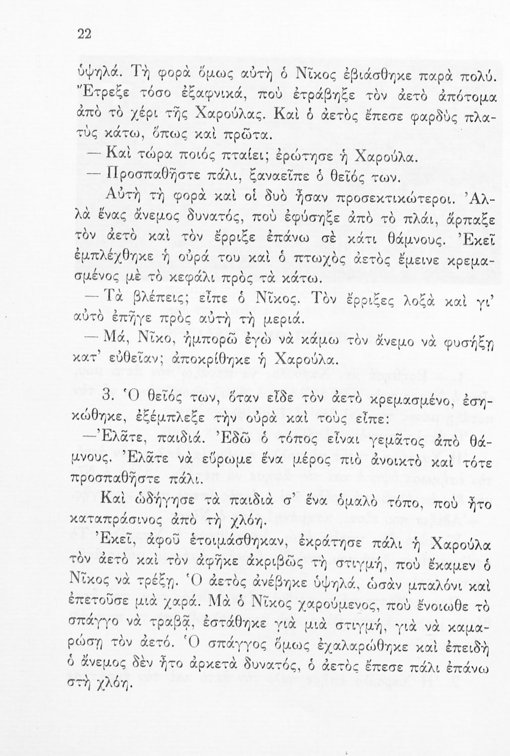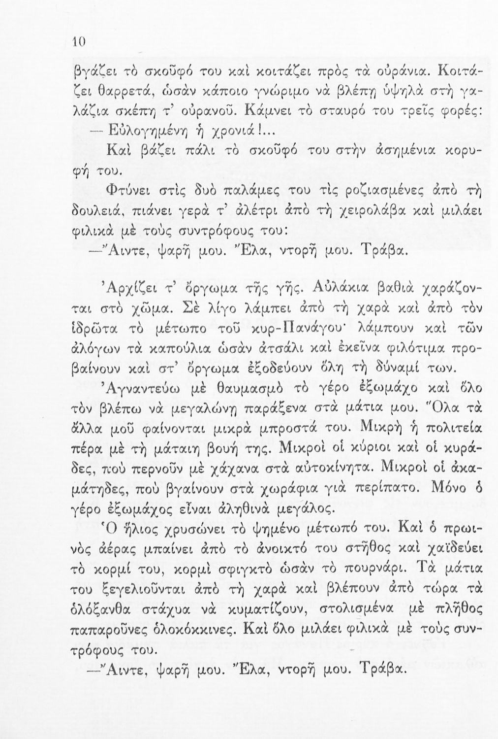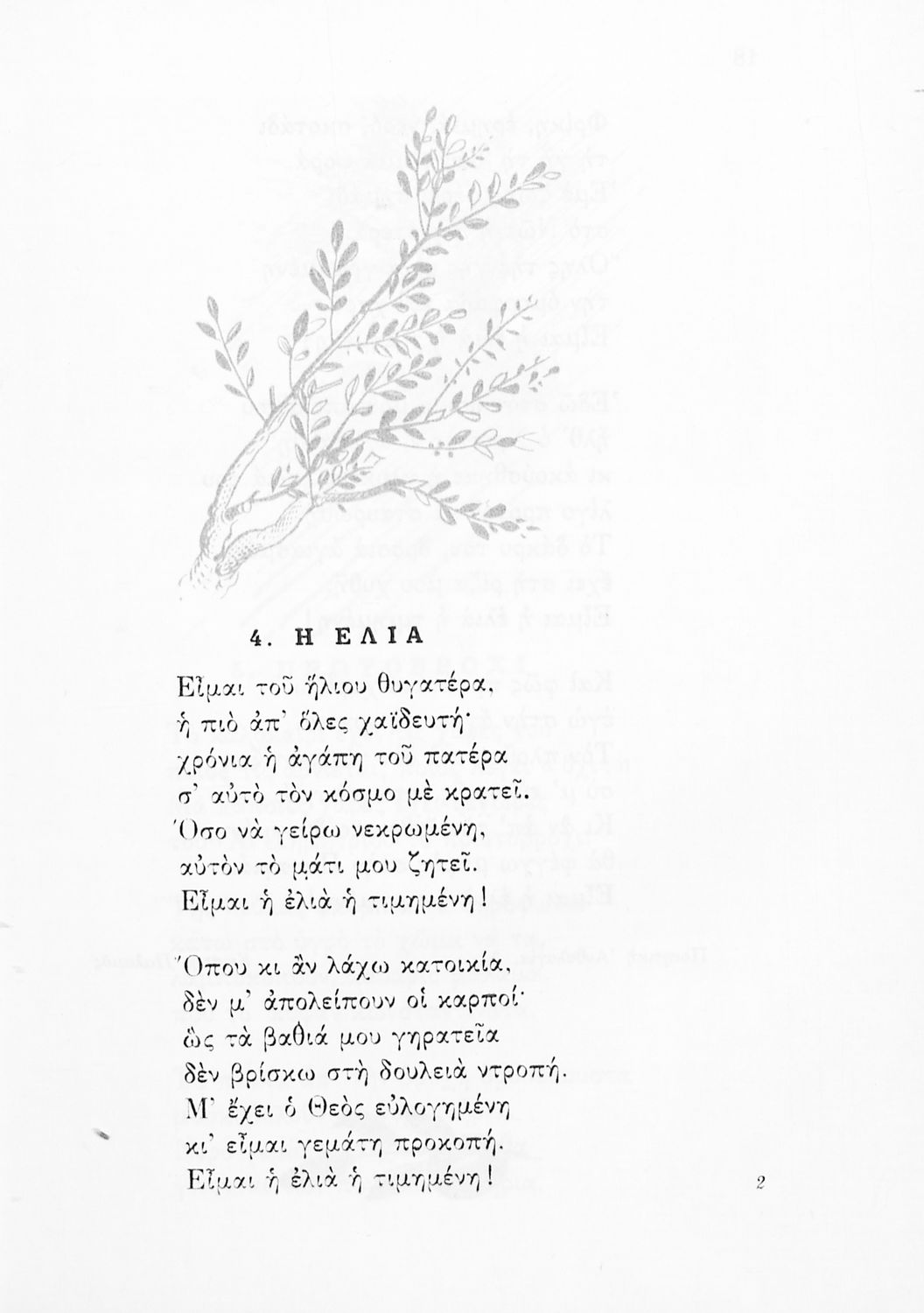 Αναγνωστικό Δ΄ Δημοτικού που περιέχει πεζά και ποιήματα με περιεχόμενο διδακτικό και ηθικοπλαστικό εμπνευσμένα από την ελληνική ιστορία και μυθολογία, και την αγροτική και κοινωνική ζωή.