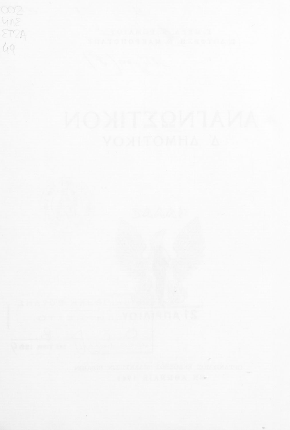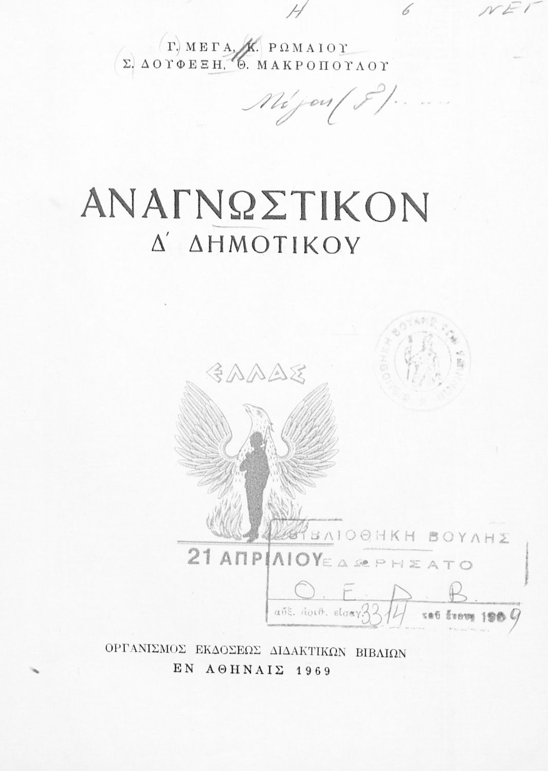 Εκδότης: Οργανισμός Εκδόσεως Διδακτικών Βιβλίων Έτος έκδοσης: 1969 Τόπος έκδοσης: Αθήνα Έκδοση: 8η Υπουργική απόφαση / Σύμβαση: 1805/19-5-1969, 1852/27-5-1969 Έτος έγκρισης: 1969 |
