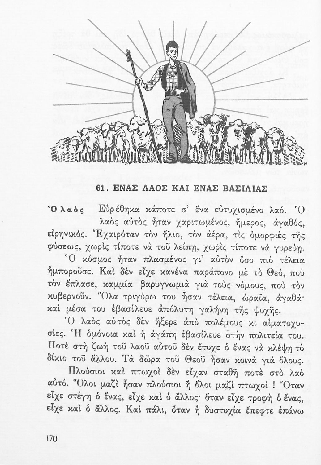 Αναγνωστικό Δ΄ Δημοτικού που περιέχει πεζά και ποιήματα εμπνευσμένα από την ελληνική ιστορία και μυθολογία, την κοινωνική ζωή και την ελληνική φύση.