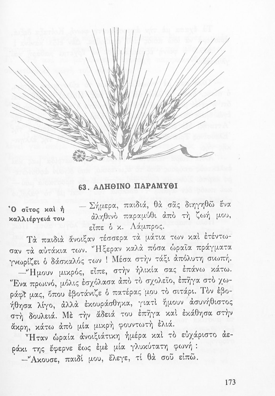 Αναγνωστικό Δ΄ Δημοτικού που περιέχει πεζά και ποιήματα με περιεχόμενο διδακτικό και ηθικοπλαστικό εμπνευσμένα από την ελληνική ιστορία και μυθολογία, και την αγροτική και κοινωνική ζωή.