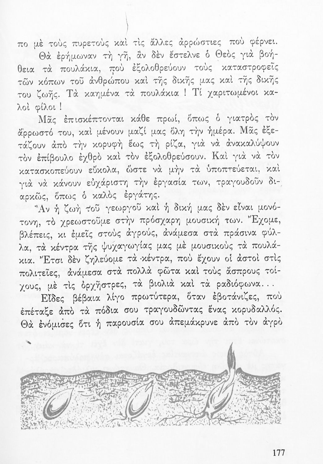 Αναγνωστικό Δ΄ Δημοτικού που περιέχει πεζά και ποιήματα με περιεχόμενο διδακτικό και ηθικοπλαστικό εμπνευσμένα από την αγροτική ζωή και κοινωνική ζωή, την ελληνική φύση και παράδοση, και τις ασχολίες των ...