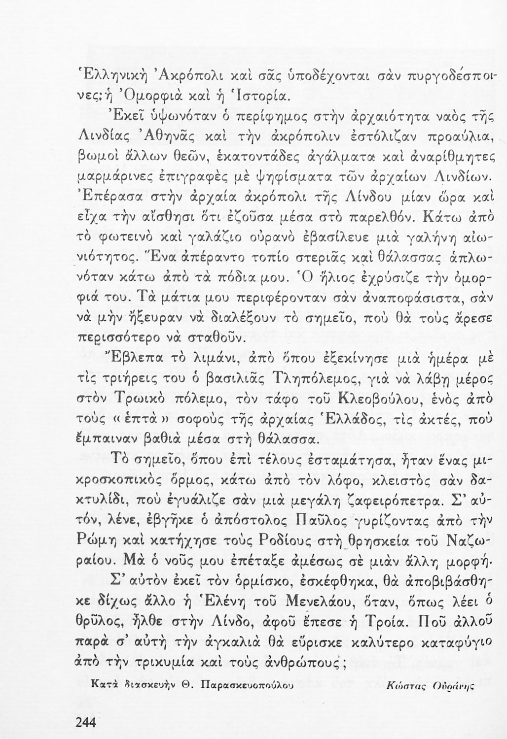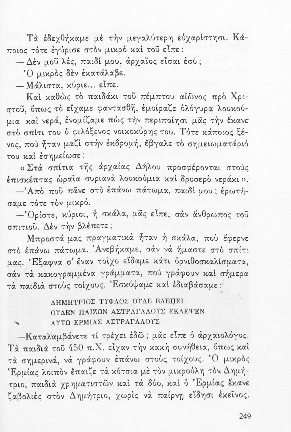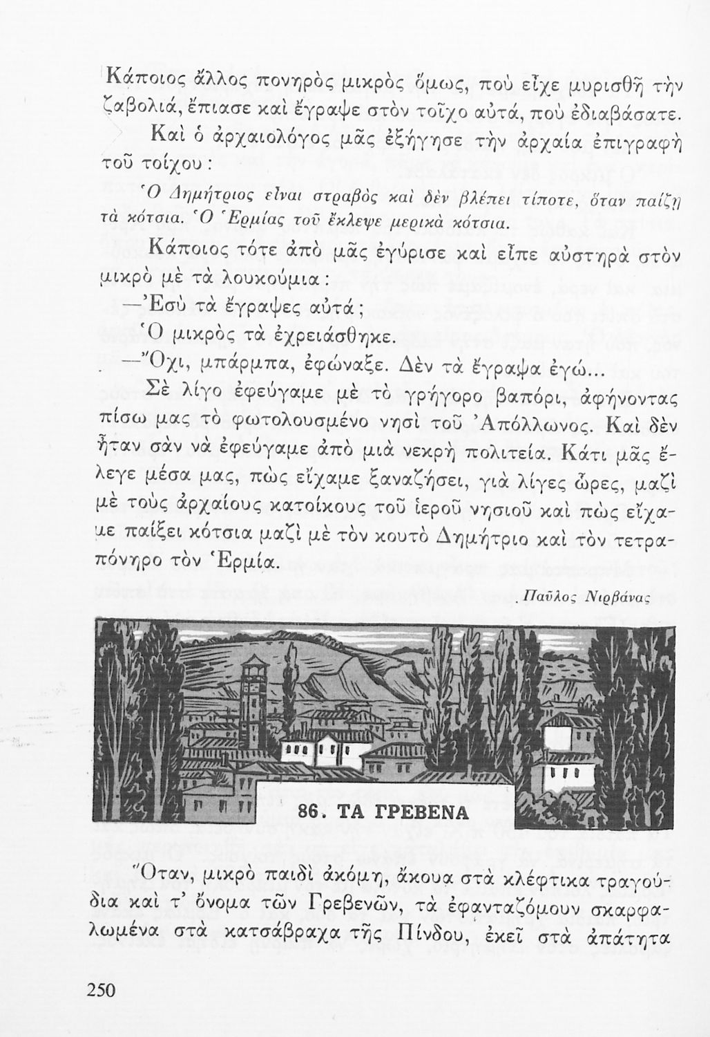 Αναγνωστικό Δ΄ Δημοτικού που περιέχει πεζά και ποιήματα εμπνευσμένα από την ελληνική ιστορία και μυθολογία, την κοινωνική ζωή και την ελληνική φύση.