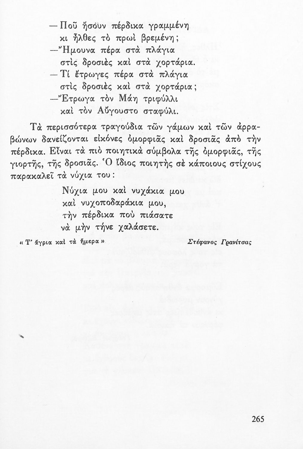 Αναγνωστικό για την Δ΄ τάξη του Δημοτικού. Περιλαμβάνει ένα κείμενο στο οποίο παρεμβάλλονται ποιήματα δημοτικά και Ελλήνων ποιητών.