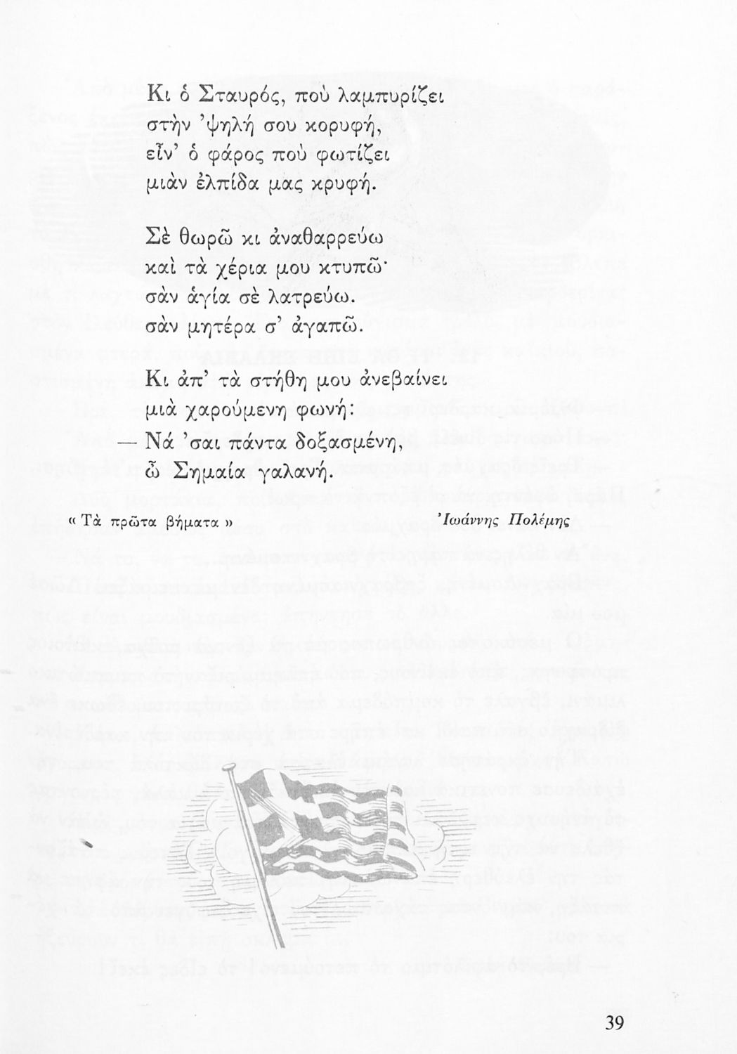 Αναγνωστικό για την Δ΄ τάξη του Δημοτικού. Περιλαμβάνει ένα κείμενο στο οποίο παρεμβάλλονται ποιήματα δημοτικά και Ελλήνων ποιητών.