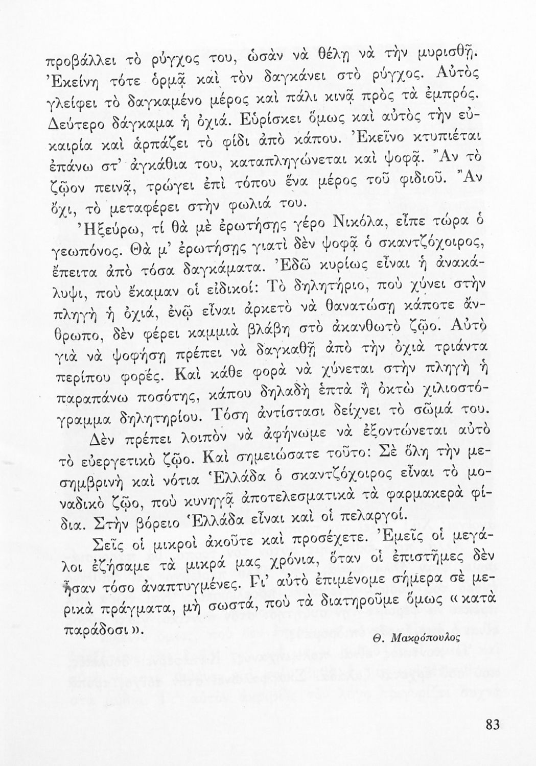 Αναγνωστικό Δ΄ Δημοτικού που περιέχει πεζά και ποιήματα με περιεχόμενο διδακτικό και ηθικοπλαστικό εμπνευσμένα από την ελληνική ιστορία και μυθολογία, και την αγροτική και κοινωνική ζωή.