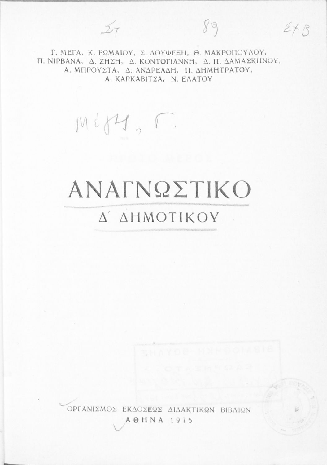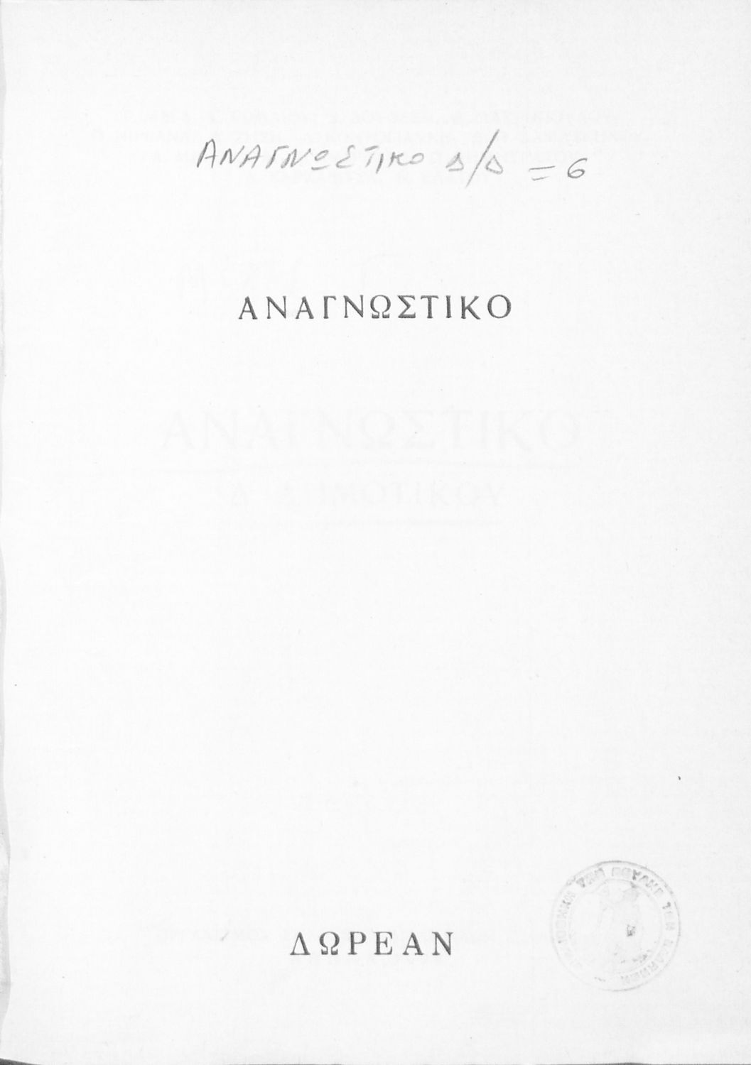 Τίτλος: Αναγνωστικόν Δ΄ Δημοτικού