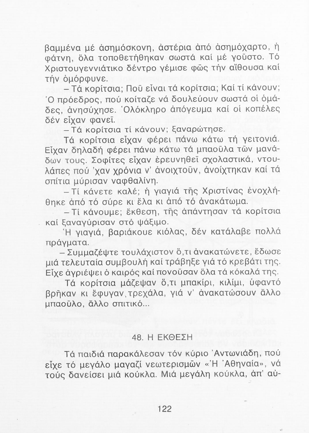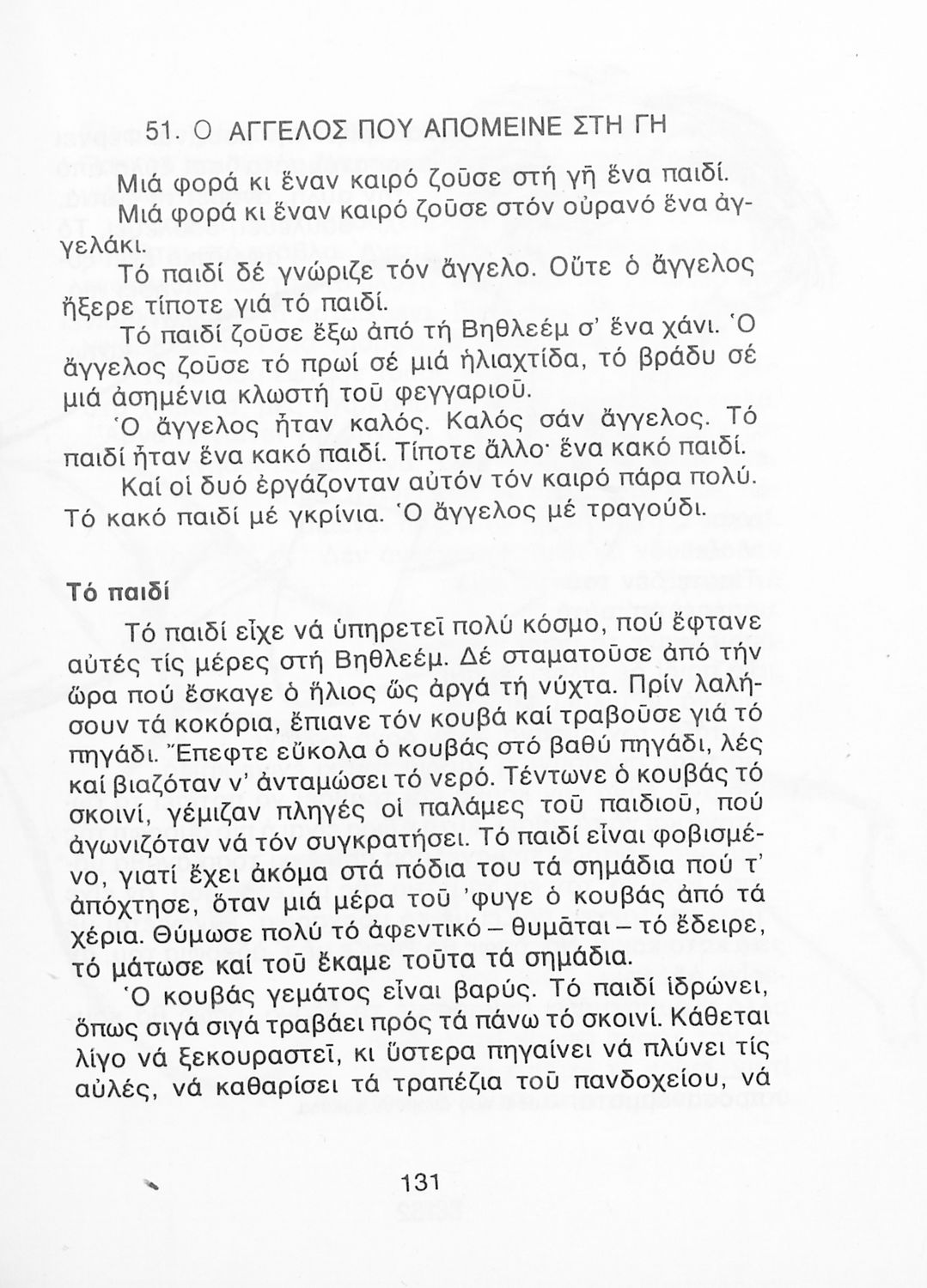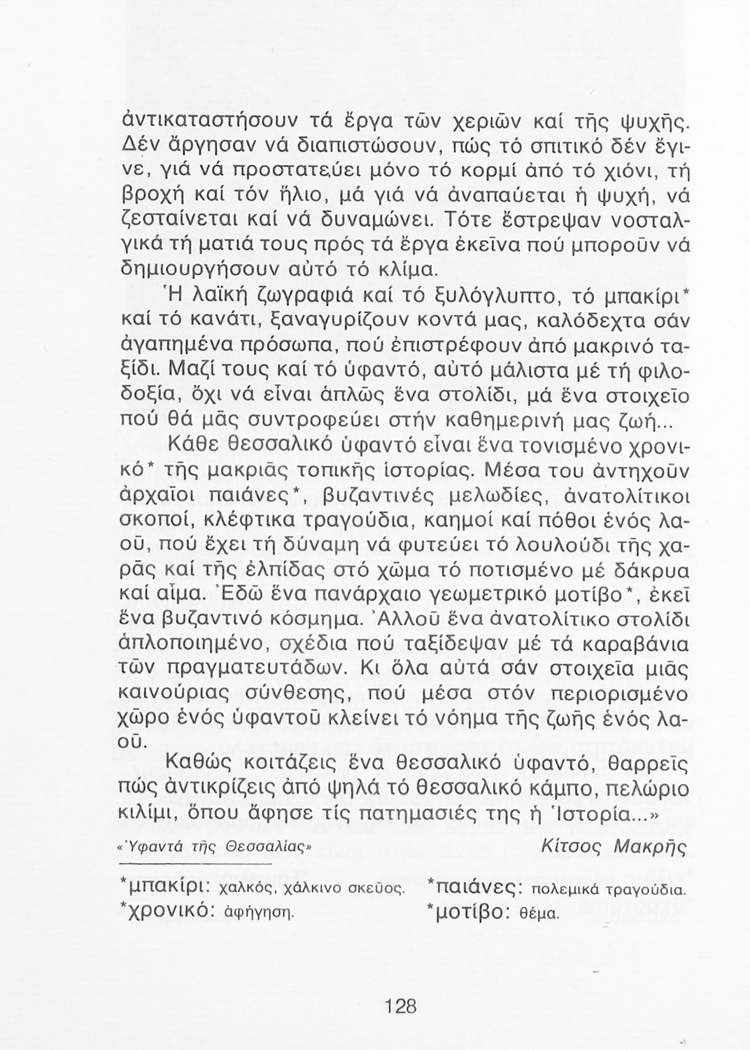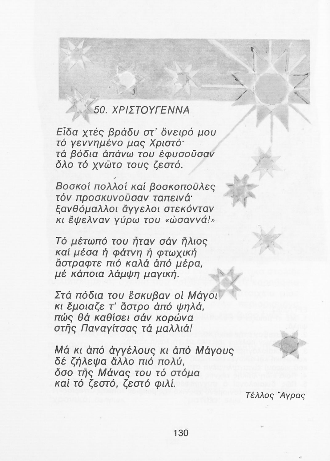 Αναγνωστικό Δ΄ Δημοτικού που περιέχει πεζά και ποιήματα με περιεχόμενο διδακτικό και ηθικοπλαστικό εμπνευσμένα από την αγροτική ζωή και κοινωνική ζωή, την ελληνική φύση και παράδοση, και τις ασχολίες των ανθρώπων. Περιλαμβάνει και σύντομα βιογραφικά σημειώματα των συγγραφέων.