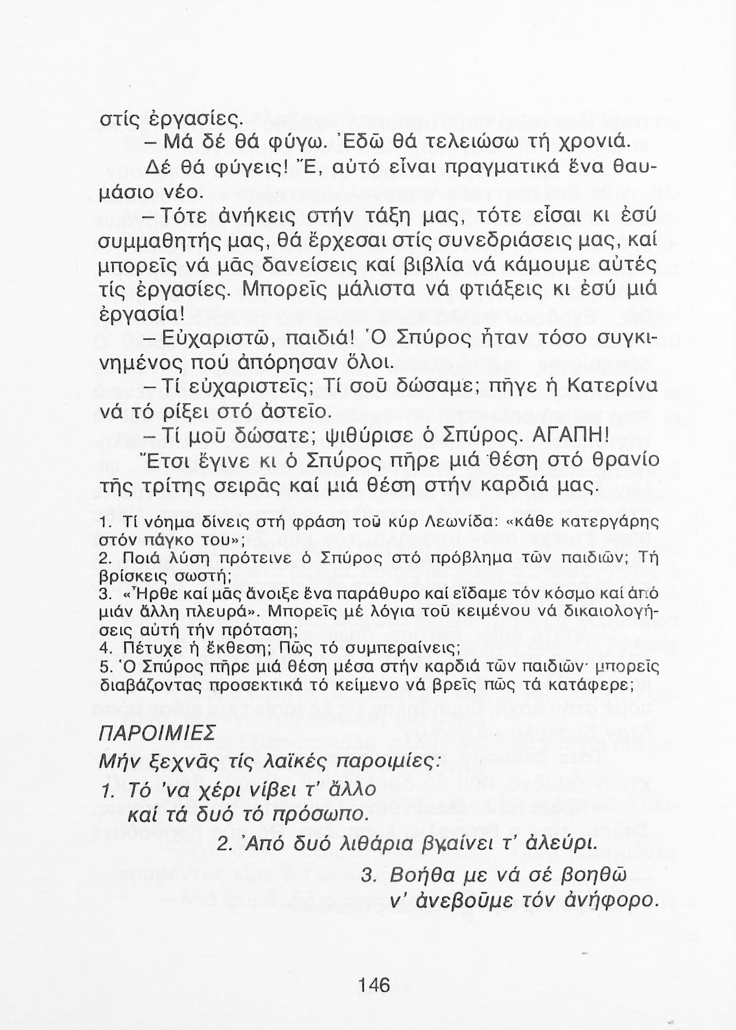 Βαθμίδα εκπαίδευσης: Πρωτοβάθμια Τάξη: Δ' Δημοτικού Μάθημα: Νέα Ελληνικά Γλώσσα: Δημοτική Παρουσίαση περιεχομένου: Αναγνωστικό Δ΄ Δημοτικού που περιέχει πεζά και ποιήματα με περιεχόμενο διδακτικό και ηθικοπλαστικό εμπνευσμένα από την αγροτική ζωή και κοινωνική ζωή, την ελληνική φύση και παράδοση, και τις ασχολίες των ανθρώπων. Περιλαμβάνει και σύντομα βιογραφικά σημειώματα των συγγραφέων. |