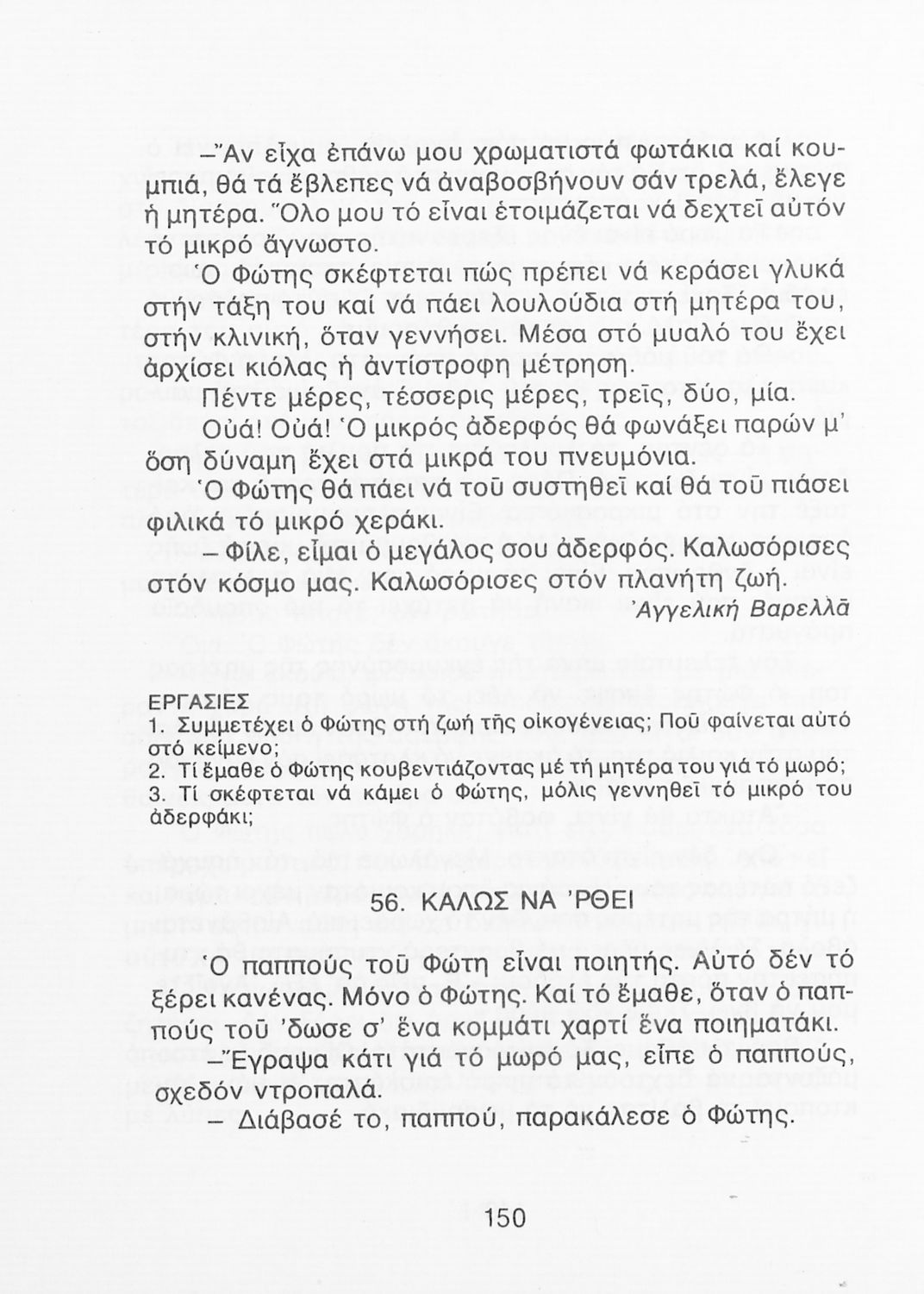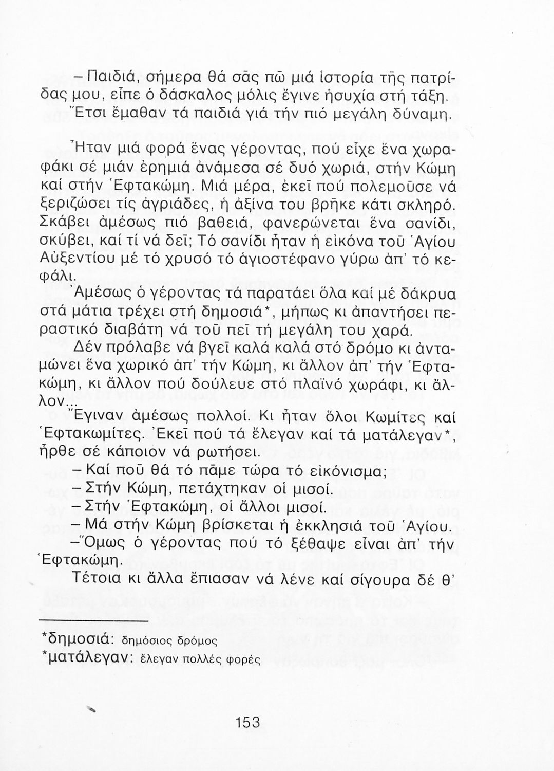 Αναγνωστικό Δ΄ Δημοτικού που περιέχει πεζά και ποιήματα με περιεχόμενο διδακτικό και ηθικοπλαστικό εμπνευσμένα από την αγροτική ζωή και κοινωνική ζωή, την ελληνική φύση και παράδοση, και τις ασχολίες των ανθρώπων. Περιλαμβάνει και σύντομα βιογραφικά σημειώματα των συγγραφέων.