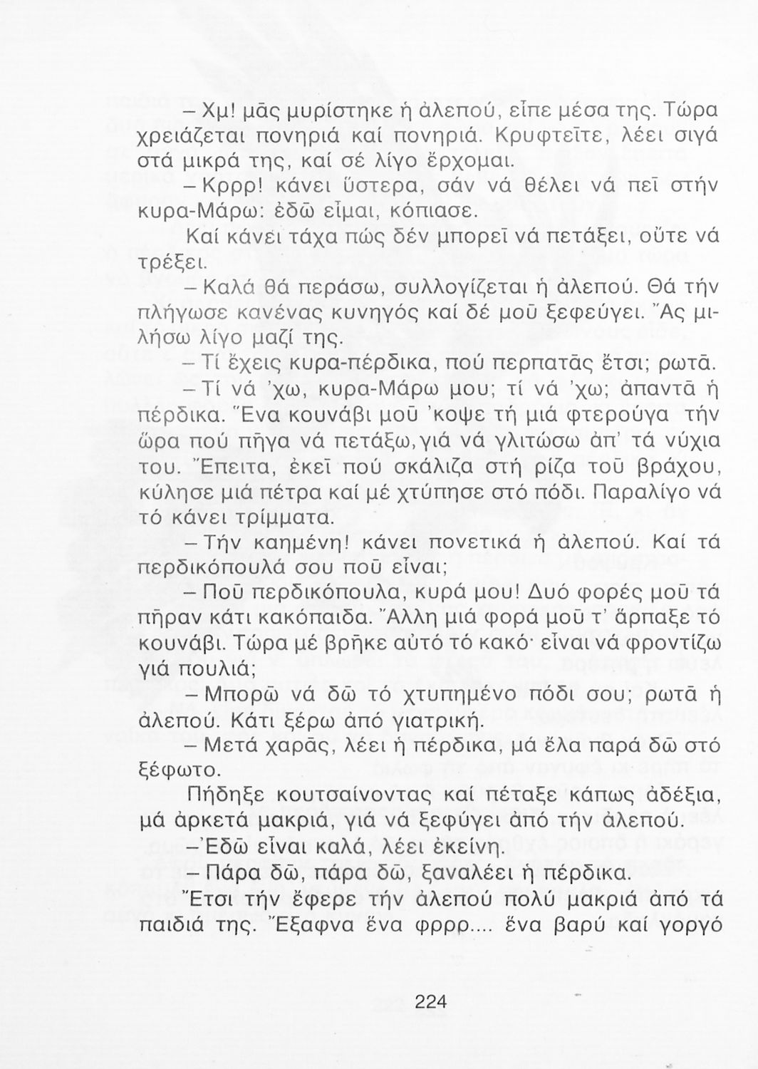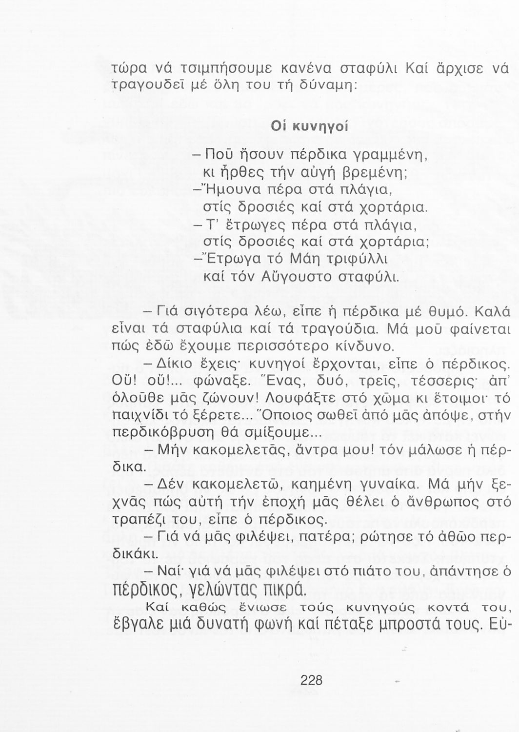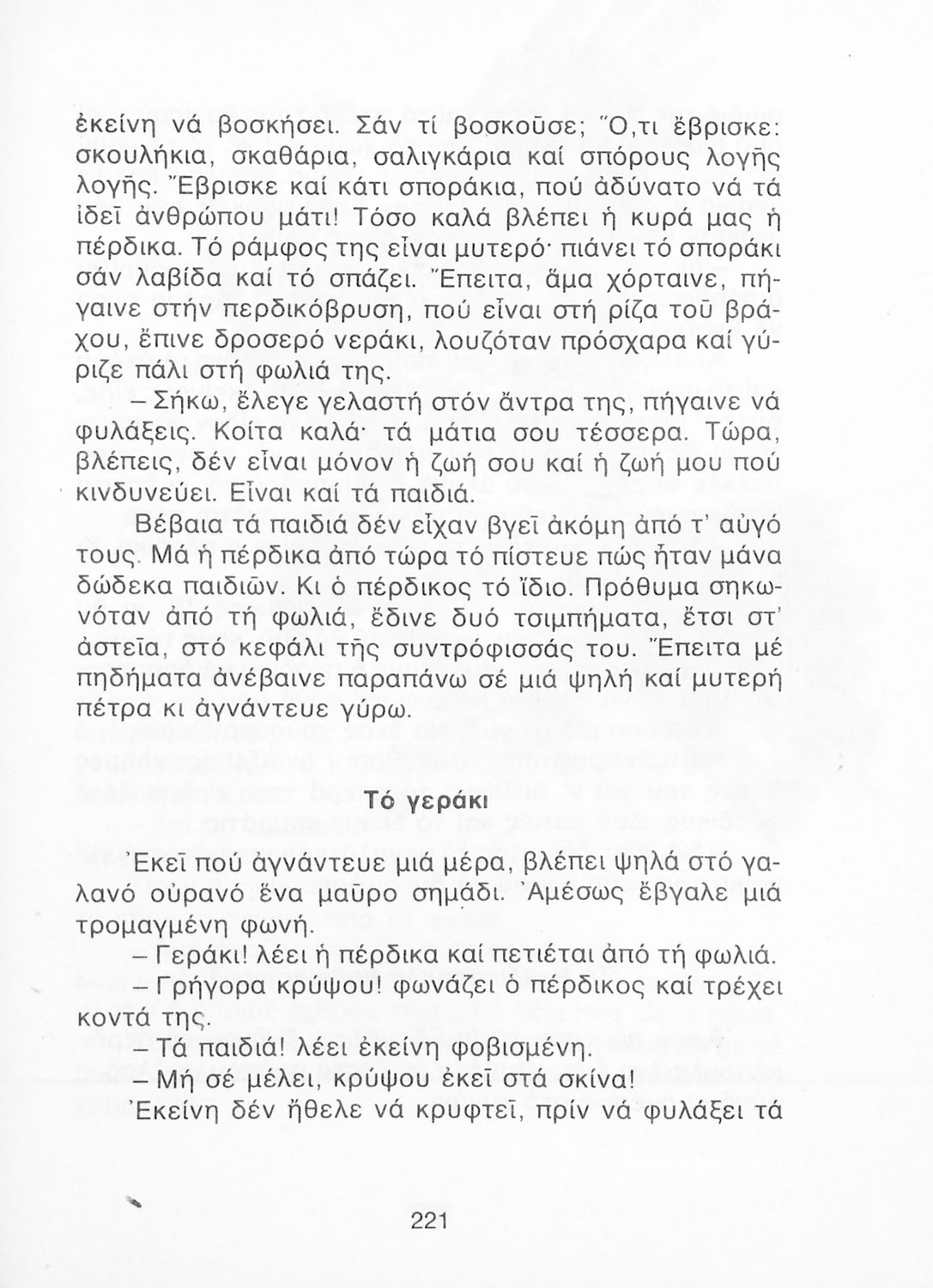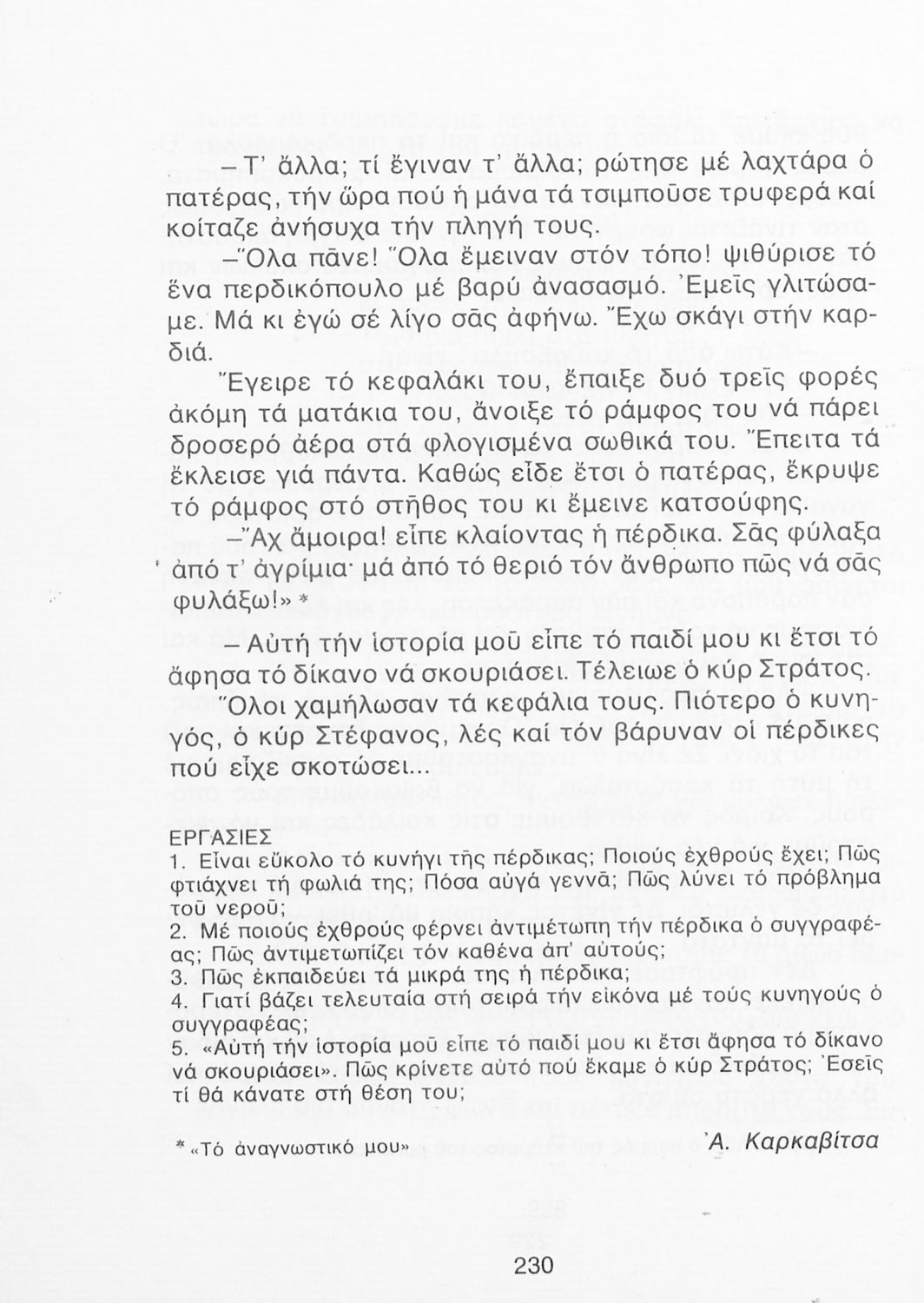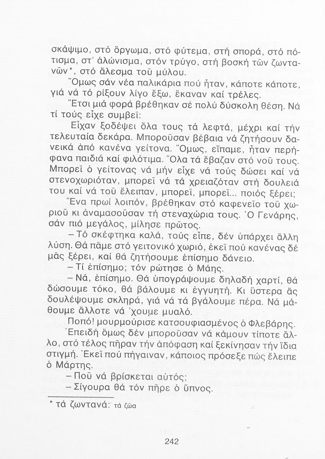 Αναγνωστικό Δ΄ Δημοτικού που περιέχει πεζά και ποιήματα με περιεχόμενο διδακτικό και ηθικοπλαστικό εμπνευσμένα από την αγροτική ζωή και κοινωνική ζωή, την ελληνική φύση και παράδοση, και τις ασχολίες των ανθρώπων. Περιλαμβάνει και σύντομα βιογραφικά σημειώματα των συγγραφέων.