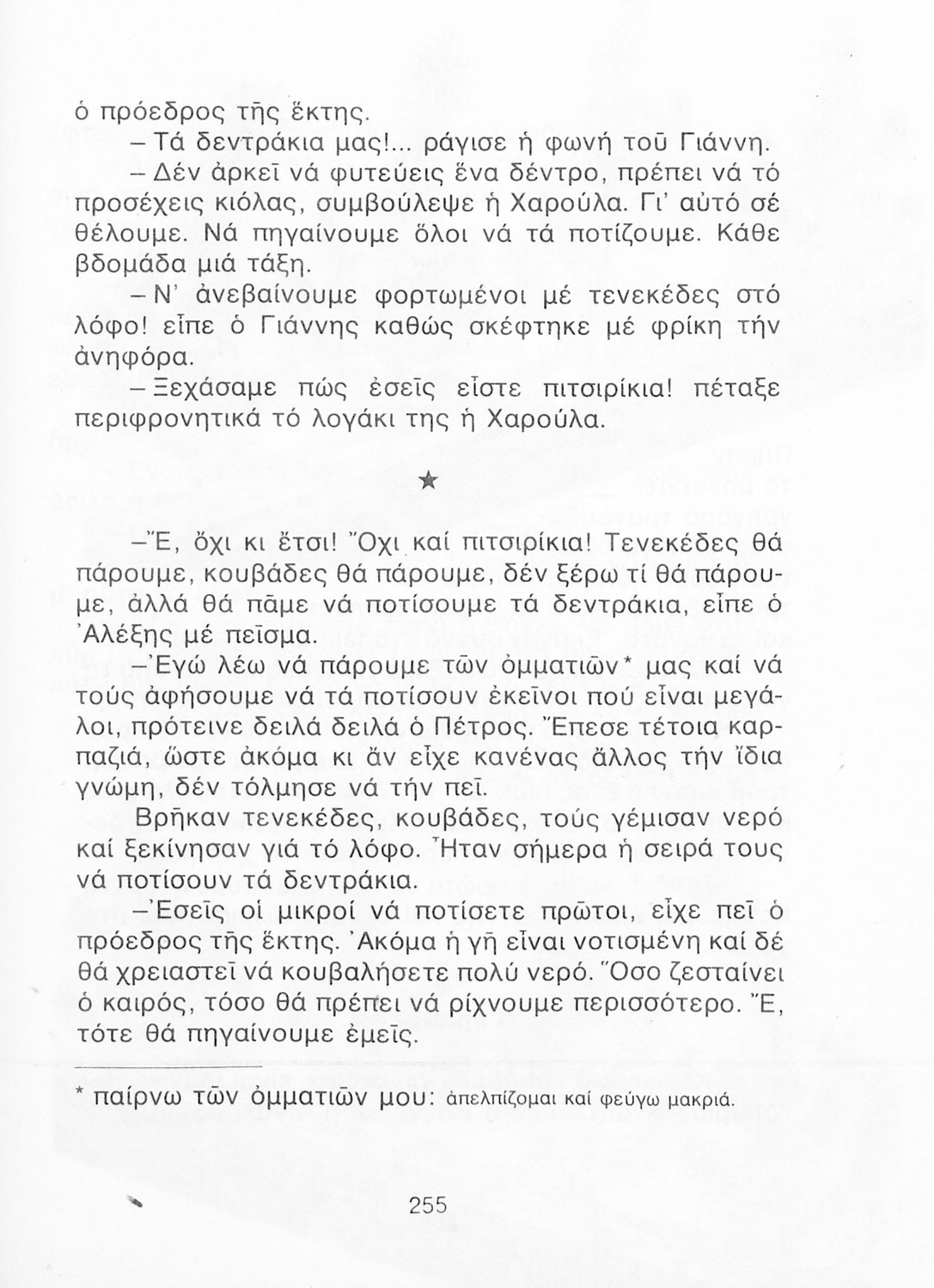 Αναγνωστικό Δ΄ Δημοτικού που περιέχει πεζά και ποιήματα με περιεχόμενο διδακτικό και ηθικοπλαστικό εμπνευσμένα από την αγροτική ζωή και κοινωνική ζωή, την ελληνική φύση και παράδοση, και τις ασχολίες των ανθρώπων. Περιλαμβάνει και σύντομα βιογραφικά σημειώματα των συγγραφέων.