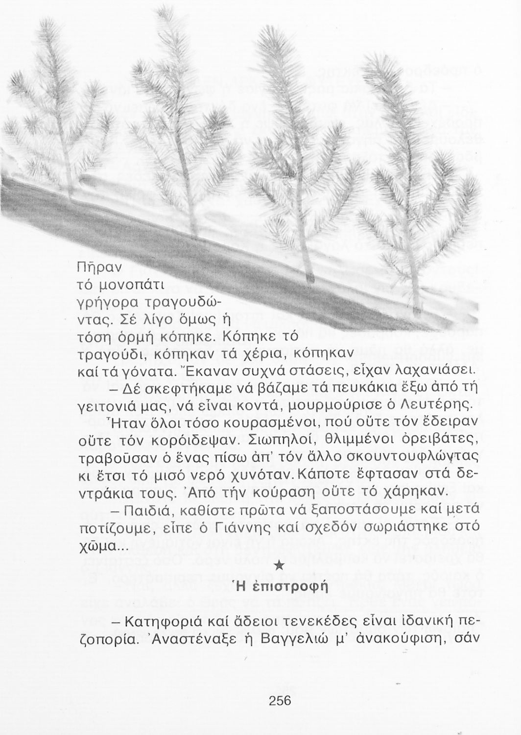 Αναγνωστικό για την Δ΄ τάξη του Δημοτικού. Περιλαμβάνει ένα κείμενο στο οποίο παρεμβάλλονται ποιήματα δημοτικά και Ελλήνων ποιητών.