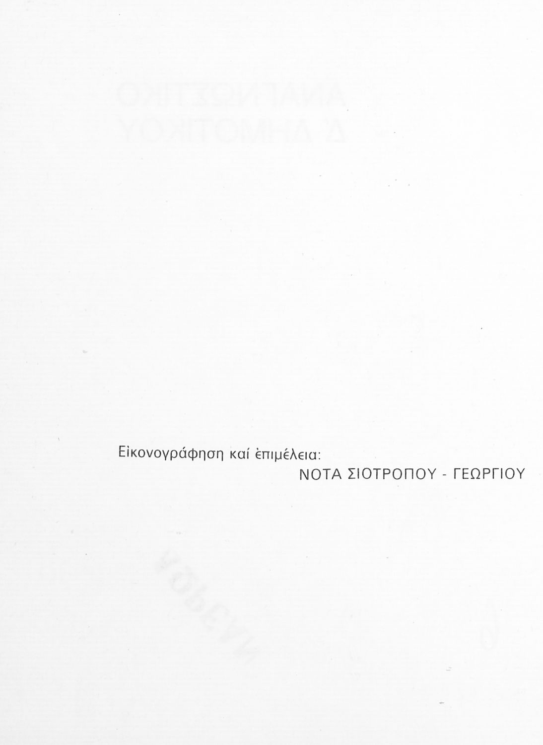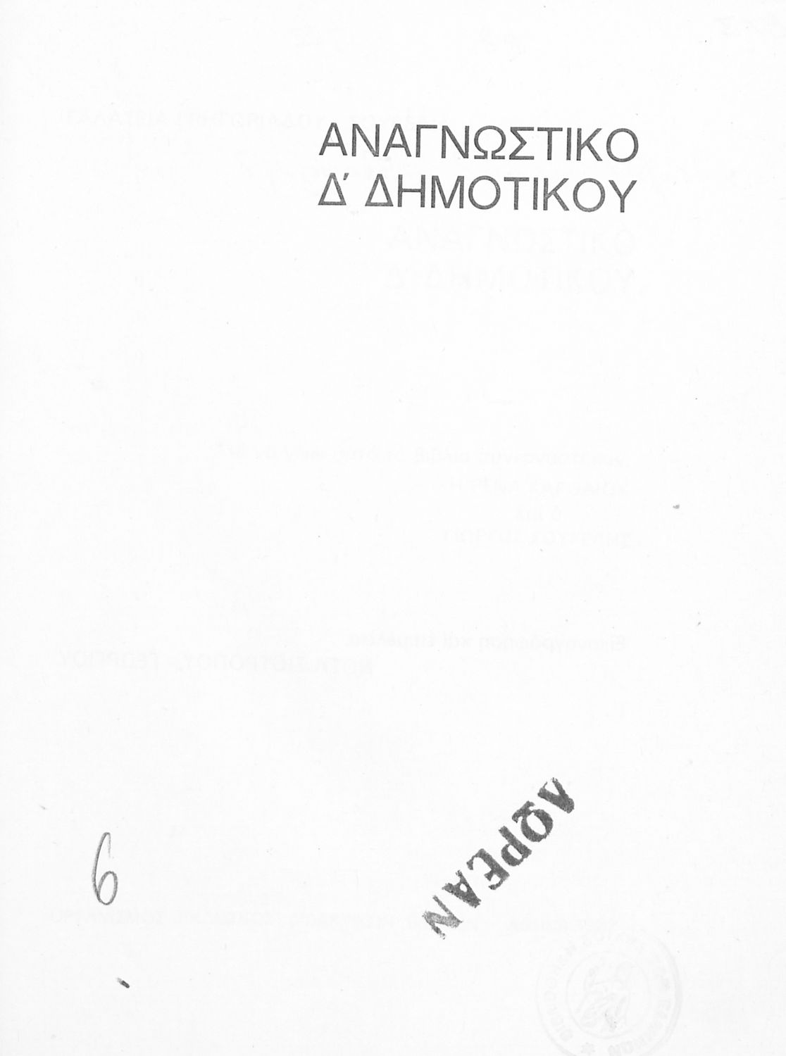 Βαθμίδα εκπαίδευσης: Πρωτοβάθμια Τάξη: Δ' Δημοτικού Μάθημα: Νέα Ελληνικά Γλώσσα: Δημοτική Παρουσίαση περιεχομένου: Αναγνωστικό Δ΄ Δημοτικού που περιέχει πεζά και ποιήματα με περιεχόμενο διδακτικό και ηθικοπλαστικό εμπνευσμένα από την αγροτική ζωή και κοινωνική ζωή, την ελληνική φύση και παράδοση, και τις ασχολίες των ανθρώπων. Περιλαμβάνει και σύντομα βιογραφικά σημειώματα των συγγραφέων. |