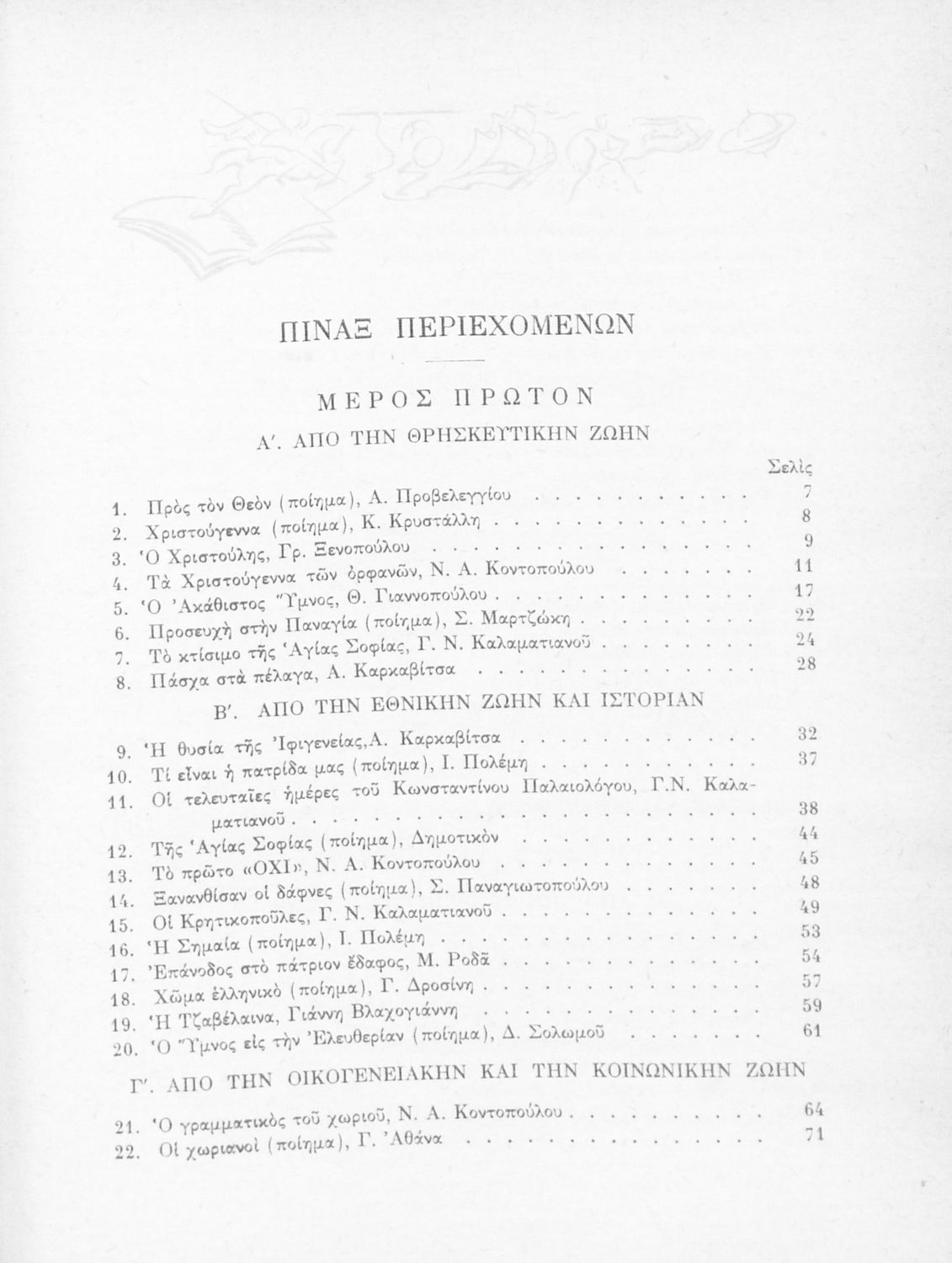 Αναγνωστικό Ε΄ Δημοτικού που περιέχει κείμενα εμπνευσμένα από την εθνική, κοινωνική και οικογενειακή ζωή και την ελληνική φύση, μυθολογία και ιστορία.