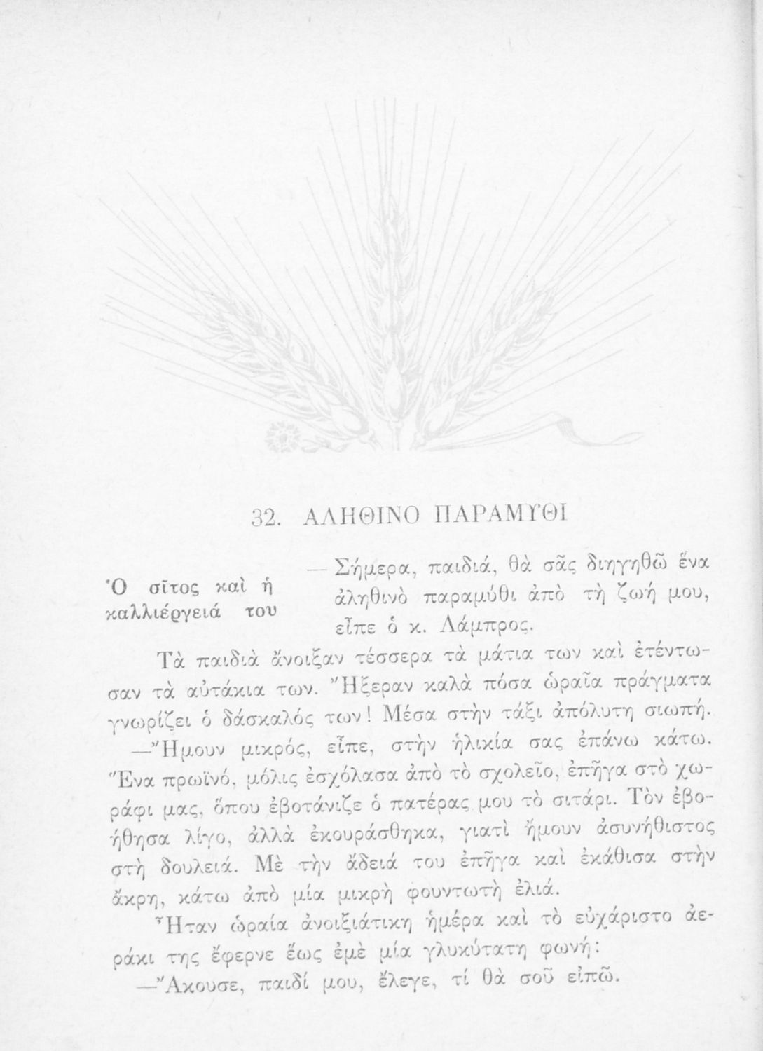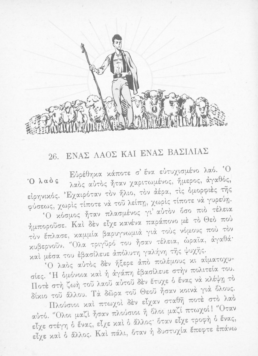 Αναγνωστικό Ε΄ Δημοτικού που περιέχει πεζά και ποιήματα εμπνευσμένα από τη θρησκευτική, εθνική, κοινωνική ζωή καθώς και από τις ασχολίες των Ελλήνων, την αρχαία και σύγχρονη ελληνική ιστορία και τον πολιτισμό.