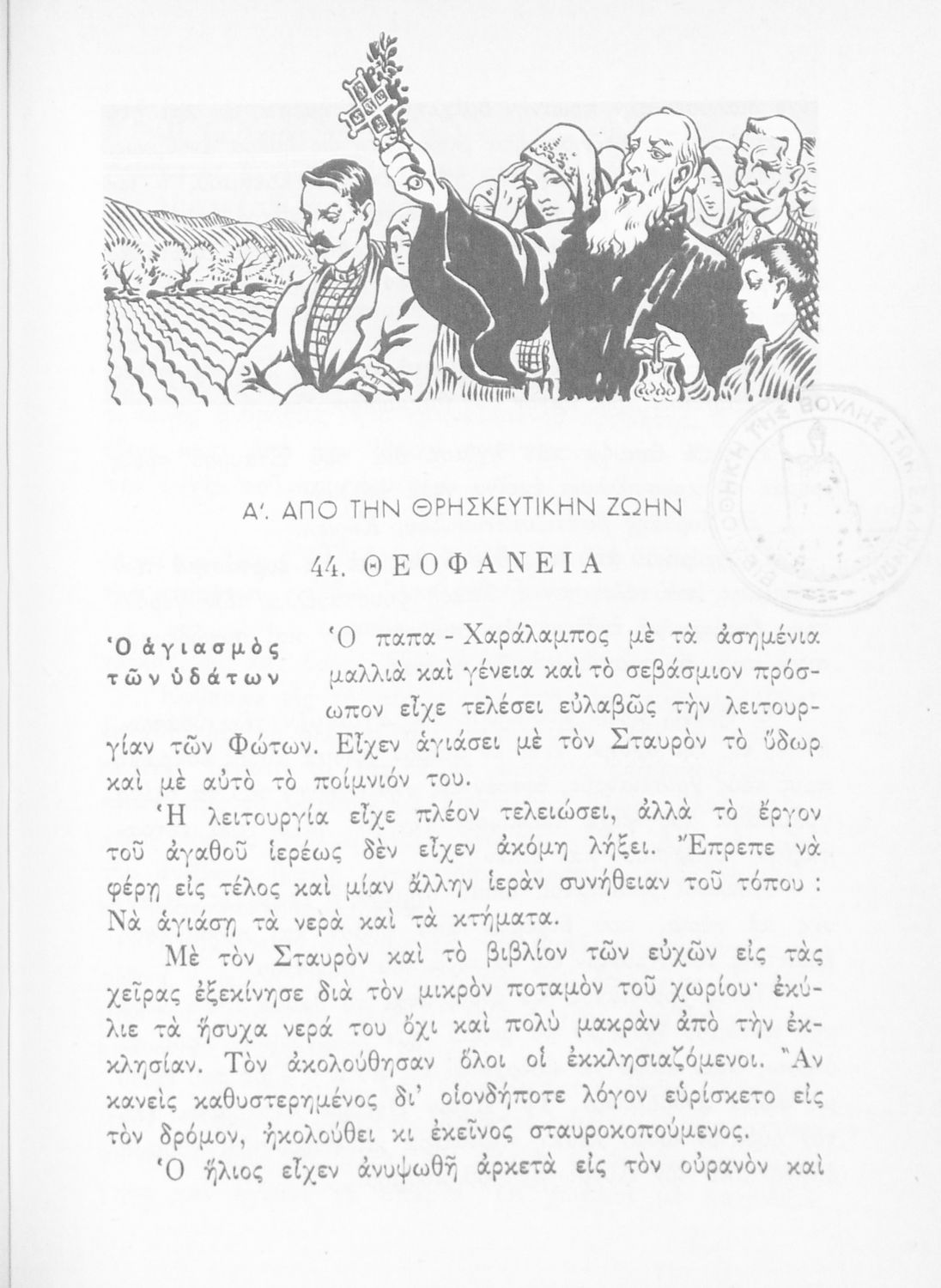Αναγνωστικό Ε΄ Δημοτικού που περιέχει κείμενα εμπνευσμένα από την εθνική, κοινωνική και οικογενειακή ζωή και την ελληνική φύση, μυθολογία και ιστορία. Φέρει το σύμβολο της δικτατορίας.