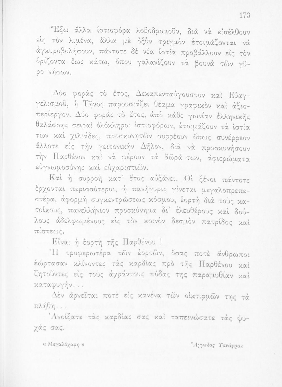 Αναγνωστικό Ε΄ Δημοτικού που περιέχει πεζά και ποιήματα εμπνευσμένα από τη θρησκευτική, εθνική, κοινωνική ζωή καθώς και από τις ασχολίες των Ελλήνων, την αρχαία και σύγχρονη ελληνική ιστορία και τον πολιτισμό.