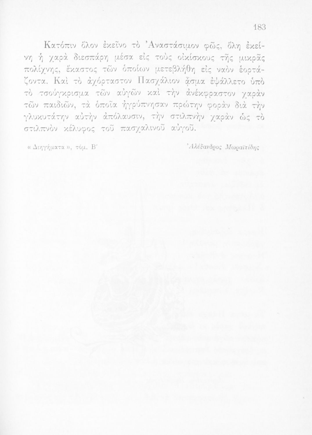 Αναγνωστικό Ε΄ Δημοτικού που περιέχει κείμενα εμπνευσμένα από την εθνική, κοινωνική και οικογενειακή ζωή και την ελληνική φύση, μυθολογία και ιστορία.