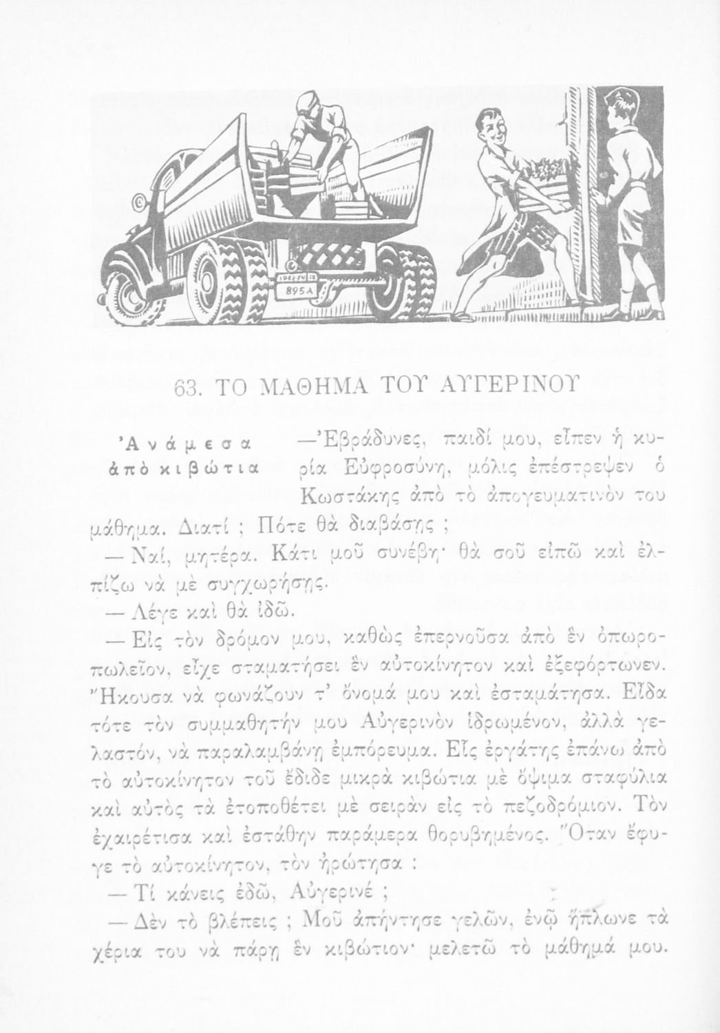 Αναγνωστικό Ε΄ Δημοτικού που περιέχει κείμενα εμπνευσμένα από την εθνική, κοινωνική και οικογενειακή ζωή και την ελληνική φύση, μυθολογία και ιστορία. Φέρει το σύμβολο της δικτατορίας.