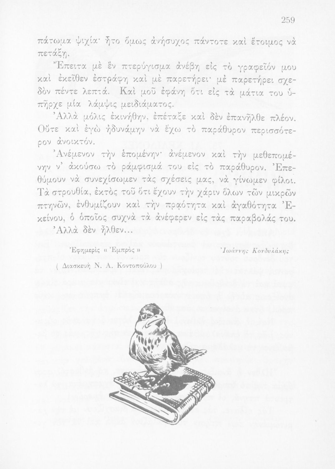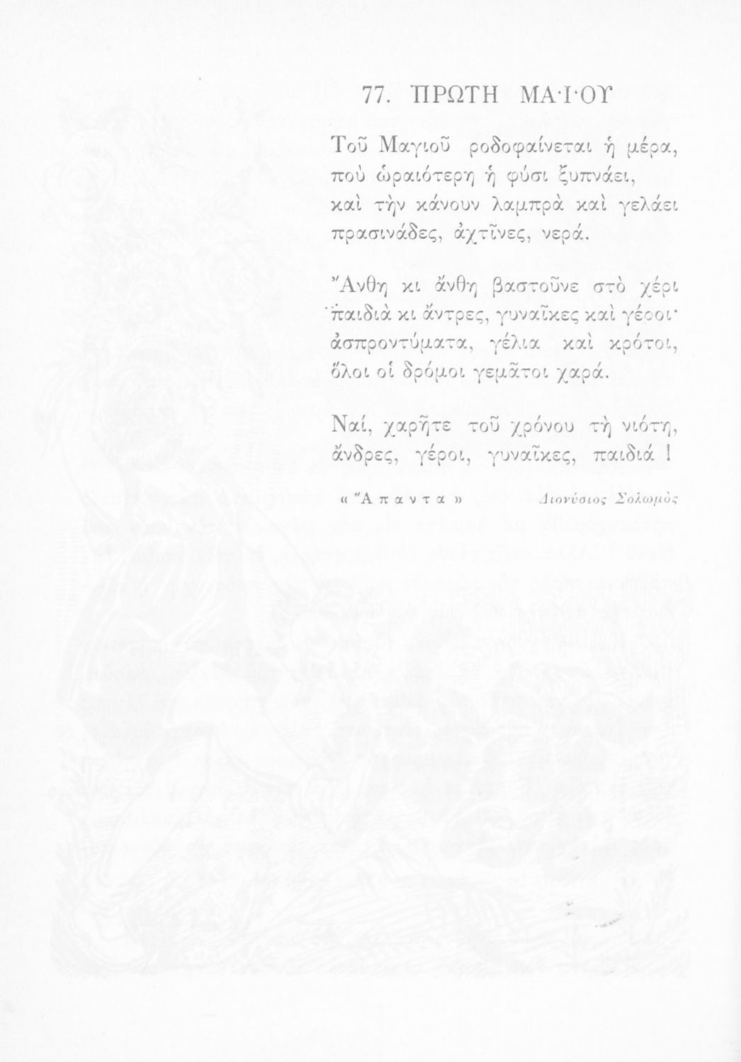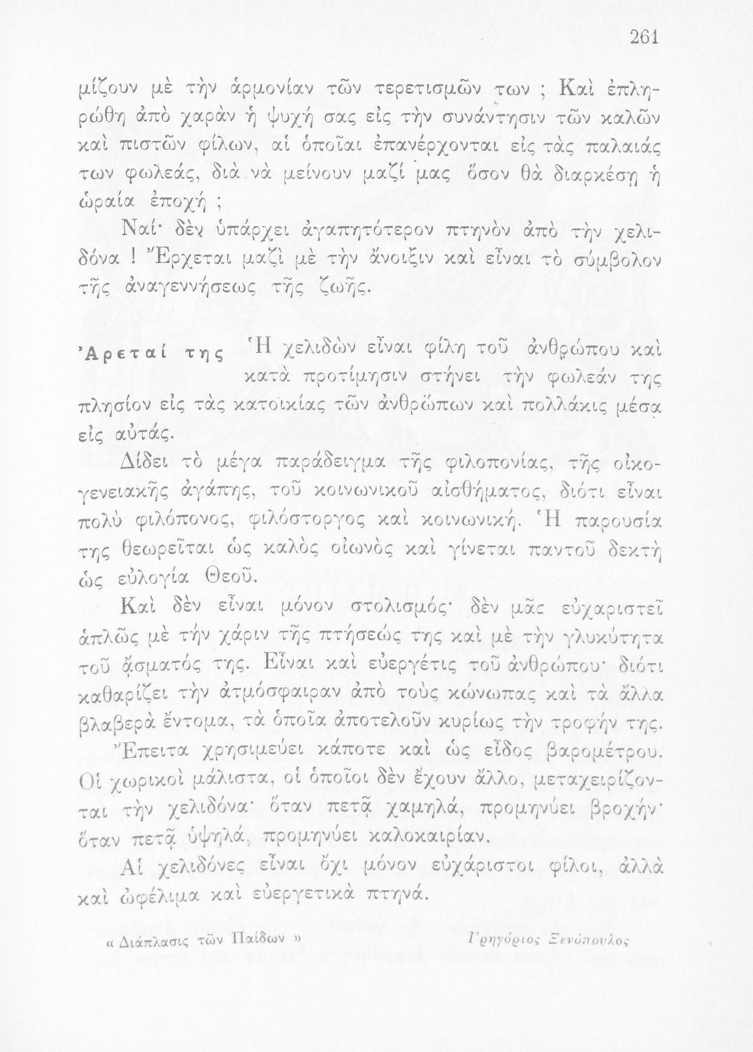 Αναγνωστικό Ε΄ Δημοτικού που περιέχει κείμενα εμπνευσμένα από την εθνική, κοινωνική και οικογενειακή ζωή και την ελληνική φύση, μυθολογία και ιστορία.