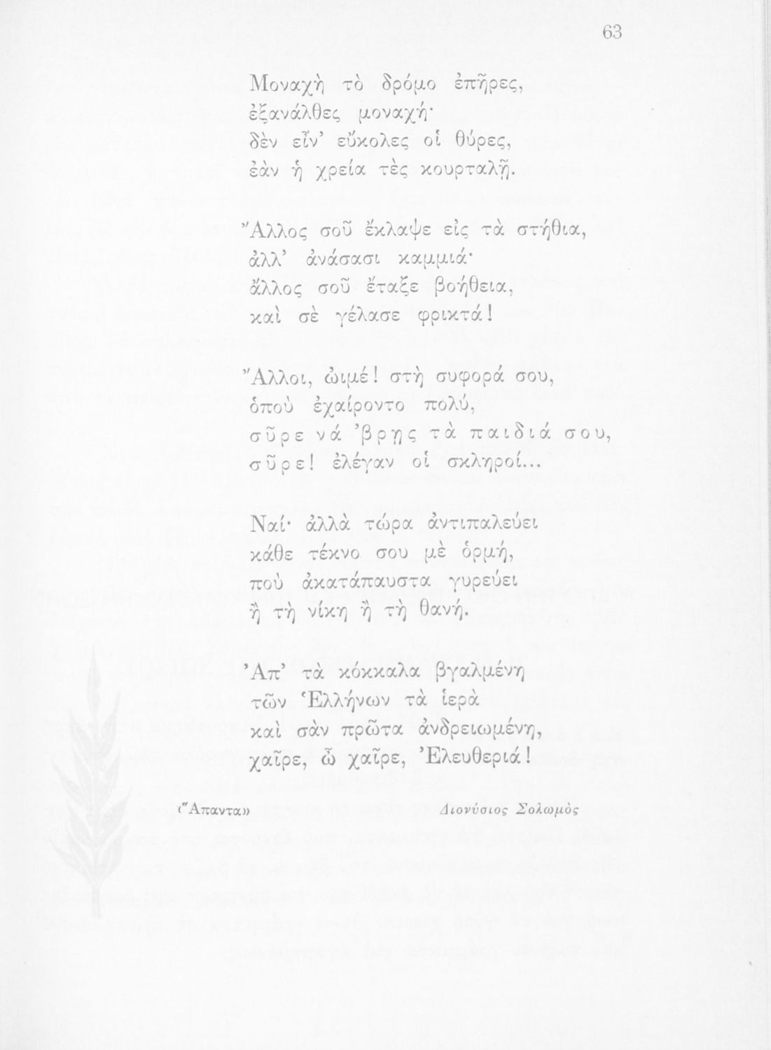 Αναγνωστικό Ε΄ Δημοτικού που περιέχει πεζά και ποιήματα εμπνευσμένα από τη θρησκευτική, εθνική, κοινωνική ζωή καθώς και από τις ασχολίες των Ελλήνων, την αρχαία και σύγχρονη ελληνική ιστορία και τον πολιτισμό.