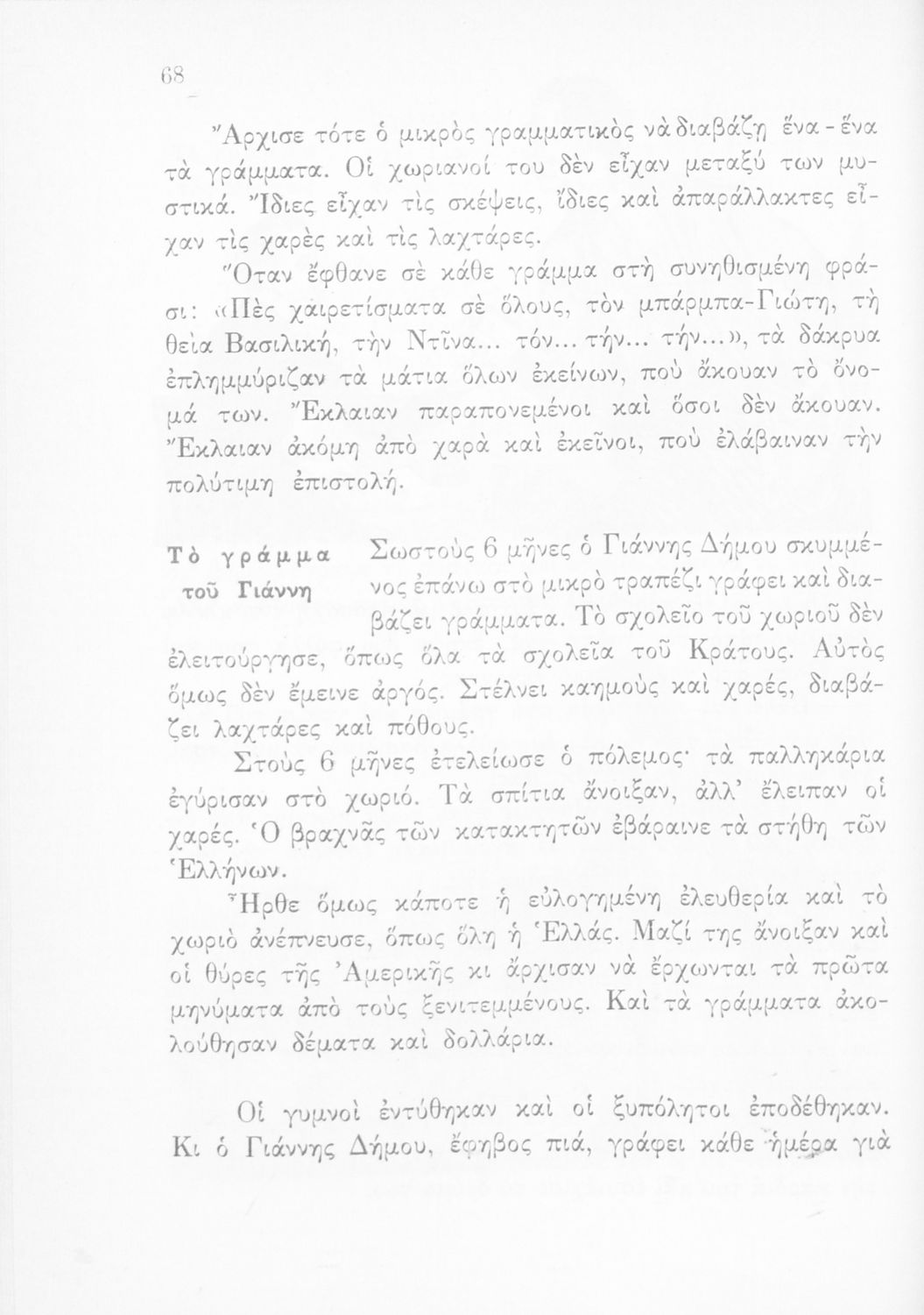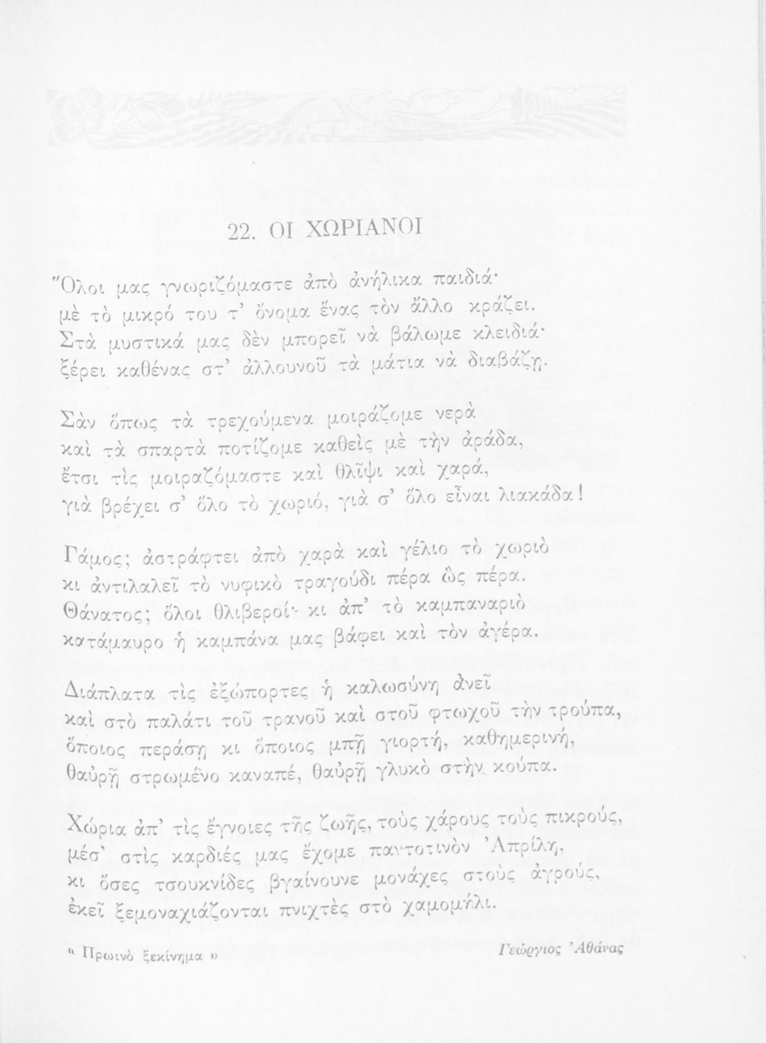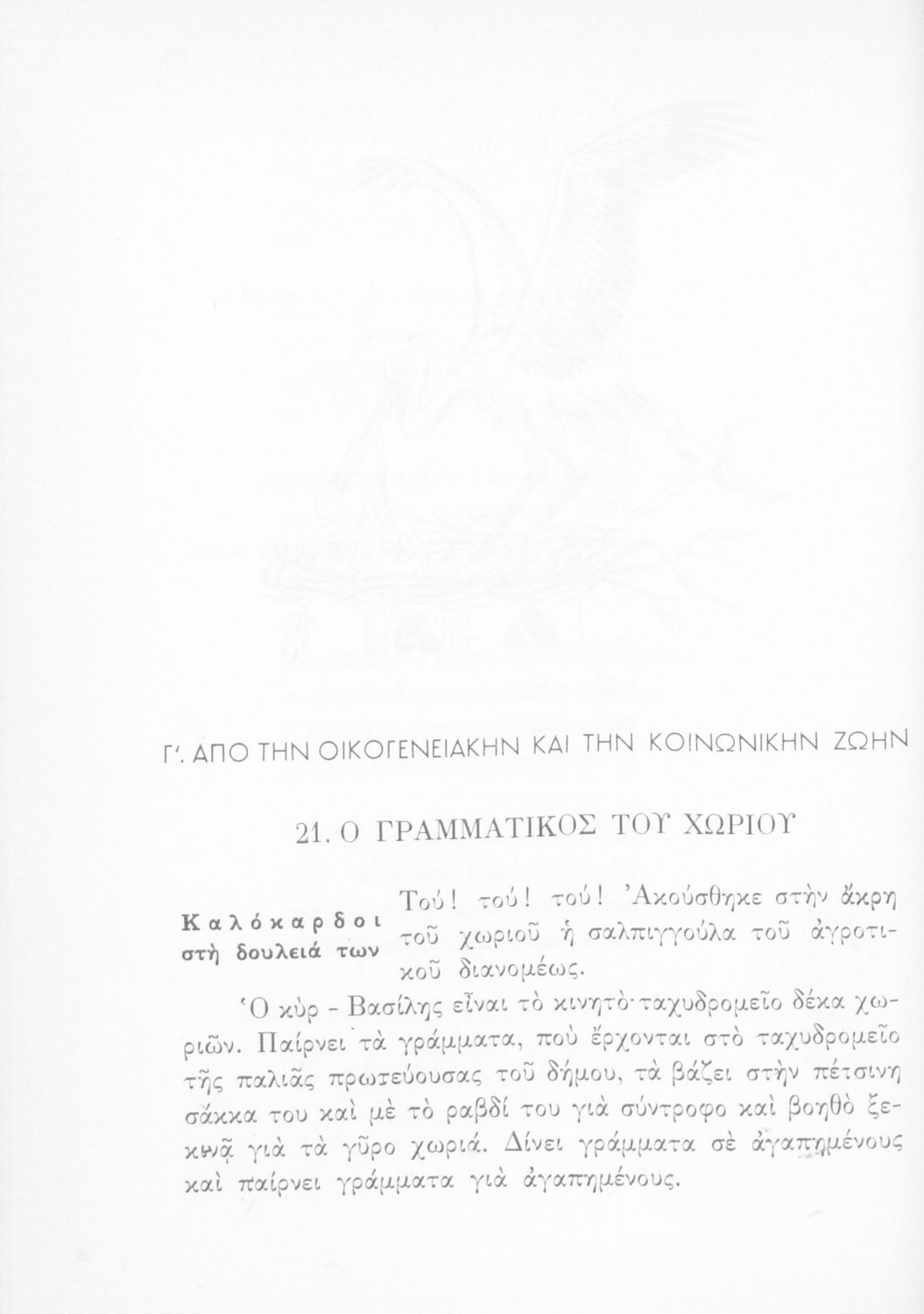 Αναγνωστικό Ε΄ Δημοτικού που περιέχει κείμενα εμπνευσμένα από την εθνική, κοινωνική και οικογενειακή ζωή και την ελληνική φύση, μυθολογία και ιστορία. Φέρει το σύμβολο της δικτατορίας.